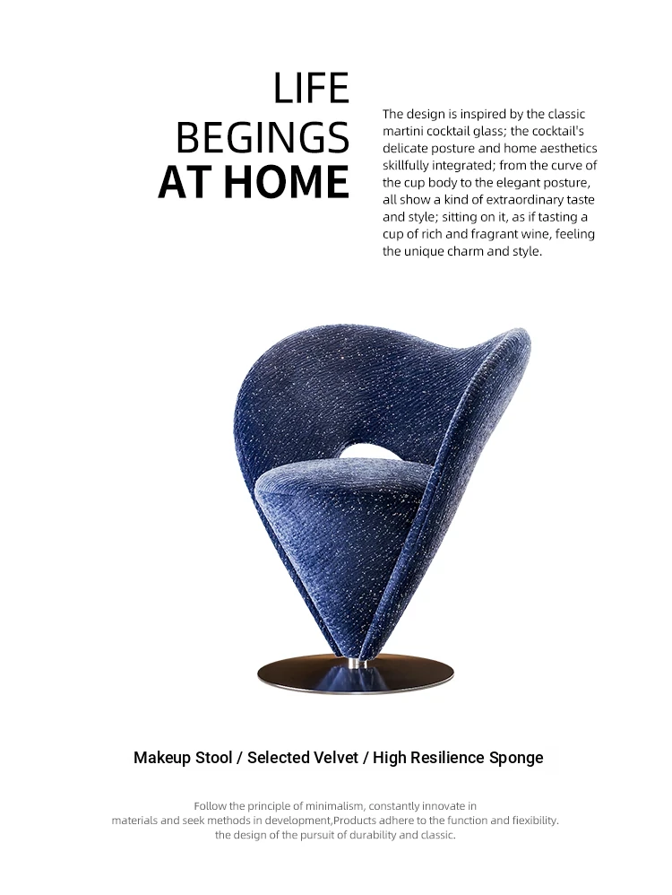 Italian Minimalist Designer Single Sofa Chair - Artistic Cone-Shaped Starry Sky Makeup Stool - Luxurious Yet Simple Vanity Chair for Stylish Interiors