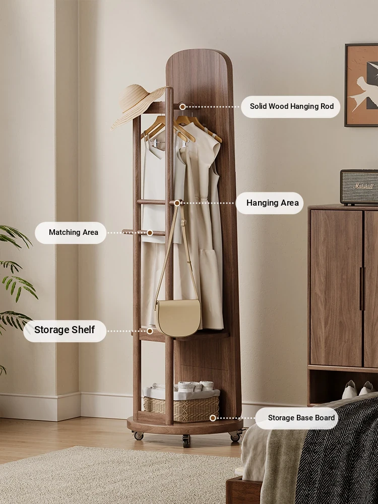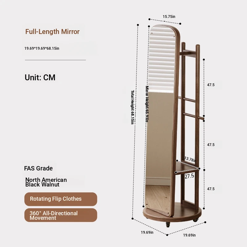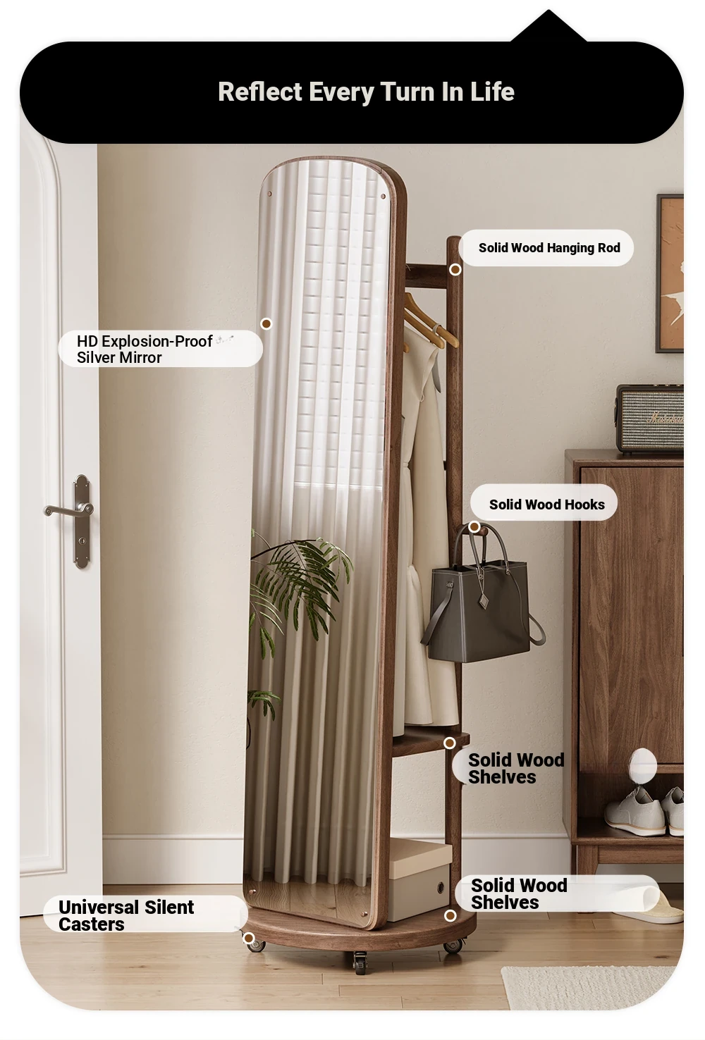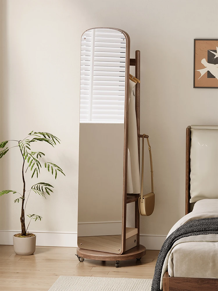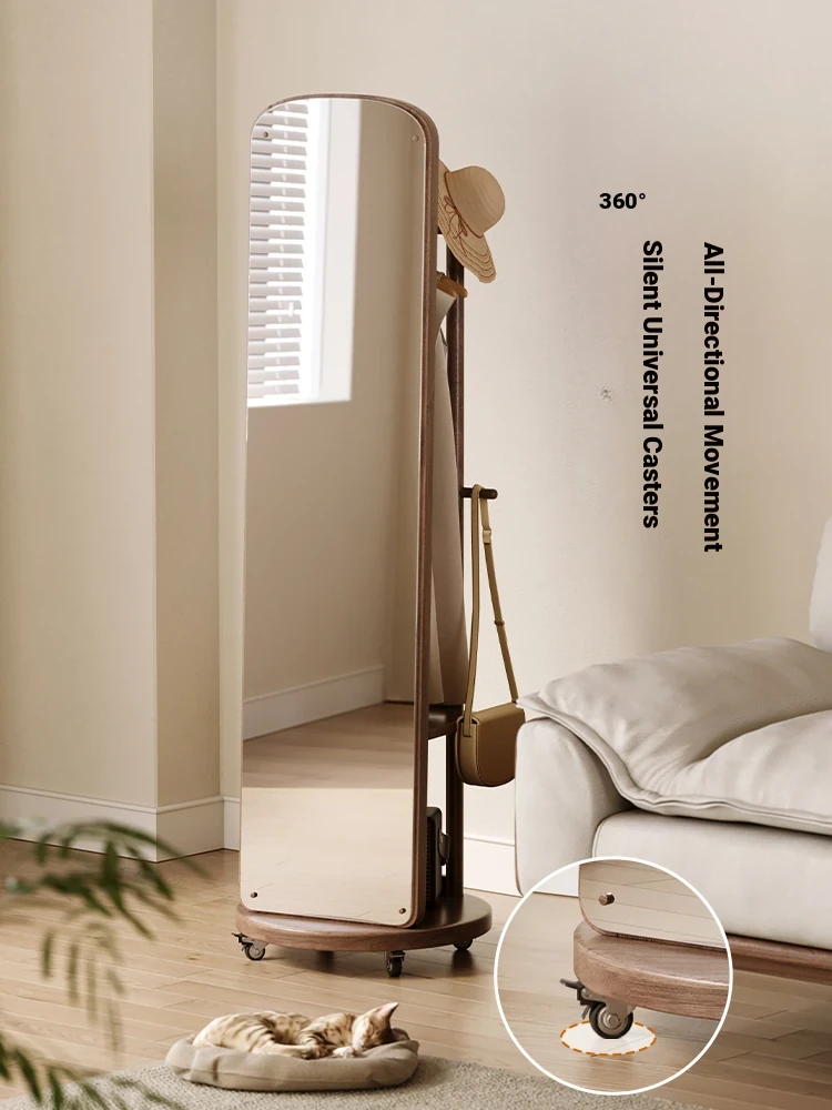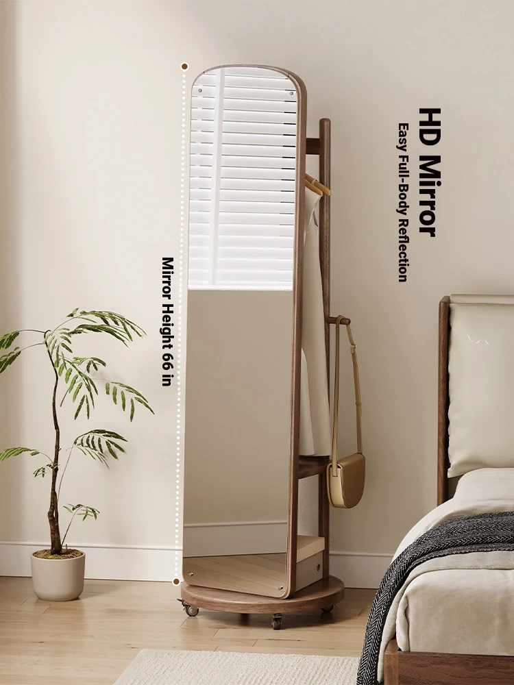 JiZeng Full-Length Mirror with Coat Rack – Stylish and Versatile Floor Mirror for Bedroom Use, Movable Design in Elegant Black Walnut Finish – Perfect for Dressing and Styling!