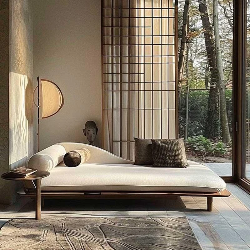 North American Black Walnut & Ash Wood Zen-Style Daybed - Perfect for Hotels, B&Bs, and Offices - Elegant Chaise Lounge for Relaxation and Serenity