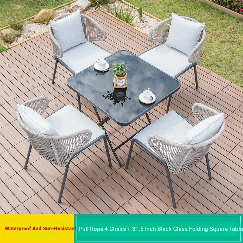 Sky Blue(4+1 [with 27.56in black silk glass Foldable square table]])