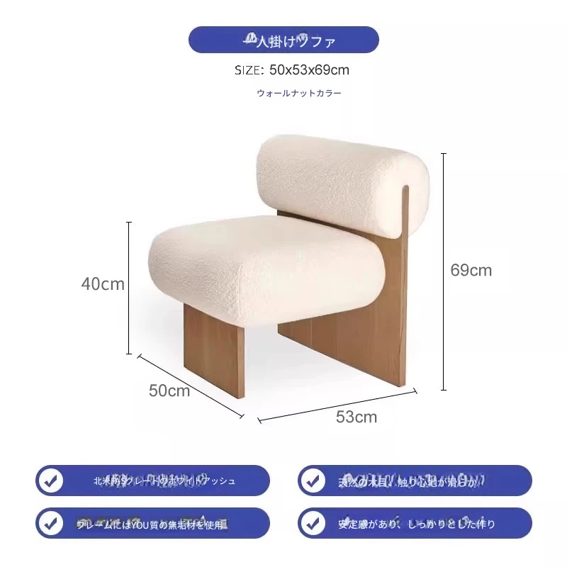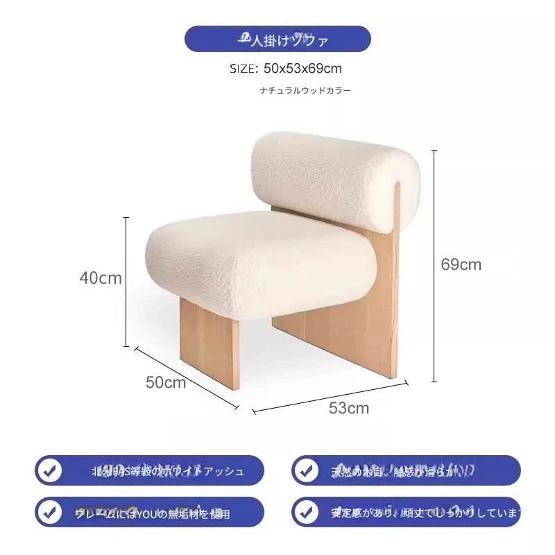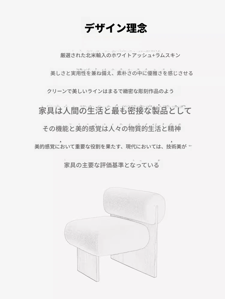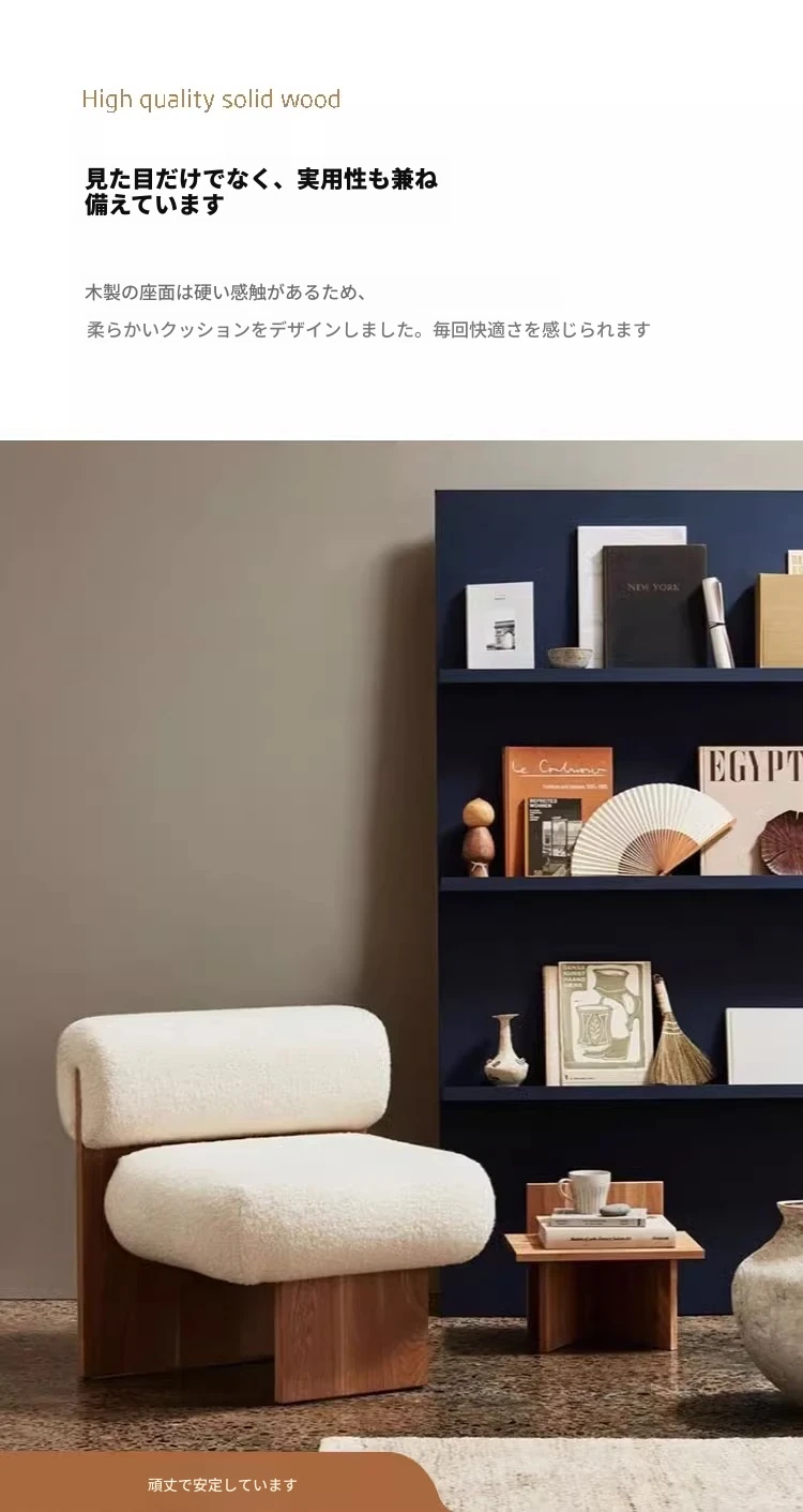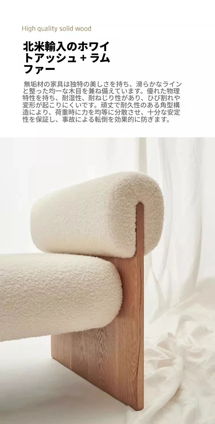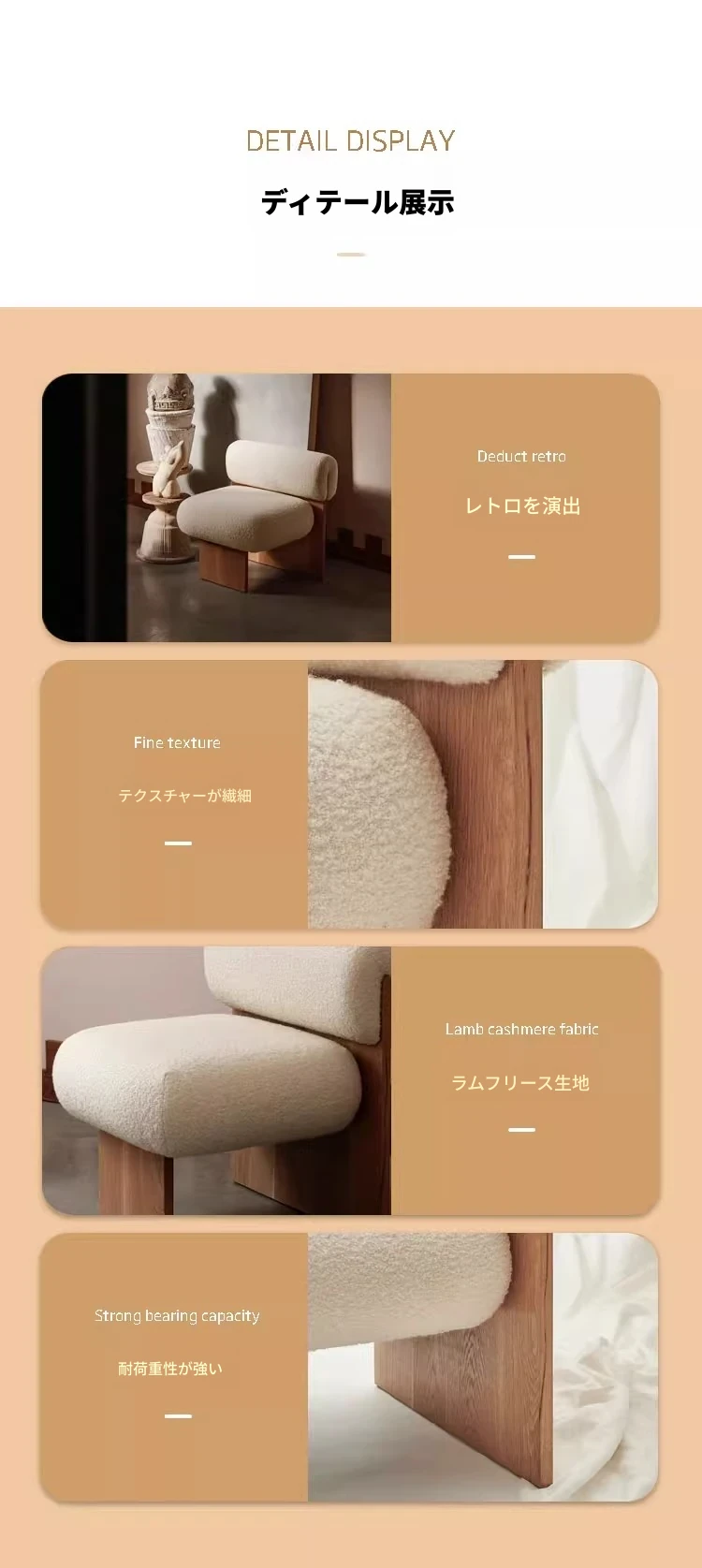 小木槿の家具、侘寂スタイルの羊毛フリースと無垢材のダイニングチェア。北欧・和風デザインのトレンディなメイクアップチェア、個性豊かで創造的な椅子!あなたの空間にぴったりの一品です。
