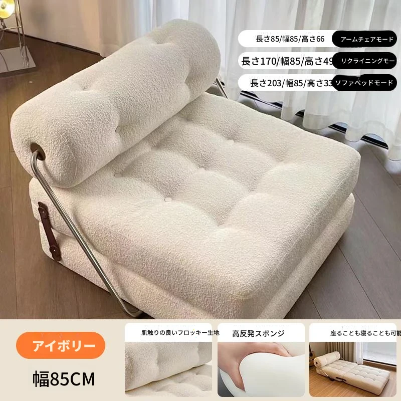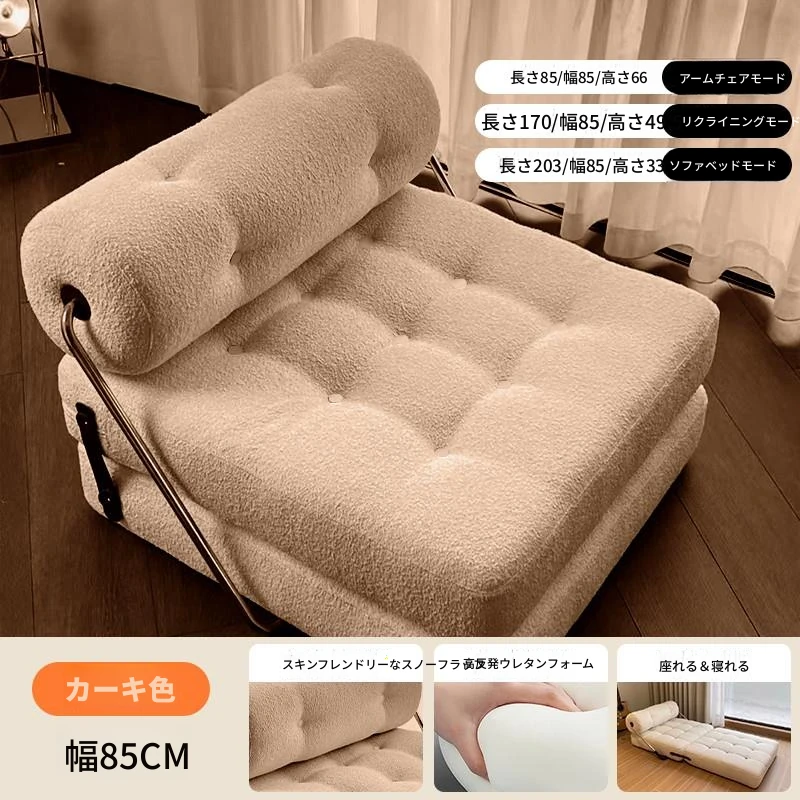 一人用ソファ 小型リビングに最適!豆腐ブロックデザインのタジソファベッド、折りたたみ可能で2役こなすクリーム風モジュール型のラウンジソファ。快適さとスタイルを両立させた、あなたのくつろぎ空間にぴったり!