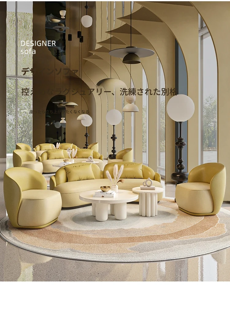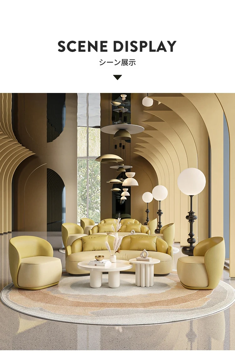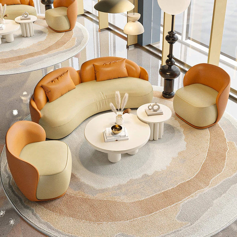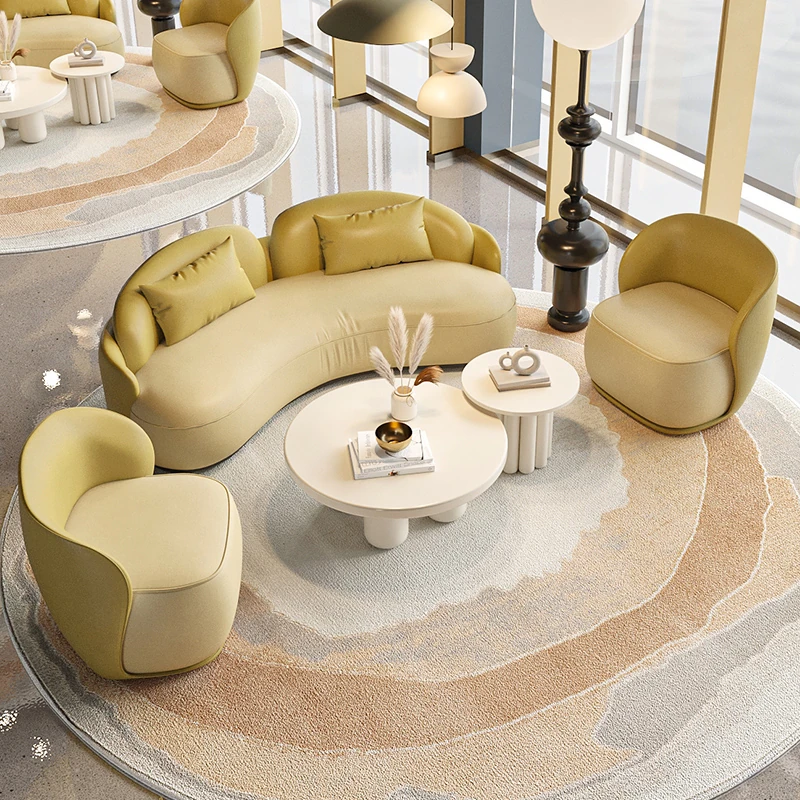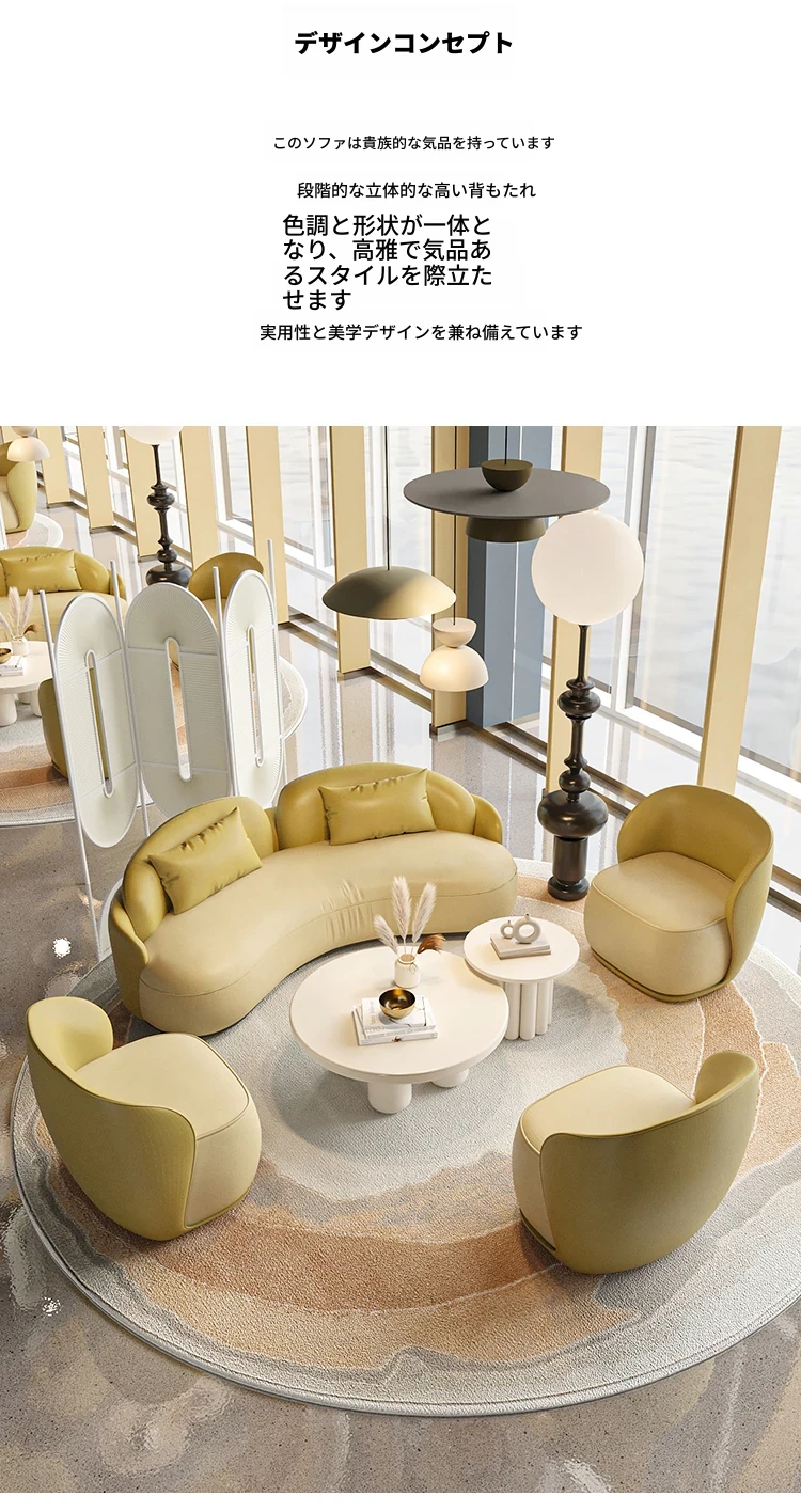 美容院・医療美容・服装店に最適!おしゃれで快適なアール型クリーム色ソファセット。インスタ映え間違いなしのリラックススペースで、接客や商談にもぴったり!あなたのサロンや店舗に新しい魅力をプラスします。