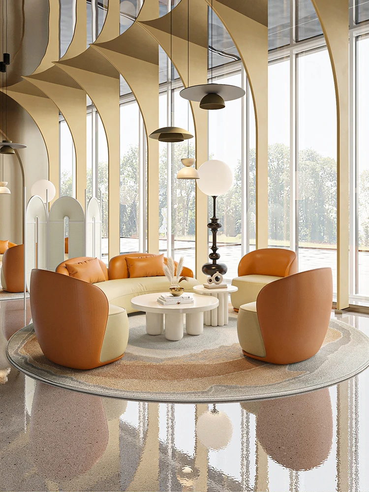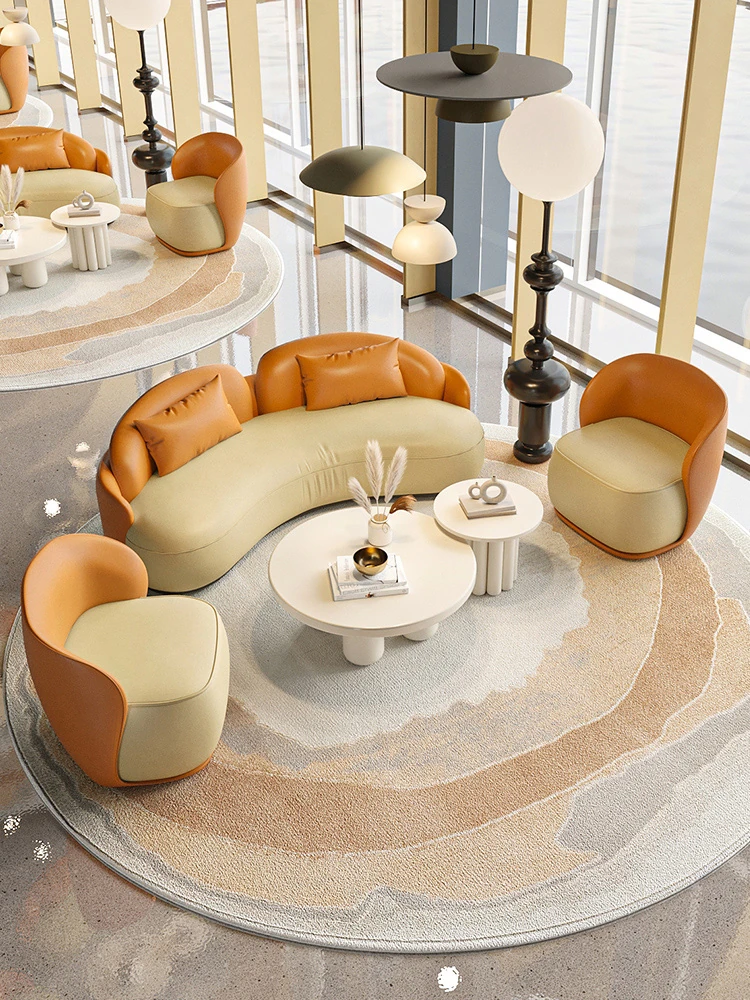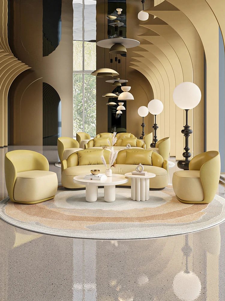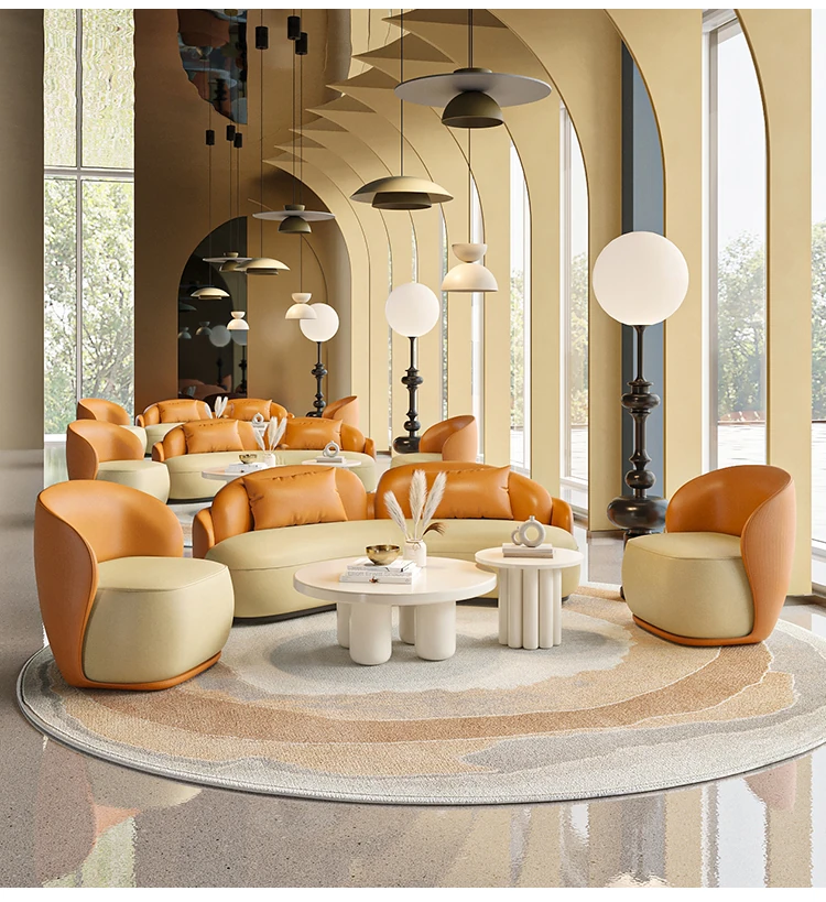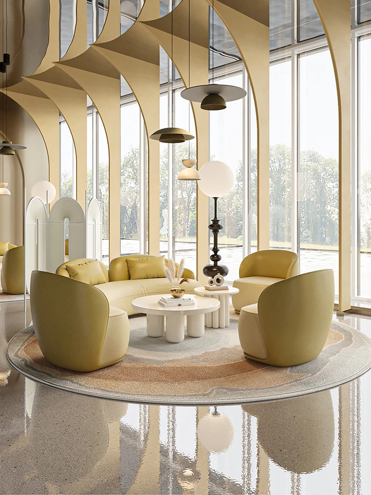 美容院・医療美容・服装店に最適!おしゃれで快適なアール型クリーム色ソファセット。インスタ映え間違いなしのリラックススペースで、接客や商談にもぴったり!あなたのサロンや店舗に新しい魅力をプラスします。