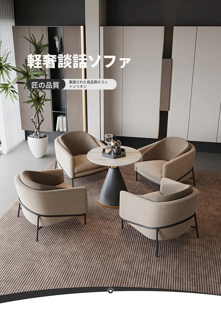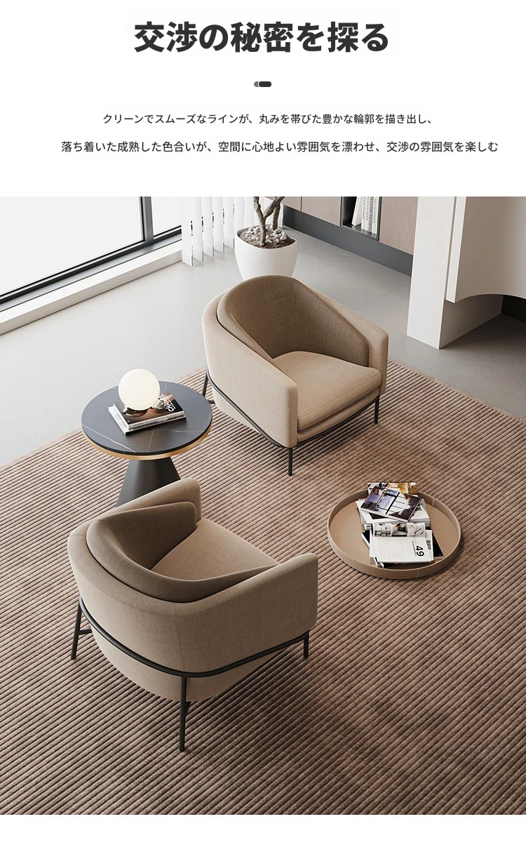 ラグジュアリーなデザインのホテル用ソファ|接客・商談に最適な一人用リラックスチェア|スパ・サロンでのくつろぎのひとときを演出します!