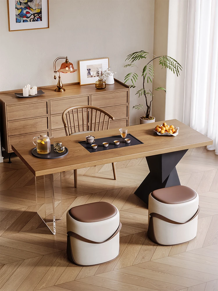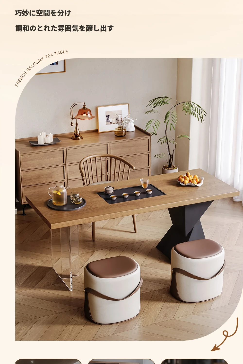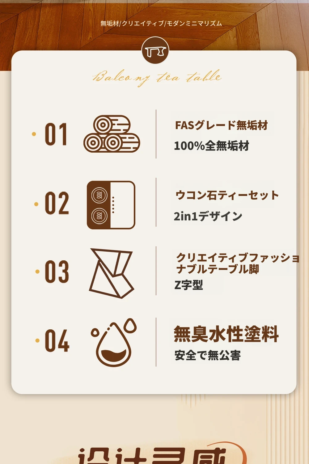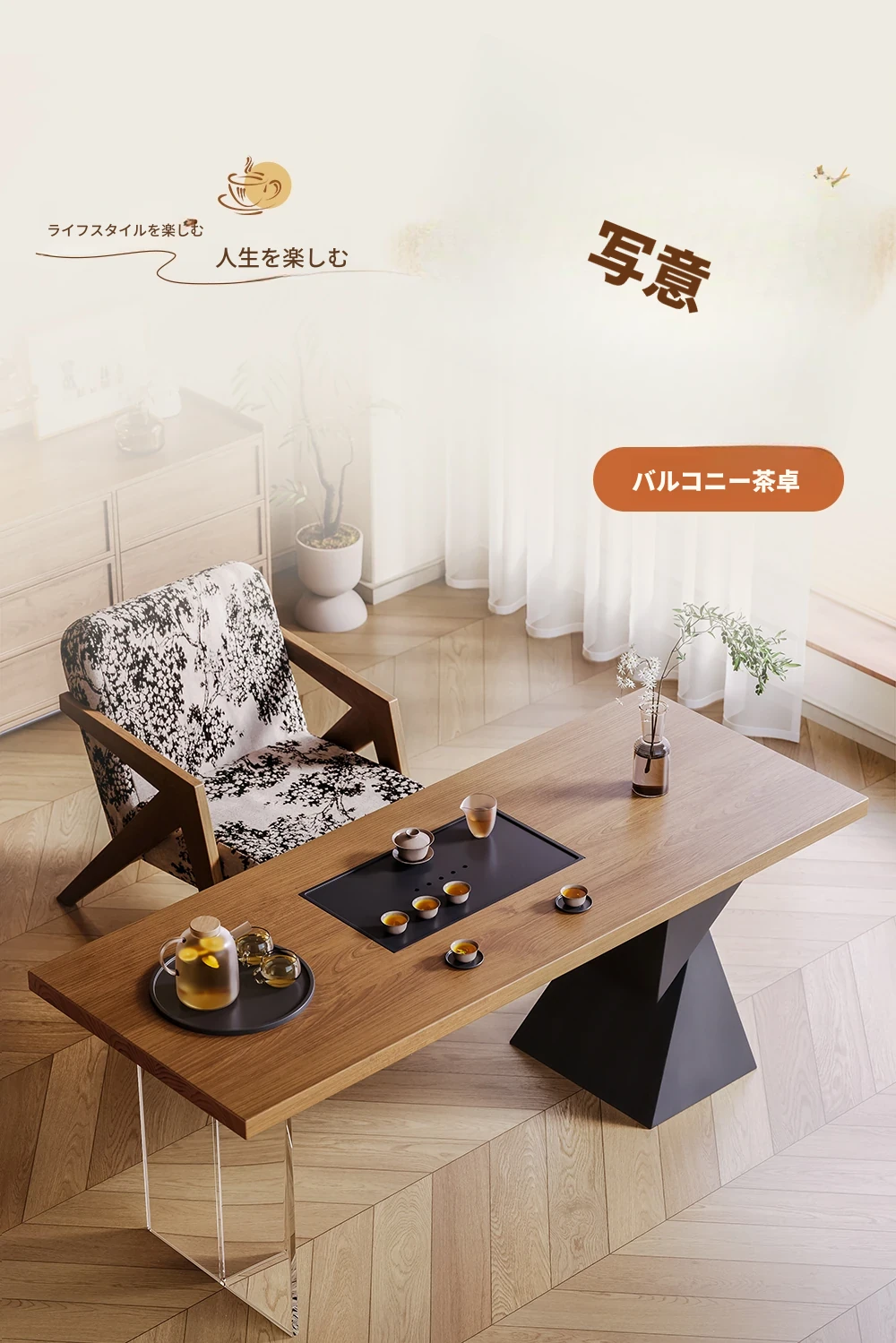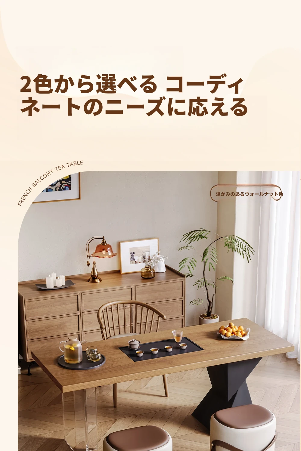 吉赠軽奢陽台用精致なティーテーブル&チェアセット - 家庭用小型無垢材ティーサーバー、リラックスできる2025年新作高級デザイン!