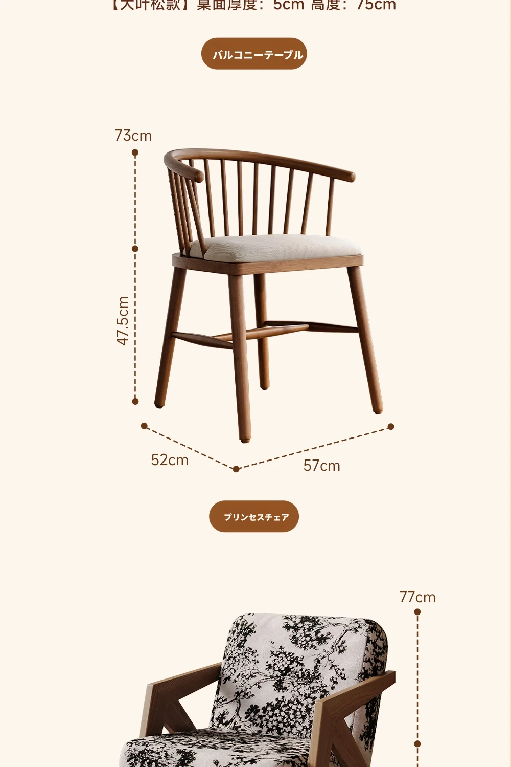 1.2m大葉松の茶卓+プリンセスチェア*2