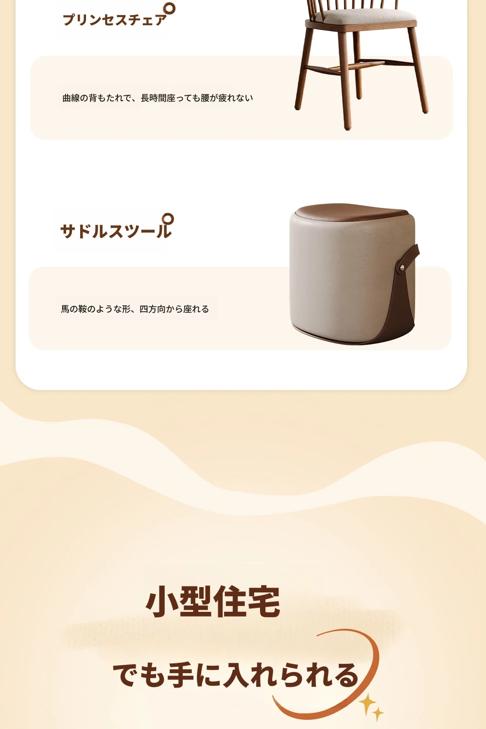 【人気商品】1.4m大葉松の茶卓+プリンセスチェア+サドルスツール*2
