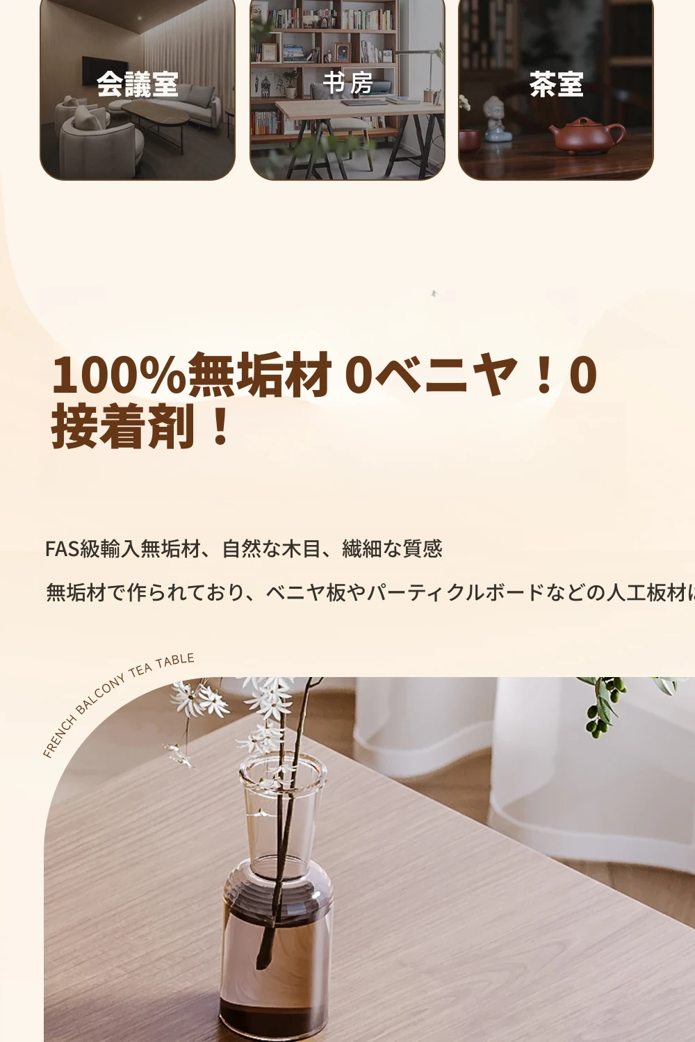 ホワイトアッシュのバルコニーチャ卓:100*60*73*3cm