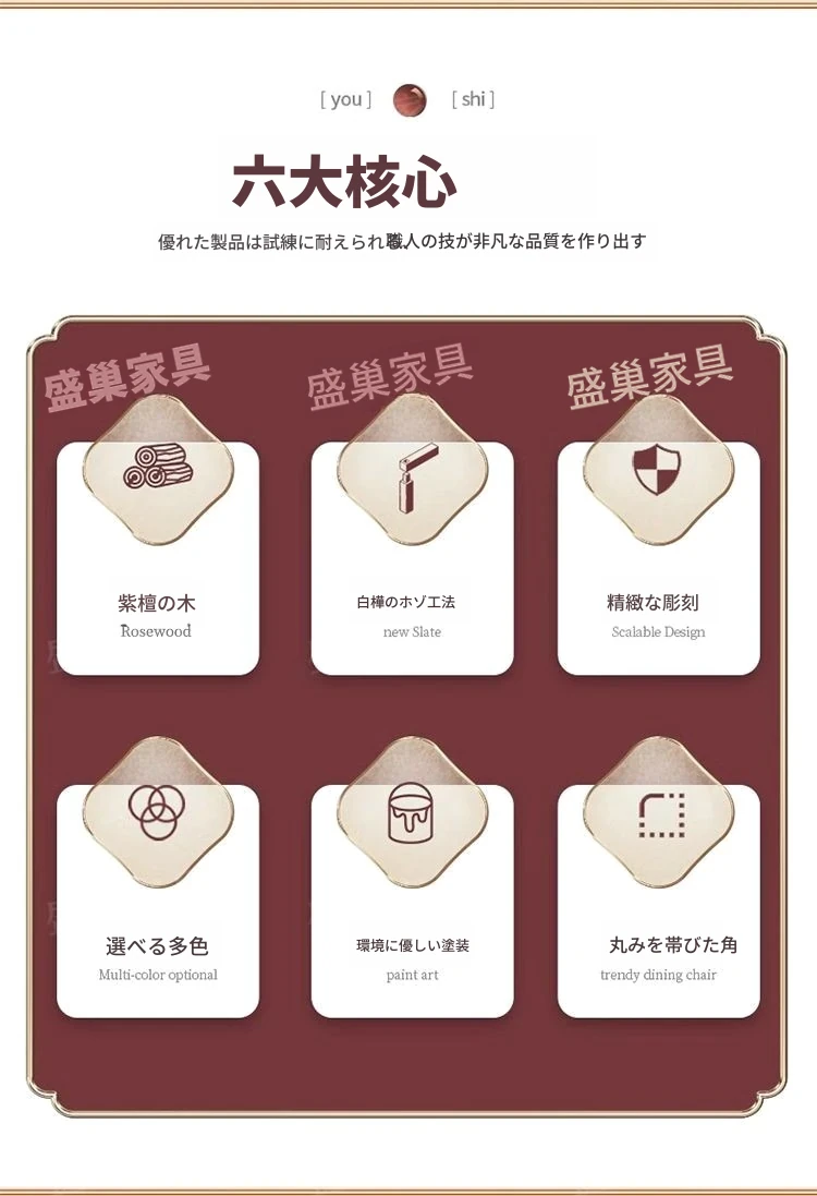 2.0メートル紫檀木ダイニングテーブル+12国色椅子【軽やかで大気】