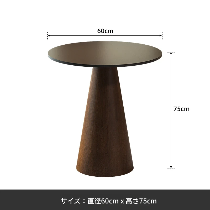 純黒岩板会議テーブル:直径60*高さ75【木目転写スタンド】
