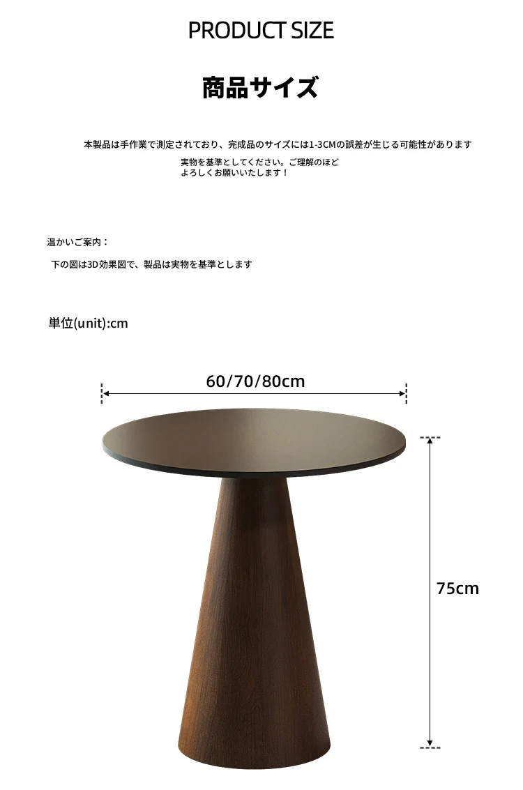 純黒岩板会議テーブル:直径80*高さ75【木目転写スタンド】