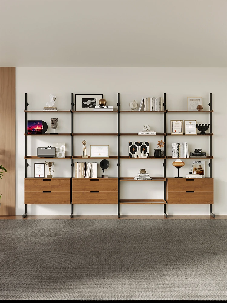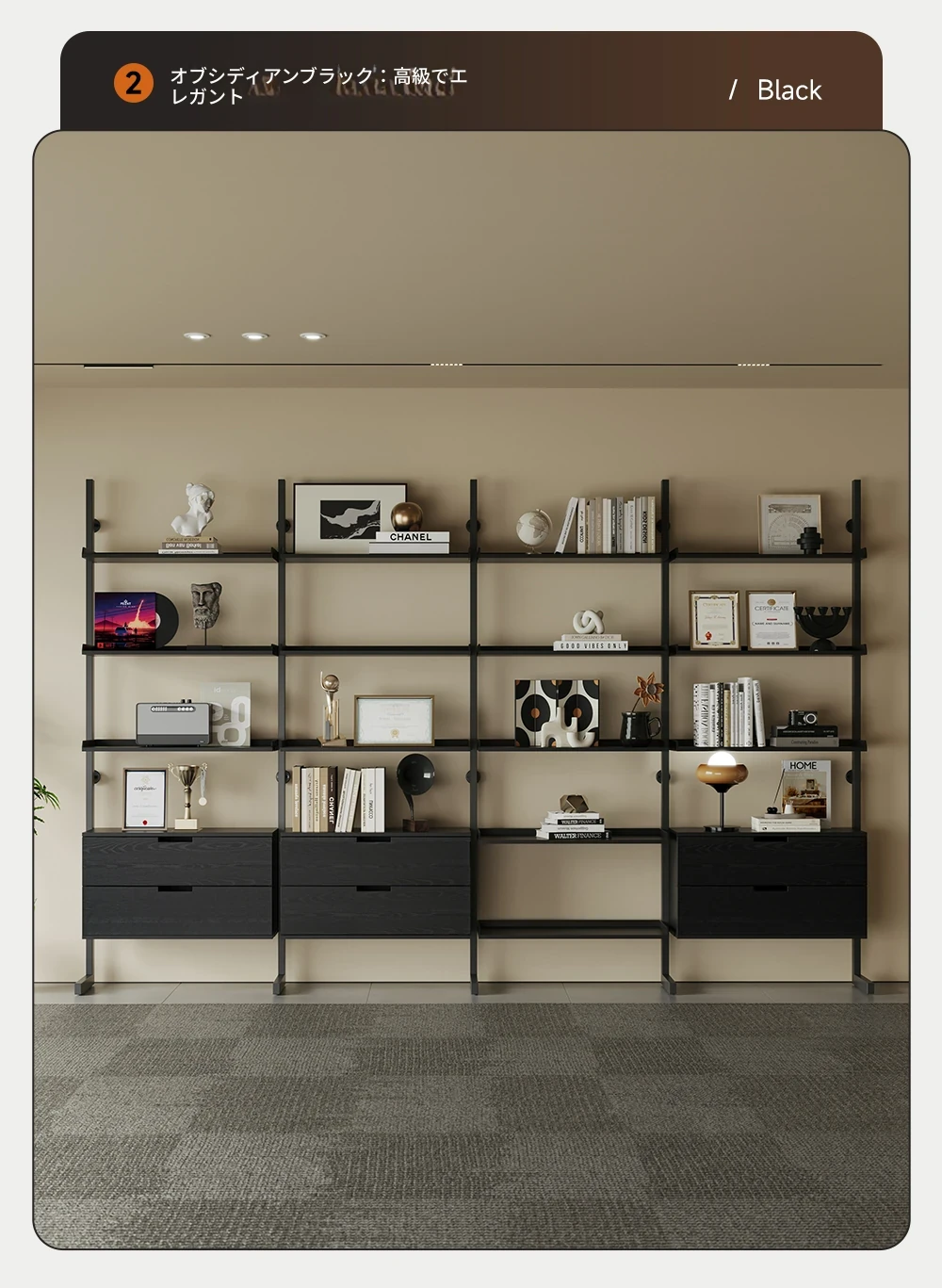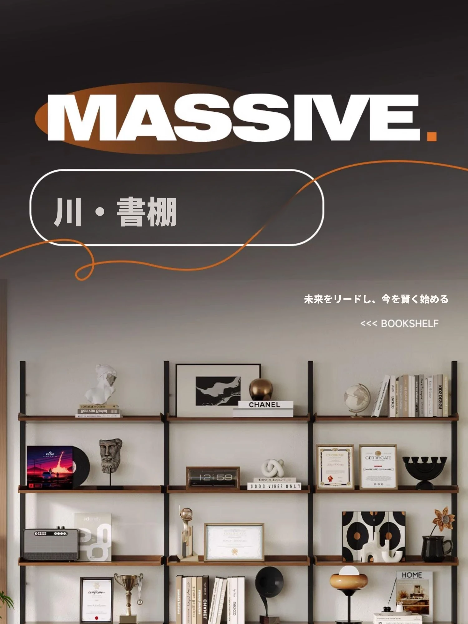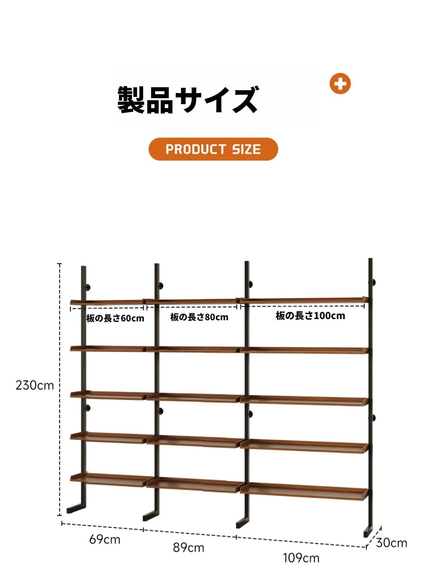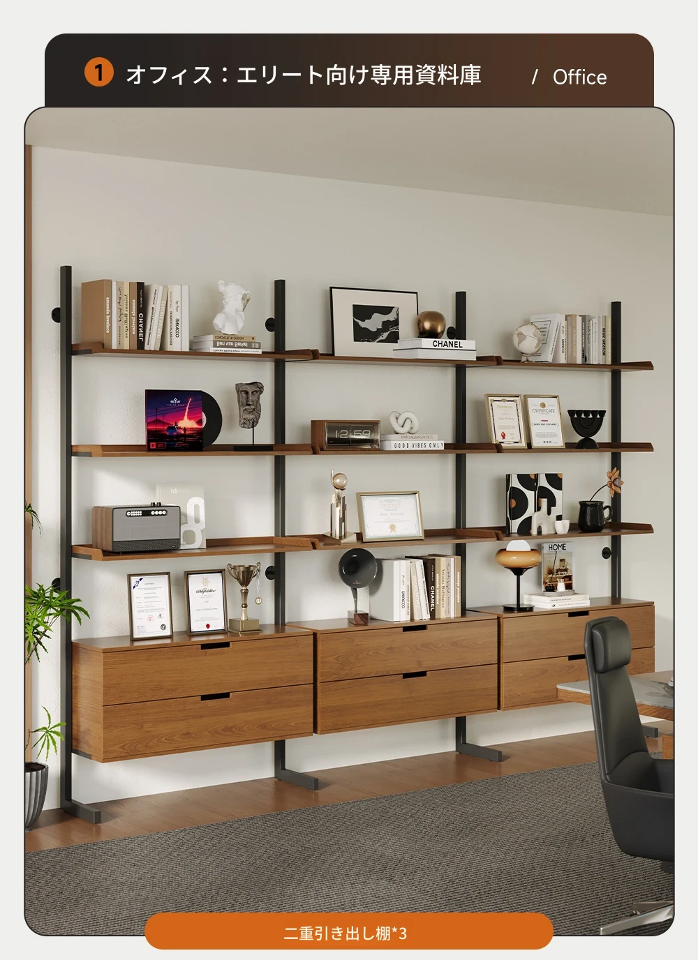 吉赠の無垢材と鋼製の書棚 - 地面設置可能な収納&ディスプレイラック!オフィスや壁際にピッタリの一体型デザインで、スタイリッシュにお部屋を演出します。読書や整理整頓に最適!