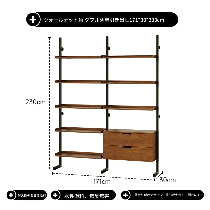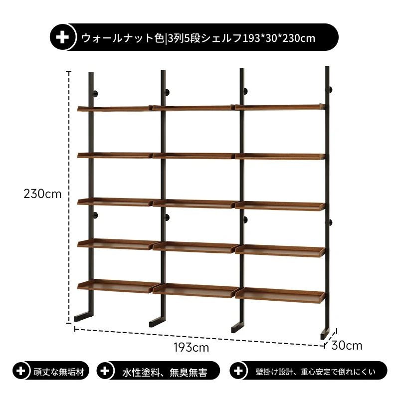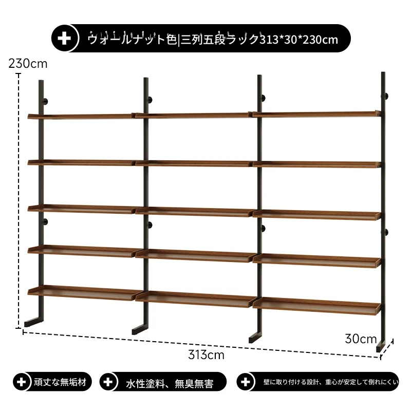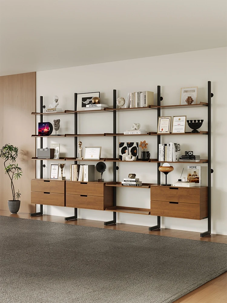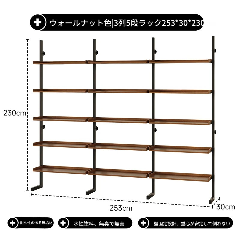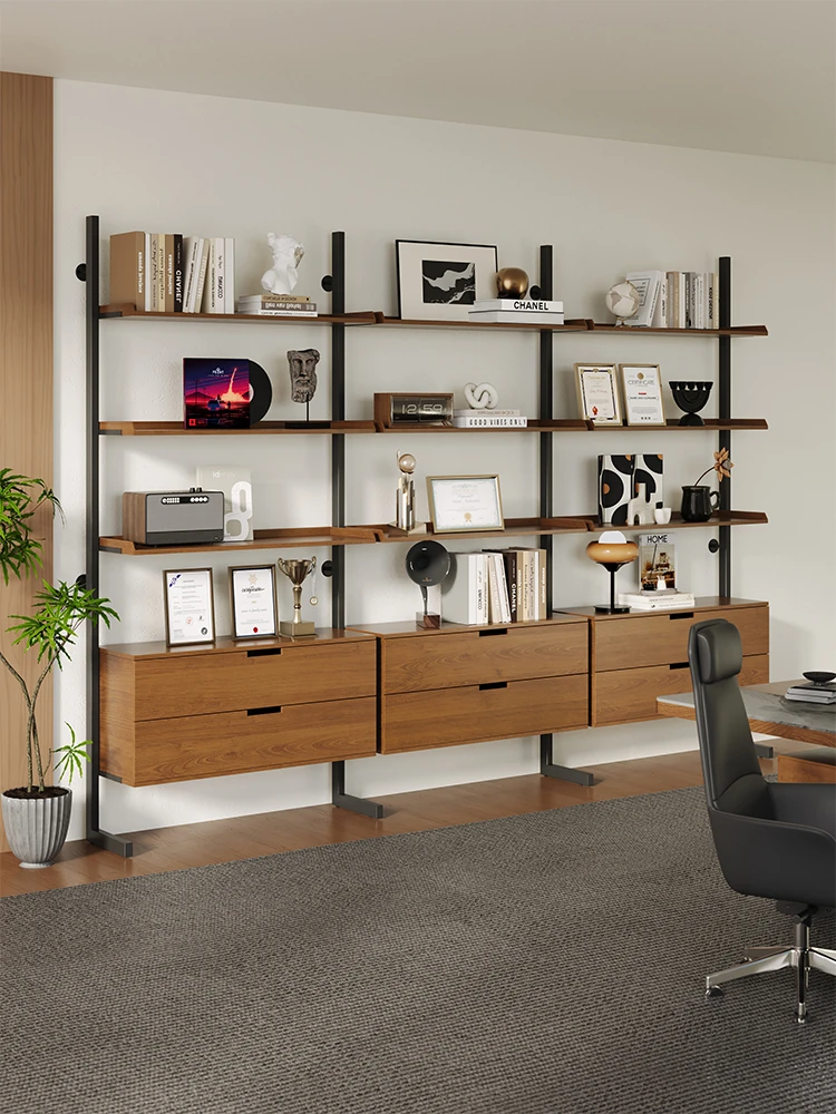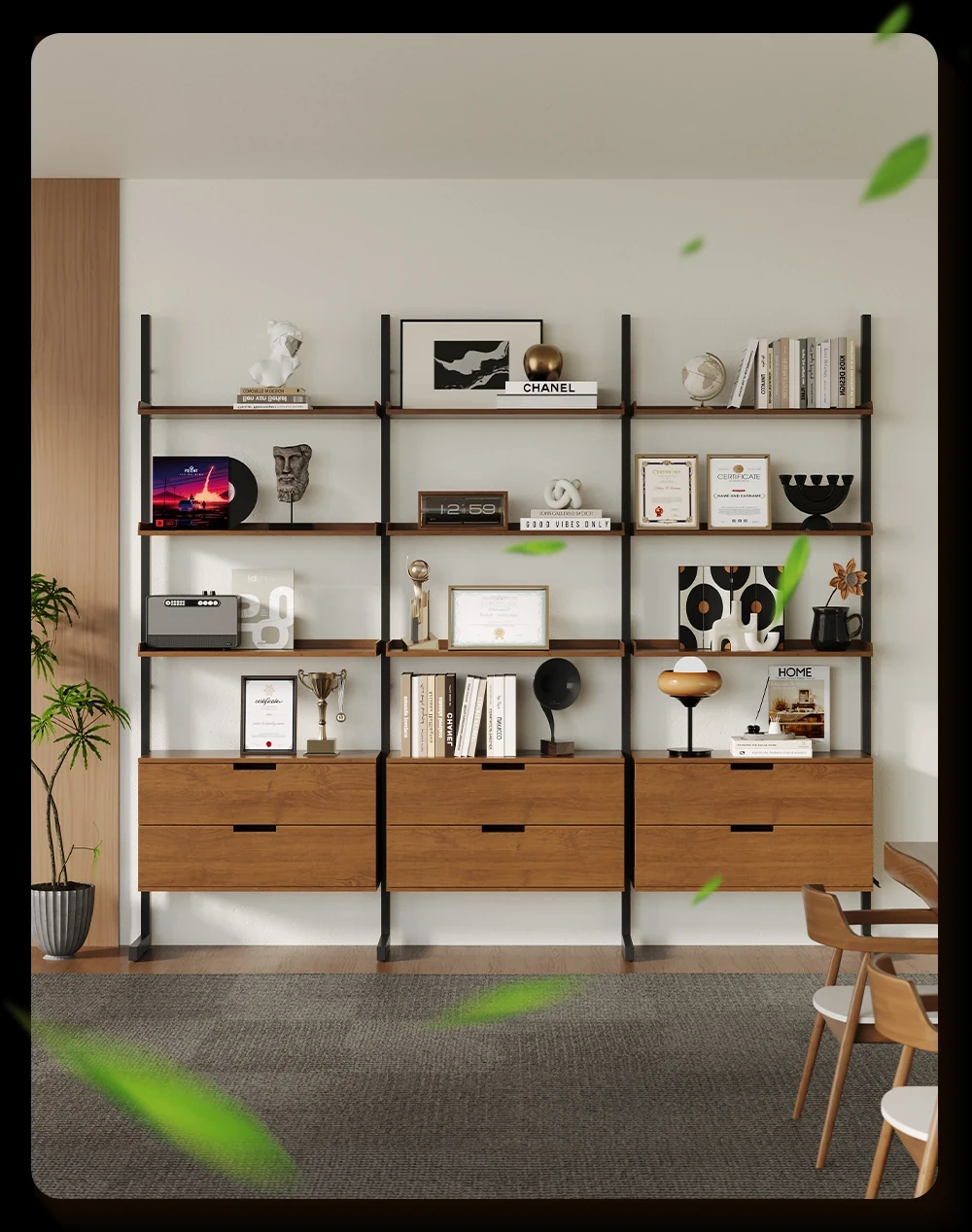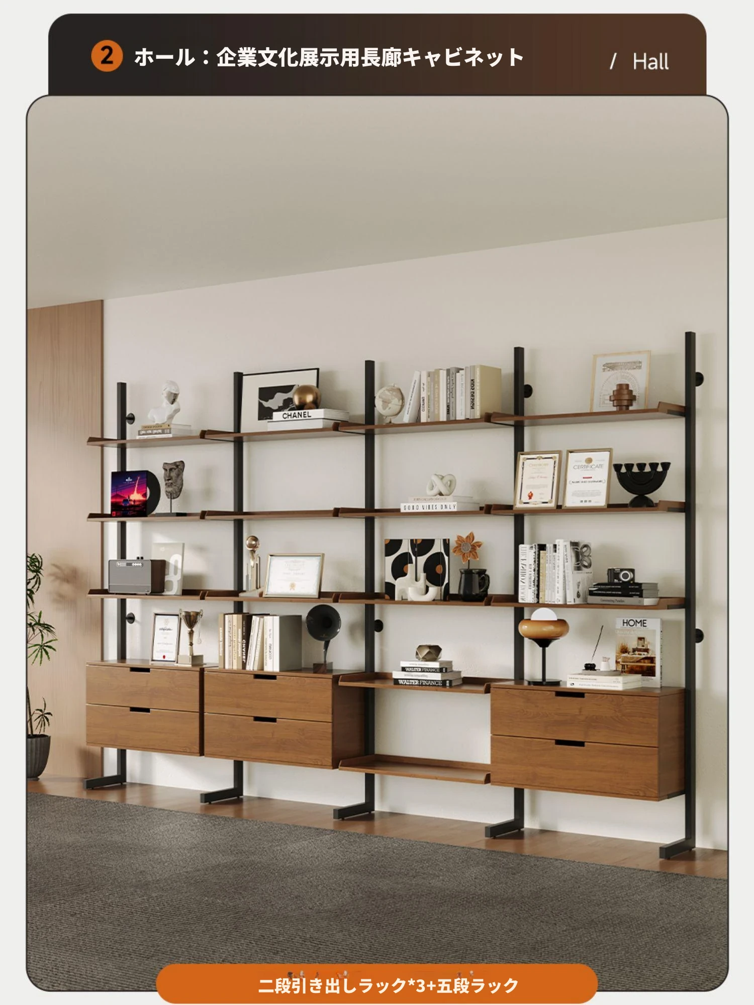 吉赠の無垢材と鋼製の書棚 - 地面設置可能な収納&ディスプレイラック!オフィスや壁際にピッタリの一体型デザインで、スタイリッシュにお部屋を演出します。読書や整理整頓に最適!