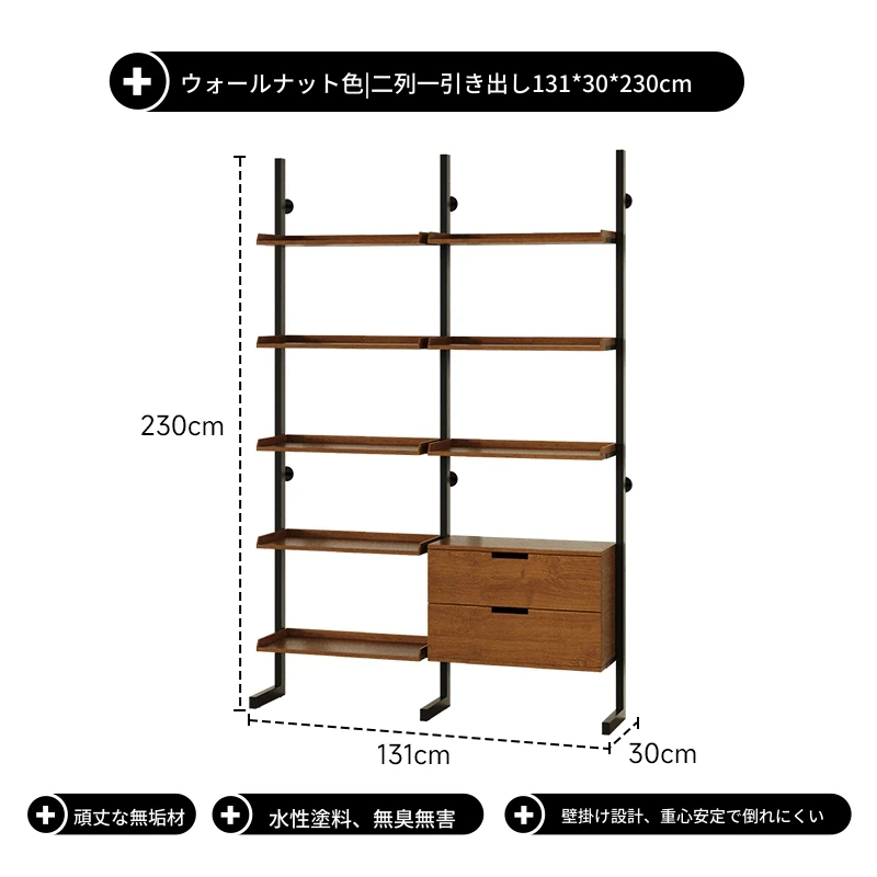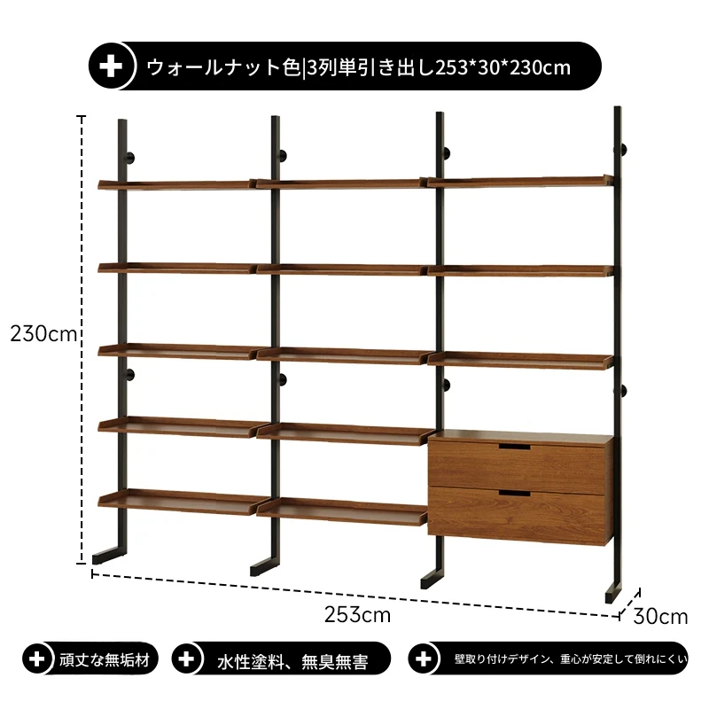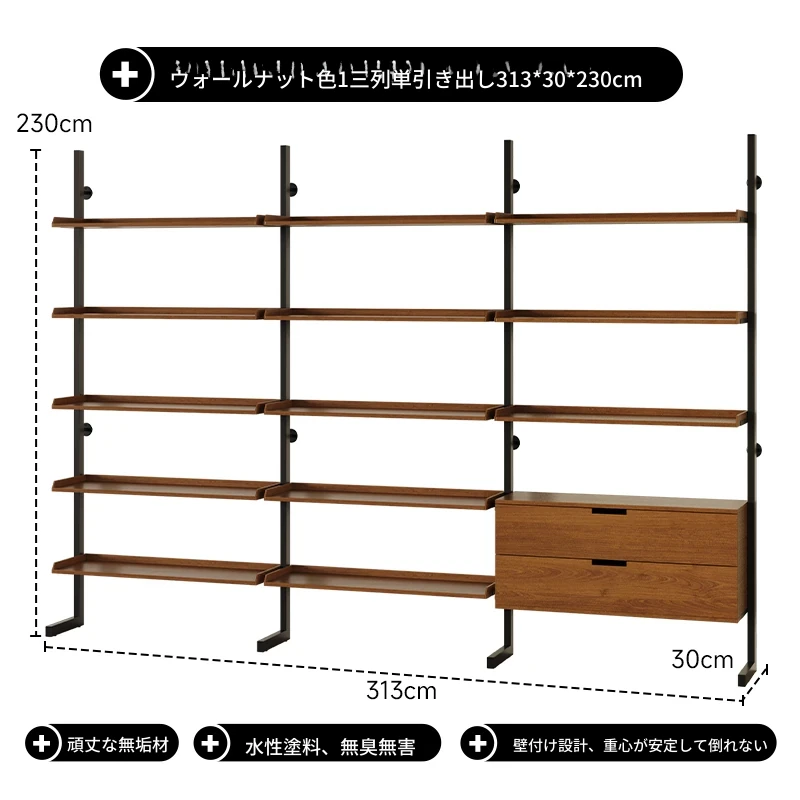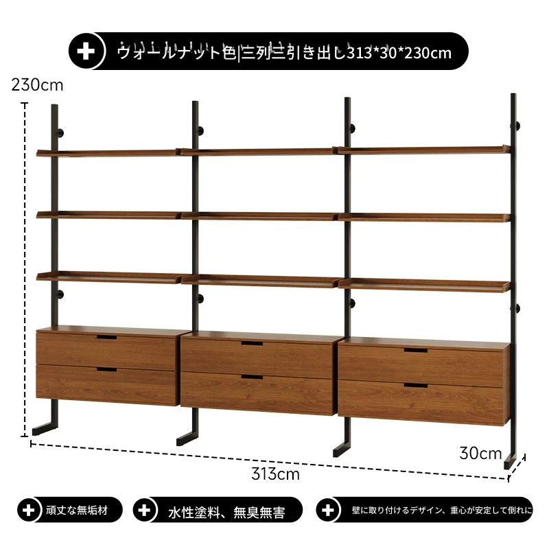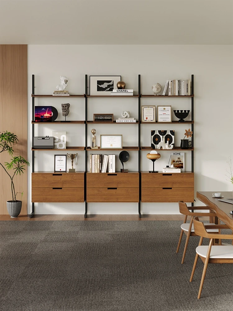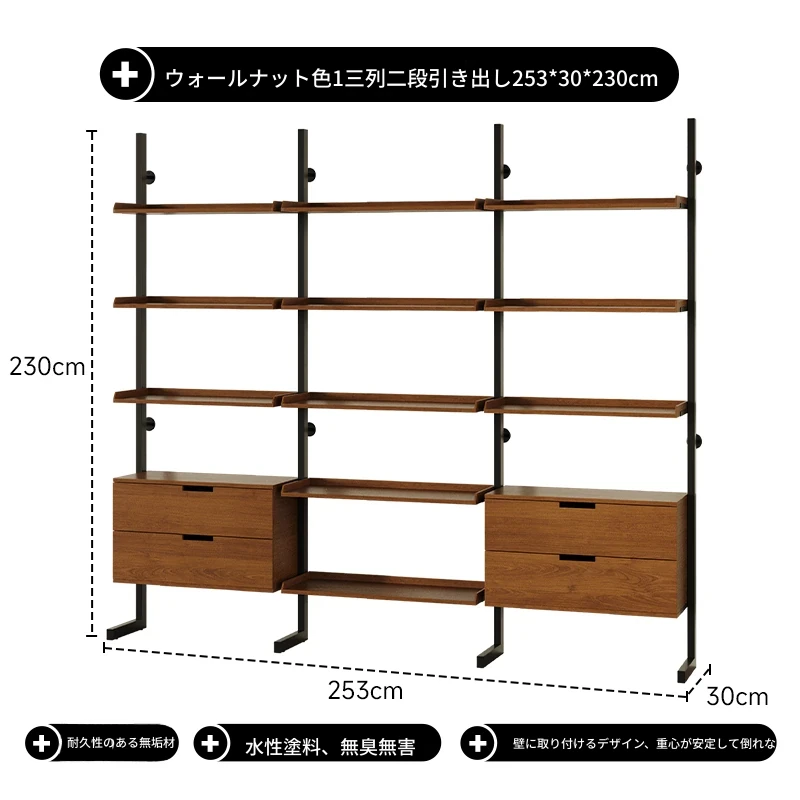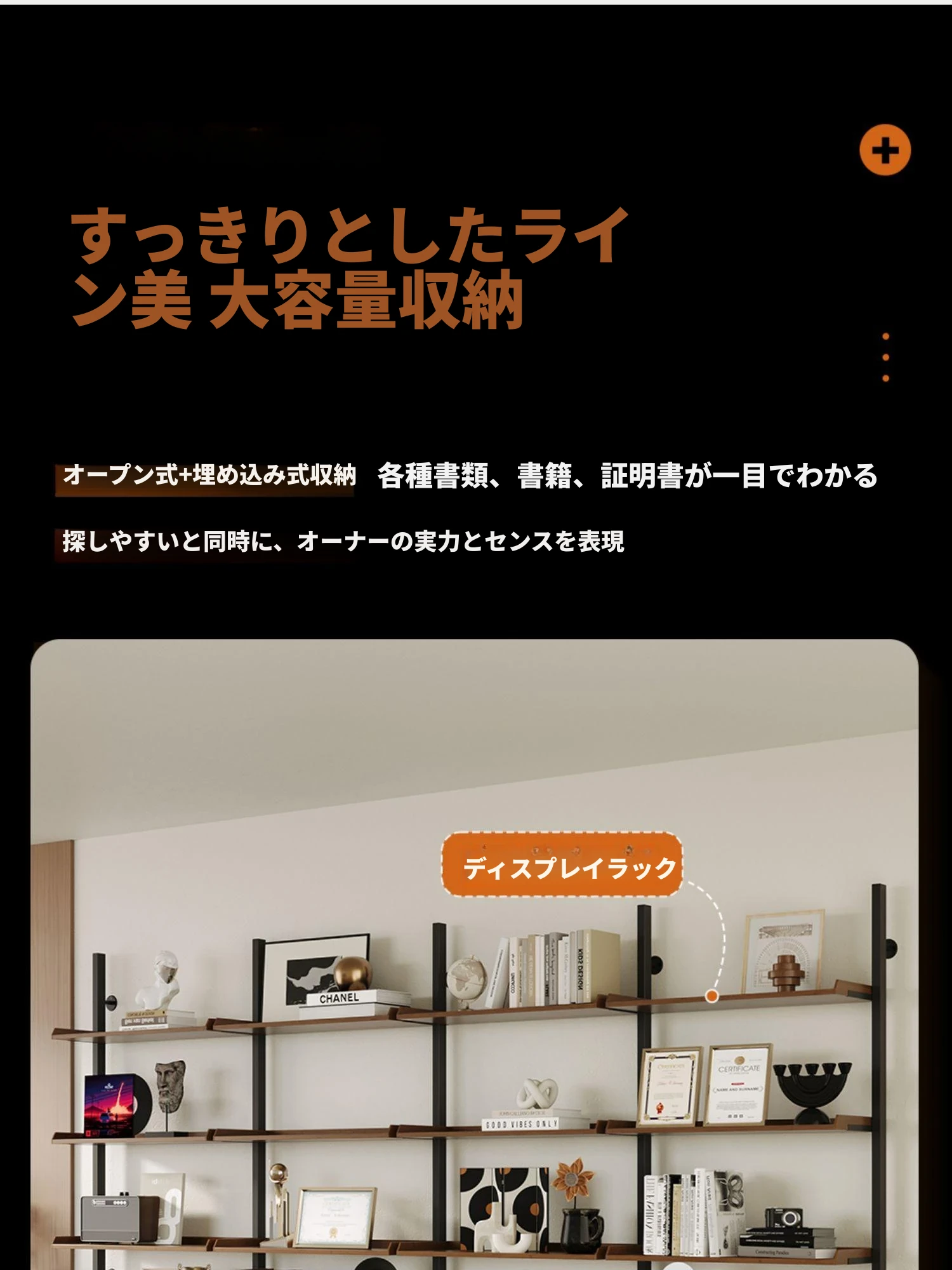 吉赠の無垢材と鋼製の書棚 - 地面設置可能な収納&ディスプレイラック!オフィスや壁際にピッタリの一体型デザインで、スタイリッシュにお部屋を演出します。読書や整理整頓に最適!