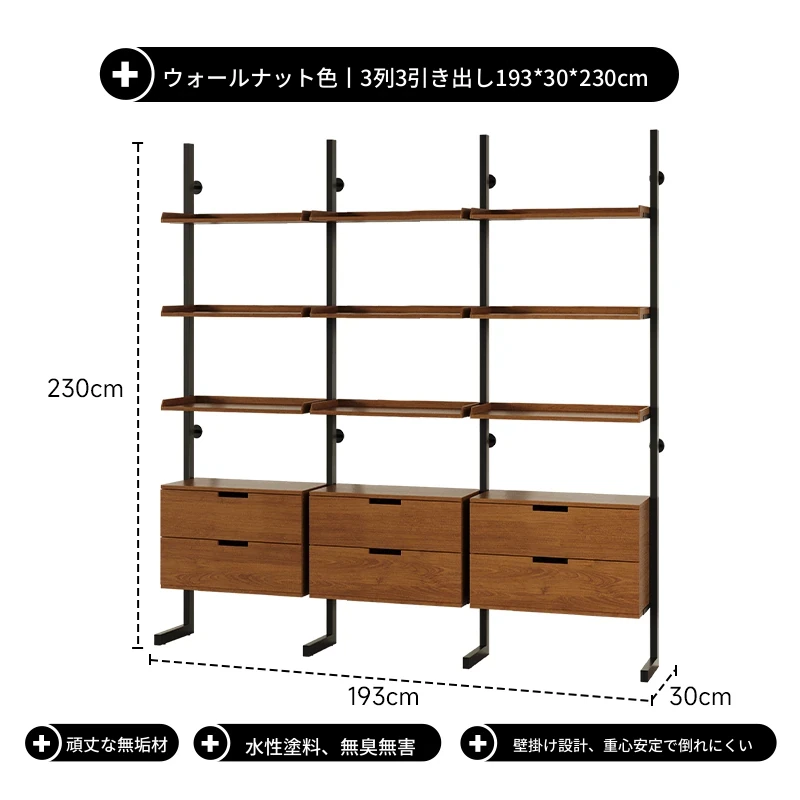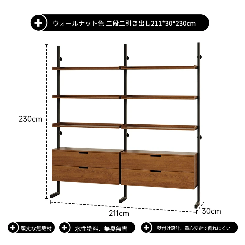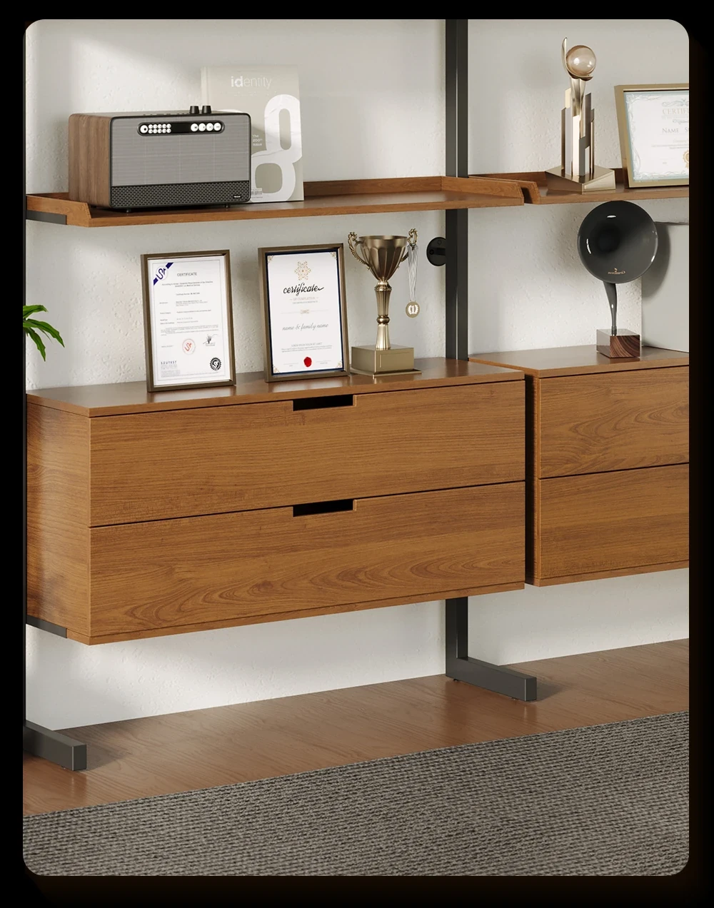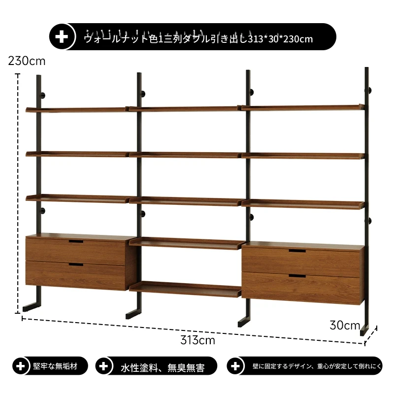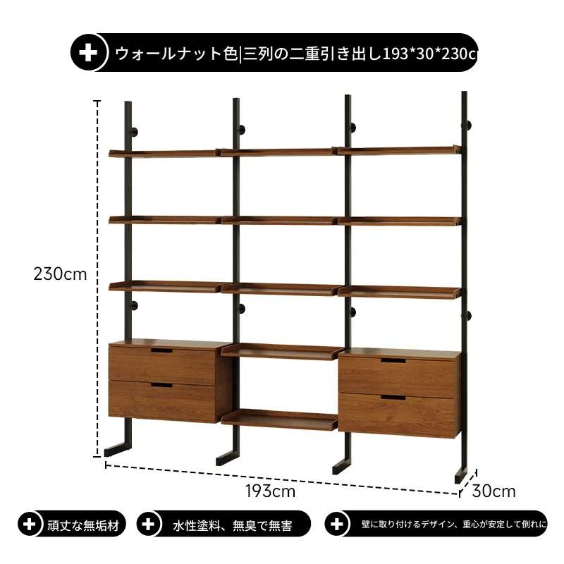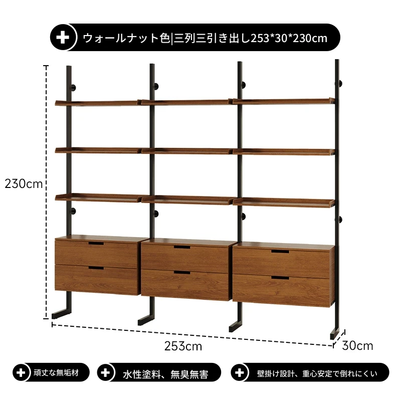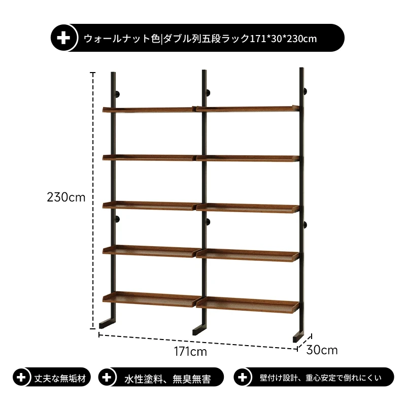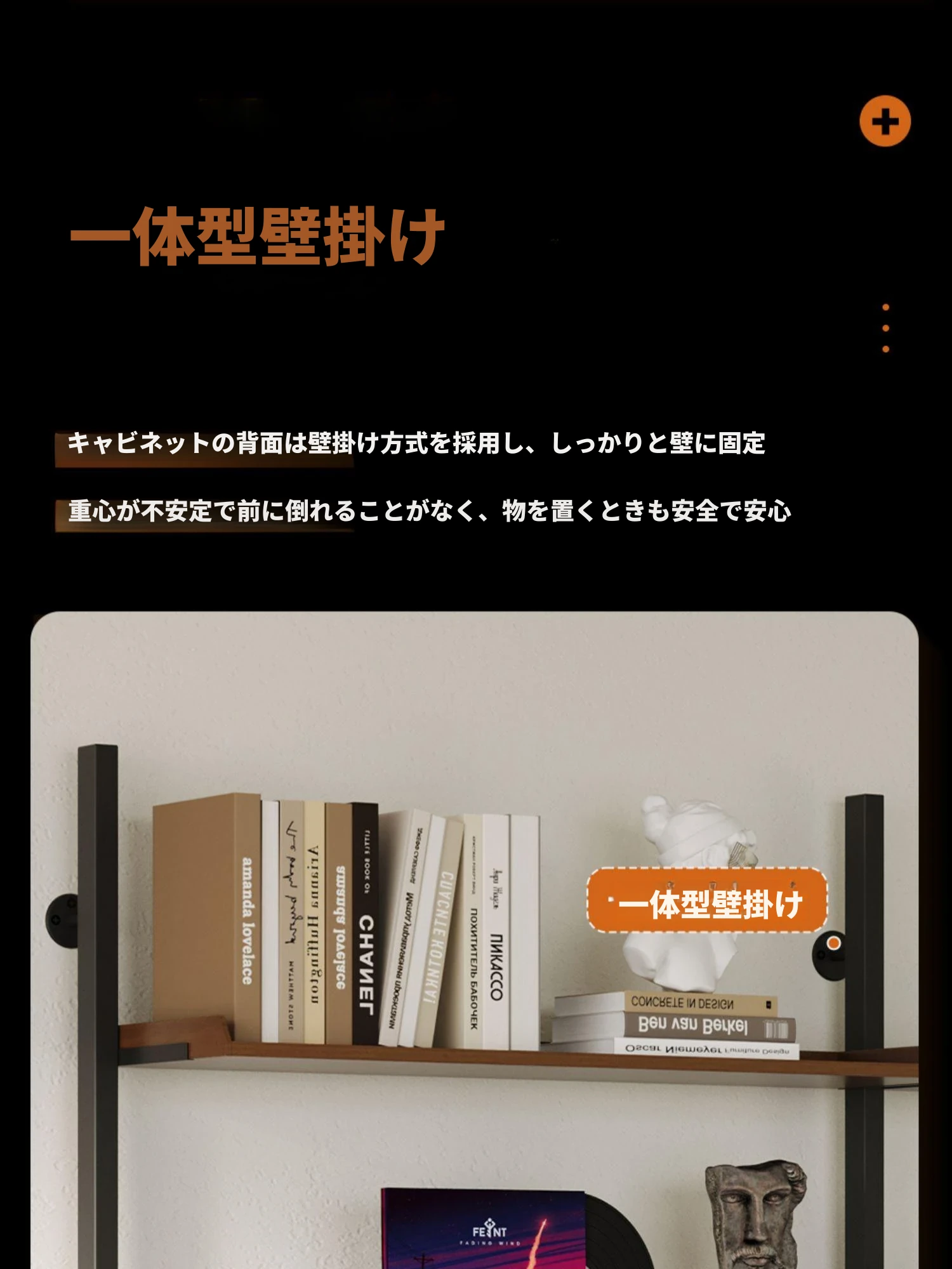 吉赠の無垢材と鋼製の書棚 - 地面設置可能な収納&ディスプレイラック!オフィスや壁際にピッタリの一体型デザインで、スタイリッシュにお部屋を演出します。読書や整理整頓に最適!