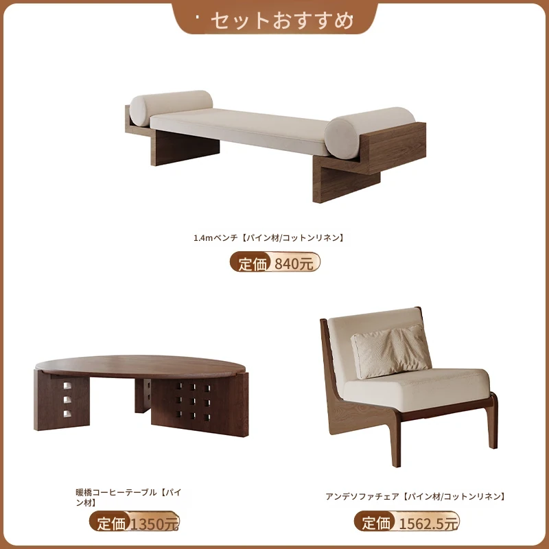 2.8メートルソファ+1.4メートルベンチ+コーヒーテーブル+アンドソファチェア