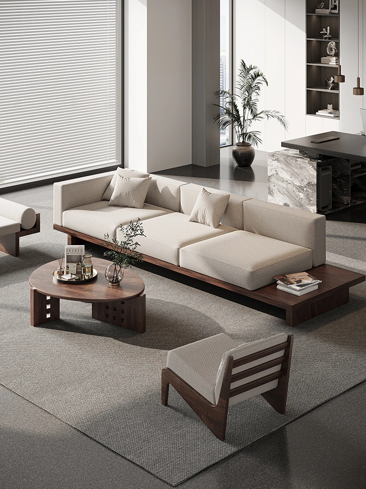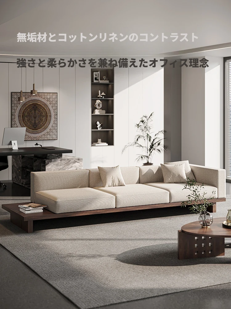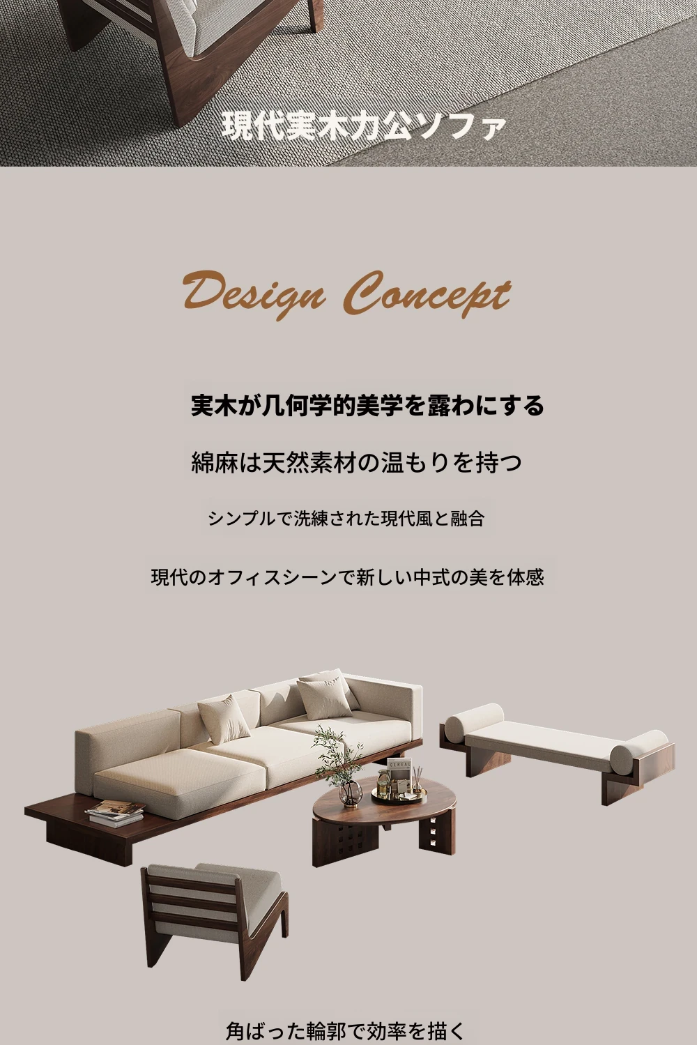 宋代美学にインスパイアされた高級実木オフィスソファセット - 2025年新作、ビジネス会議や接客に最適な一体型テーブル付き!洗練されたデザインで、あなたのオフィス空間を格上げします。