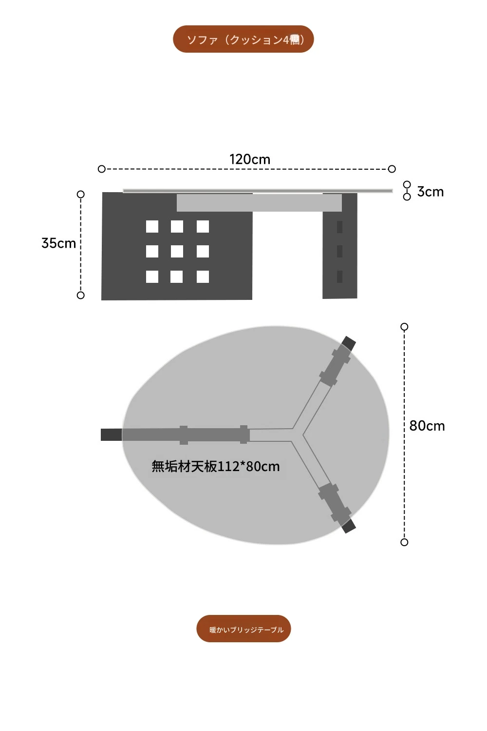 3.6メートルソファ+1.4メートルベンチ+コーヒーテーブル+アンドソファチェア