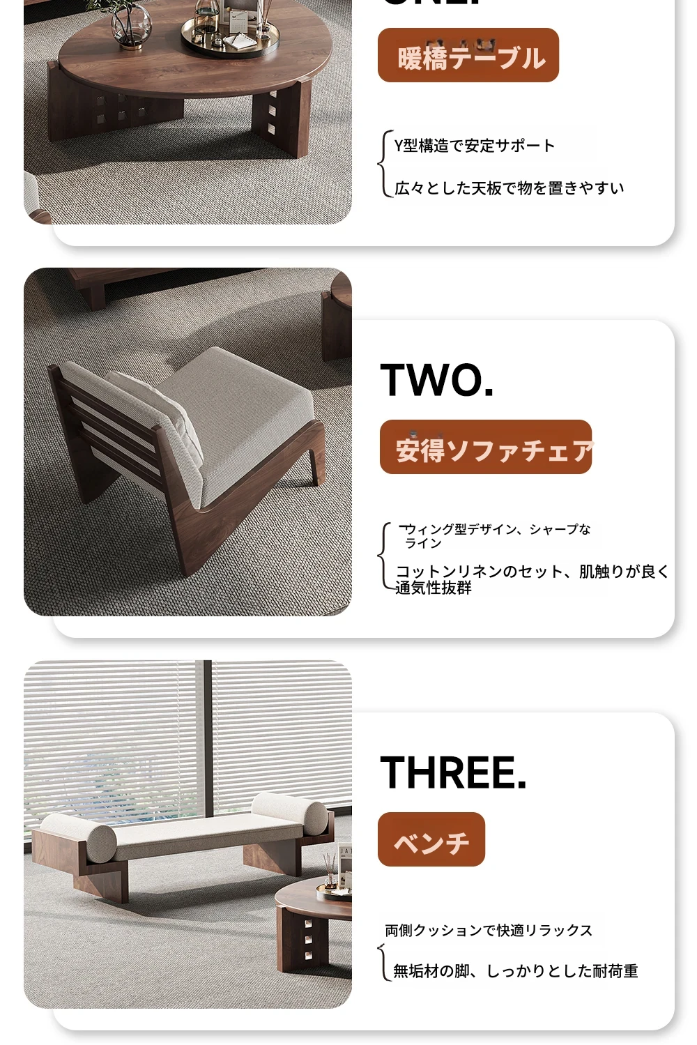 2.4メートルソファ+1.4メートルベンチ+コーヒーテーブル+アンドソファチェア