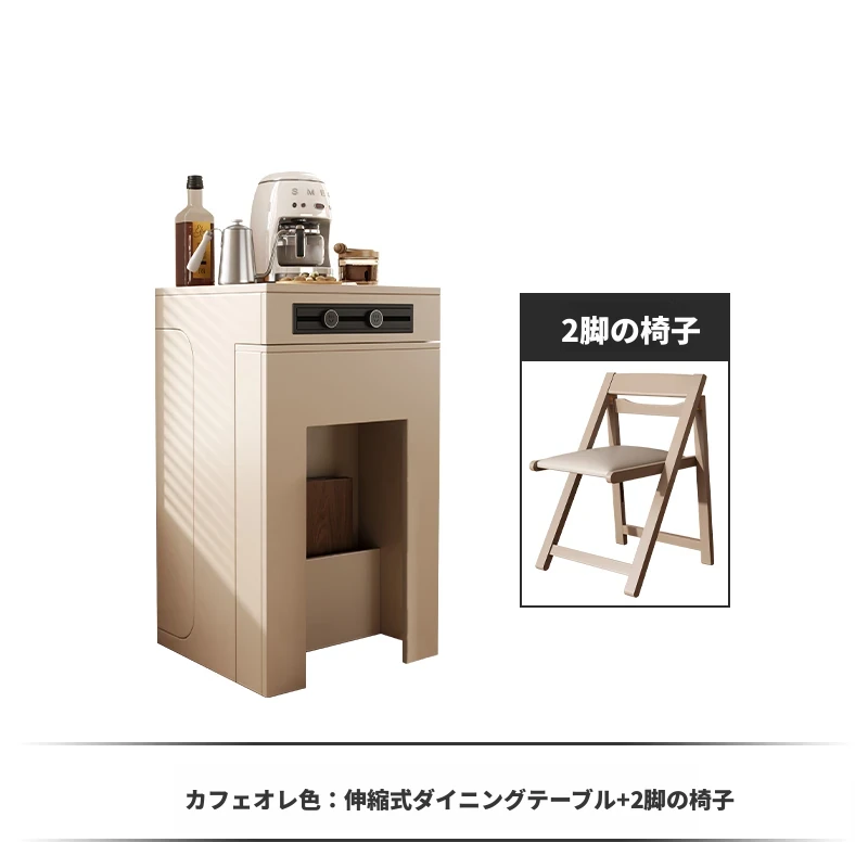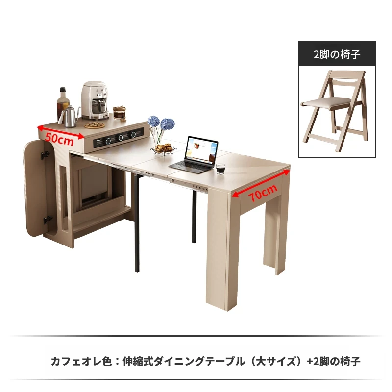 ミルクティー色:伸縮式ダイニングテーブル(大サイズ50*70)+2椅子