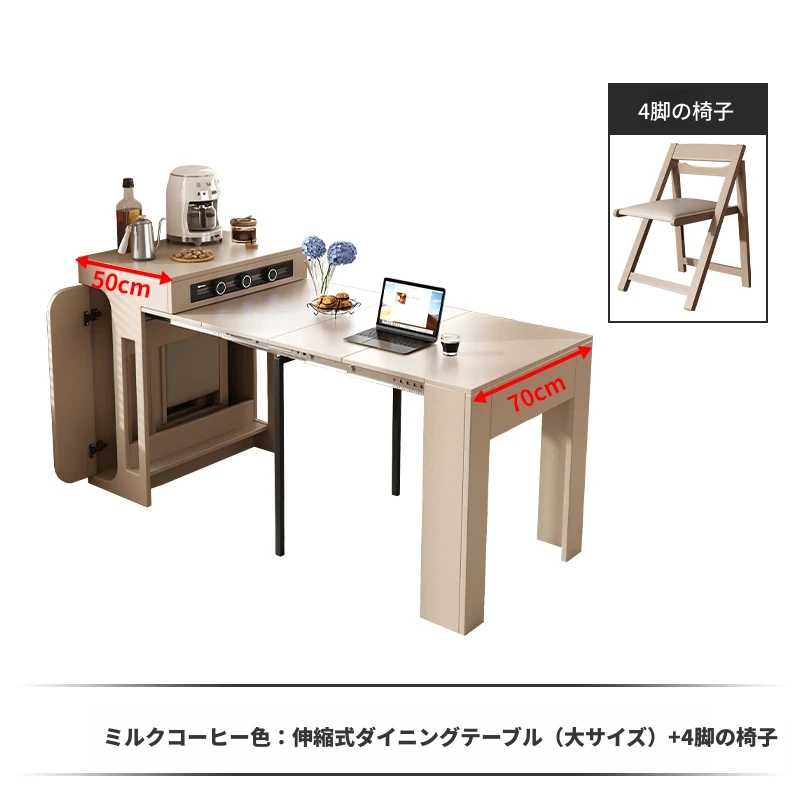 ミルクティー色:伸縮式ダイニングテーブル(大サイズ50*70)+4椅子