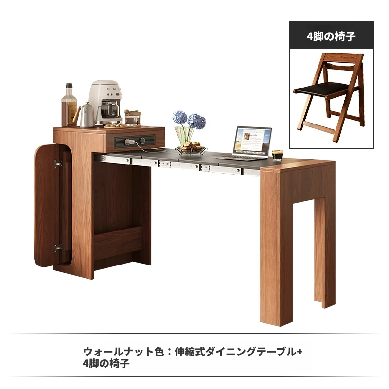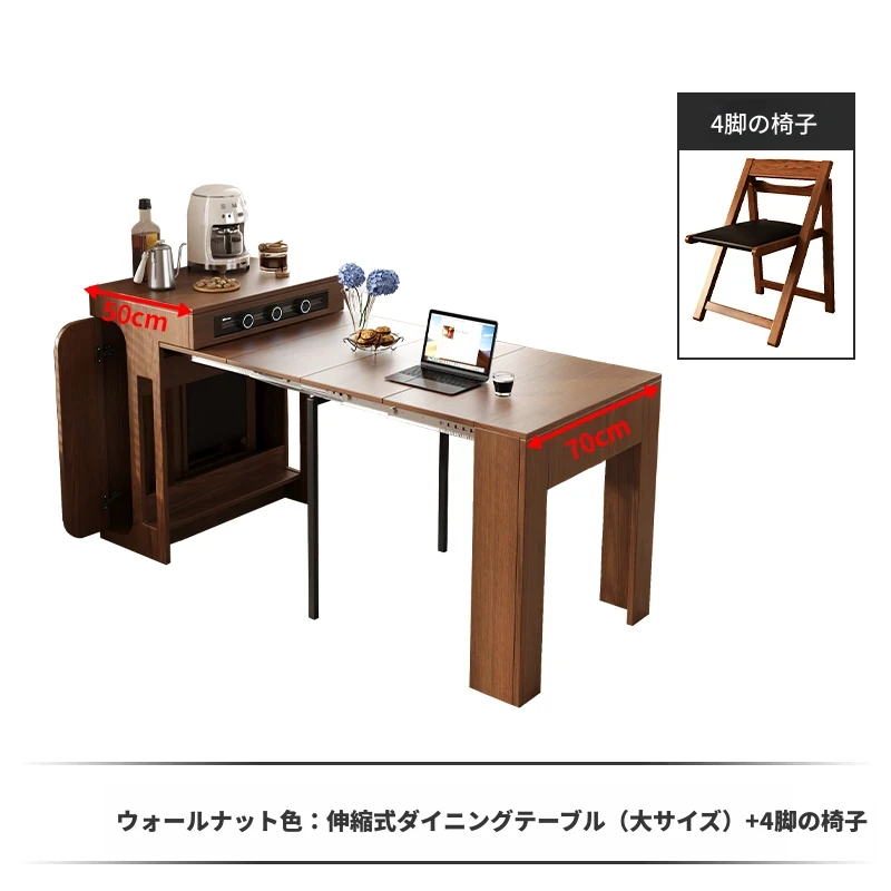 クルミ色:伸縮式ダイニングテーブル(大サイズ50*70)+4椅子