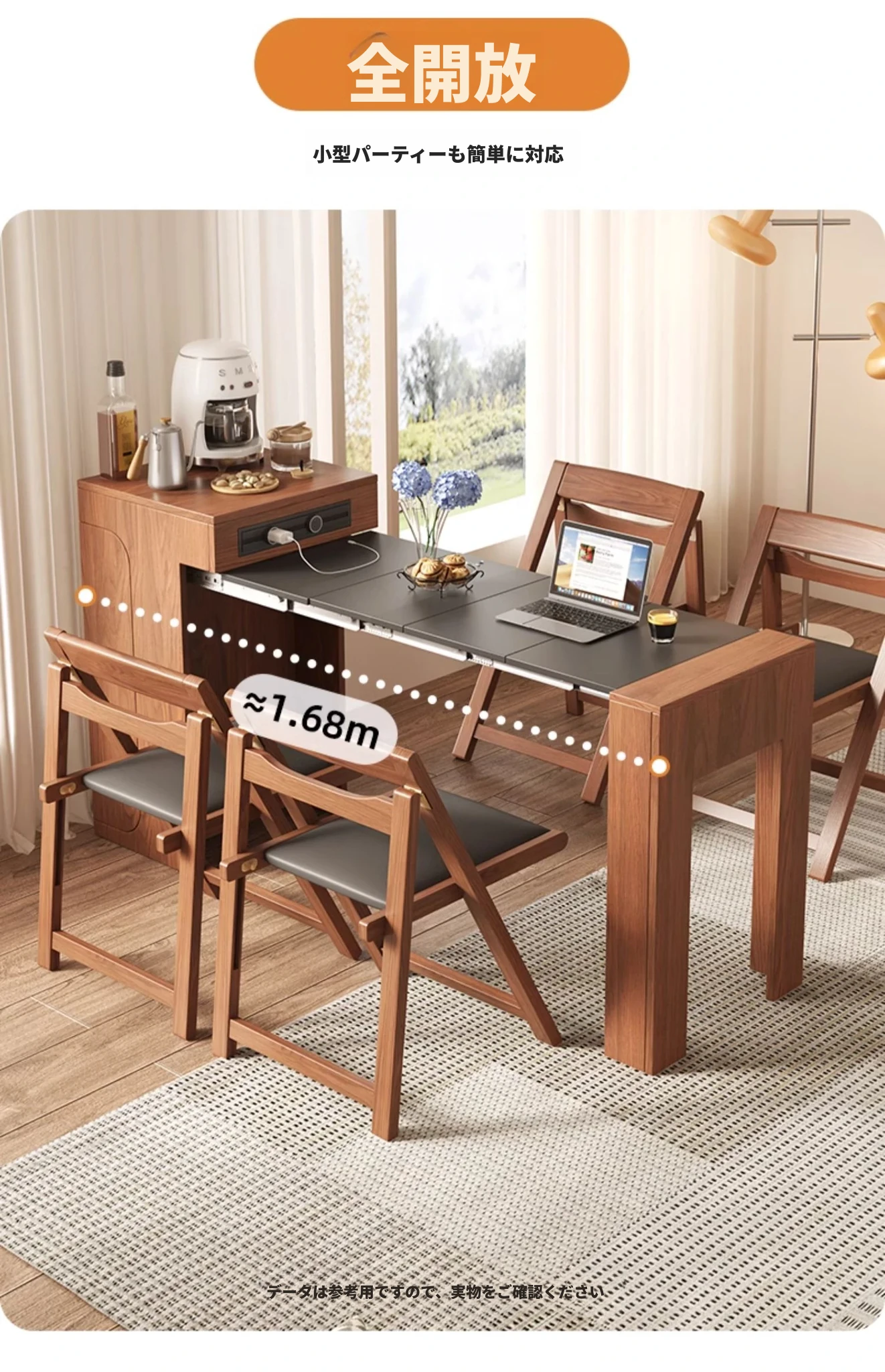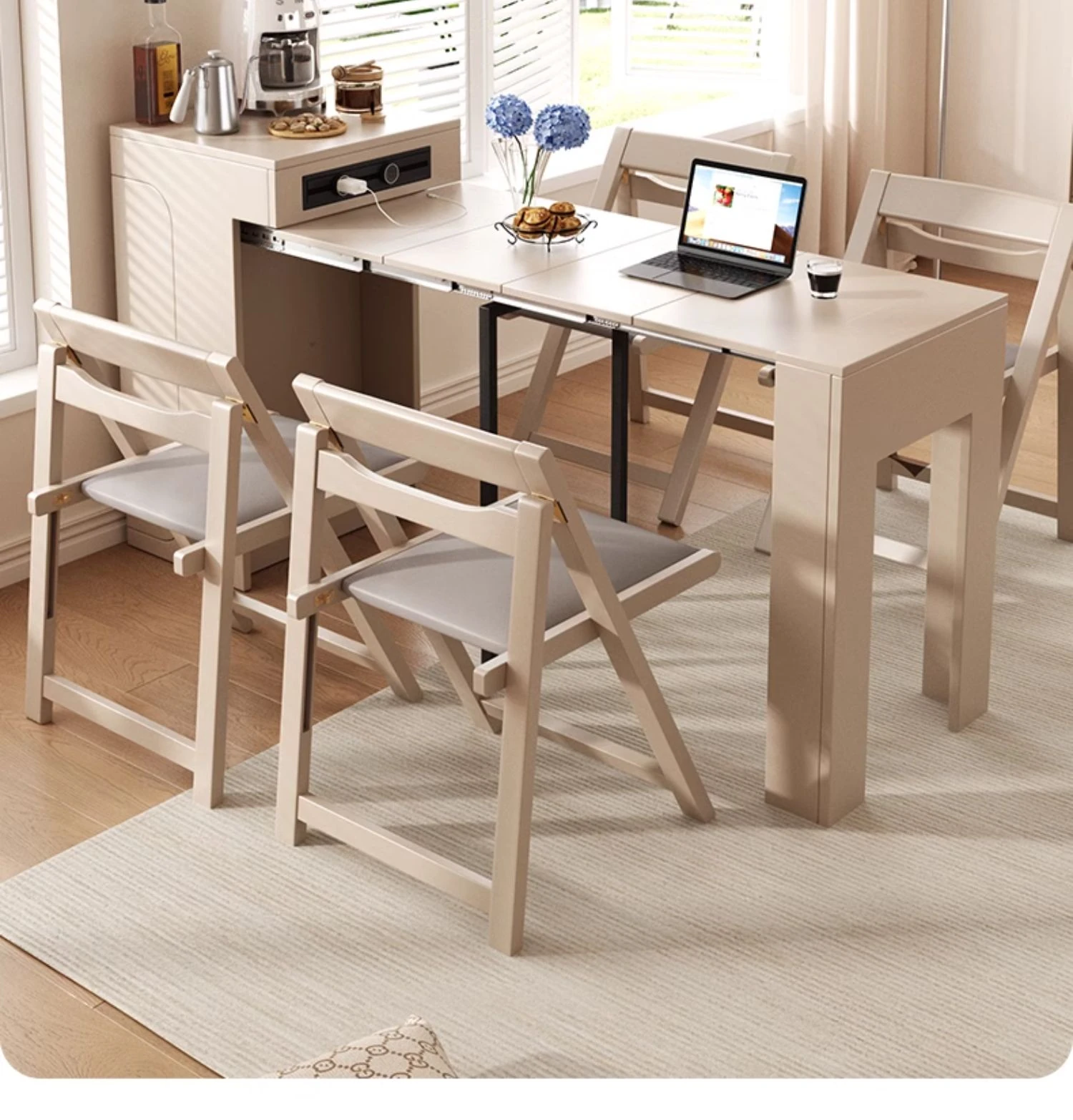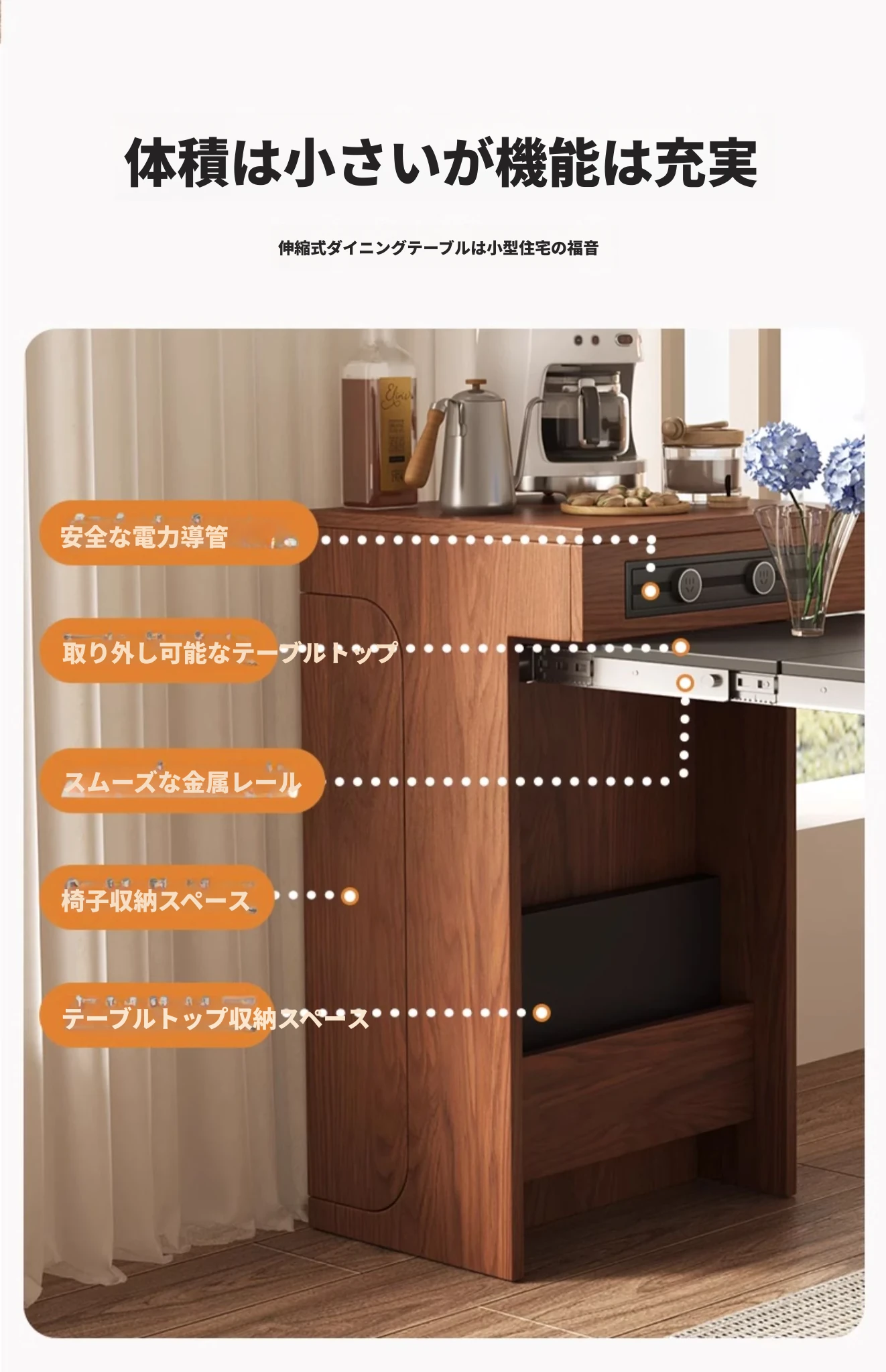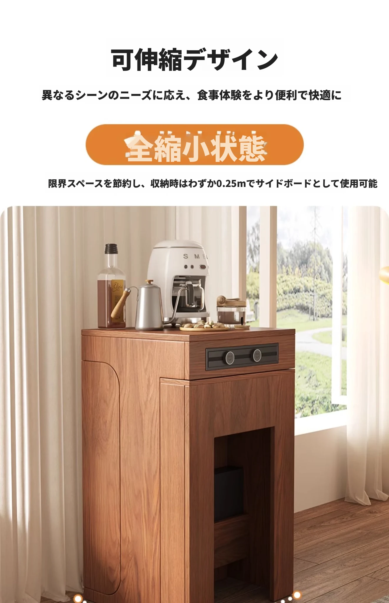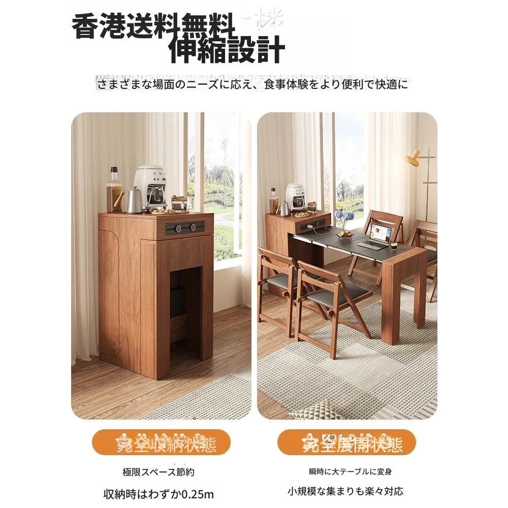 香港送料無料!小型ミニ伸縮式ダイニングテーブルセット&サイドキャビネット、現代的でシンプルなデザイン・省スペース・長方形の家にぴったり!