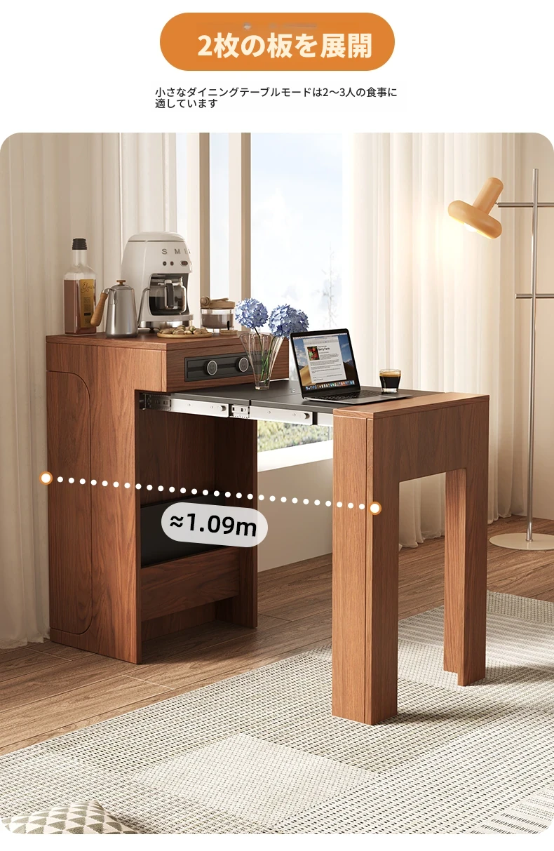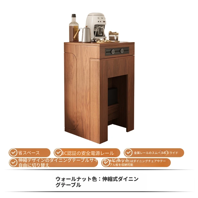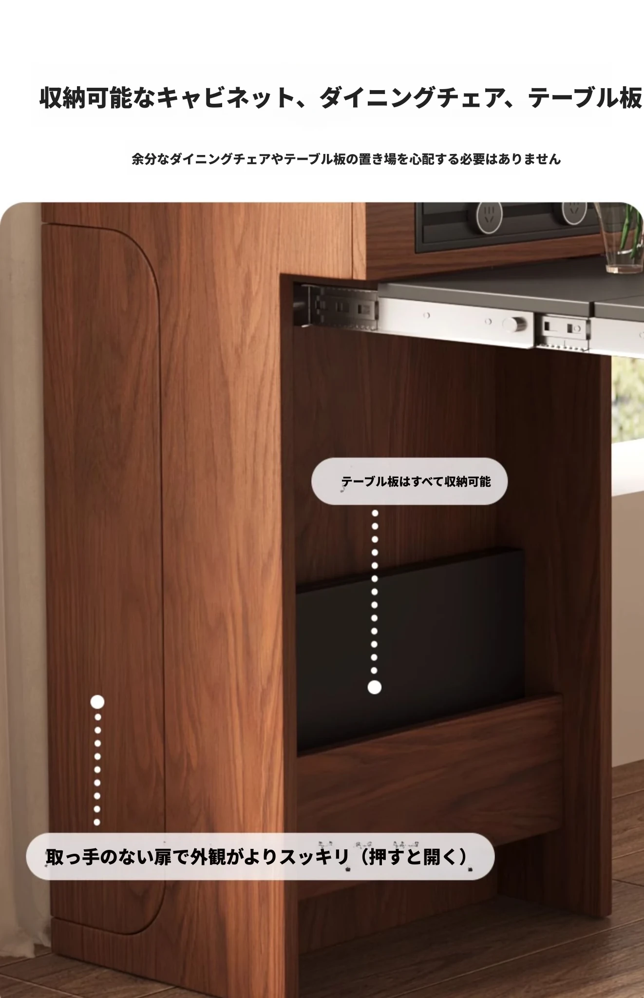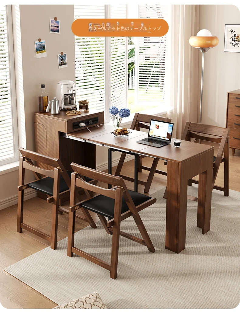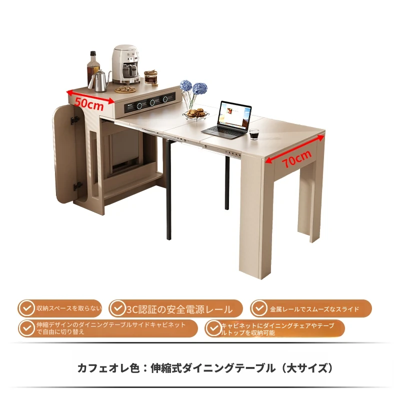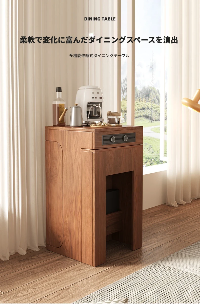 香港送料無料!小型ミニ伸縮式ダイニングテーブルセット&サイドキャビネット、現代的でシンプルなデザイン・省スペース・長方形の家にぴったり!