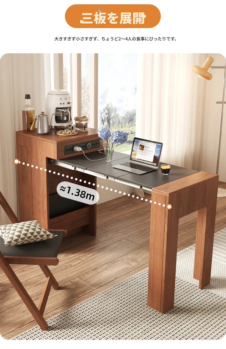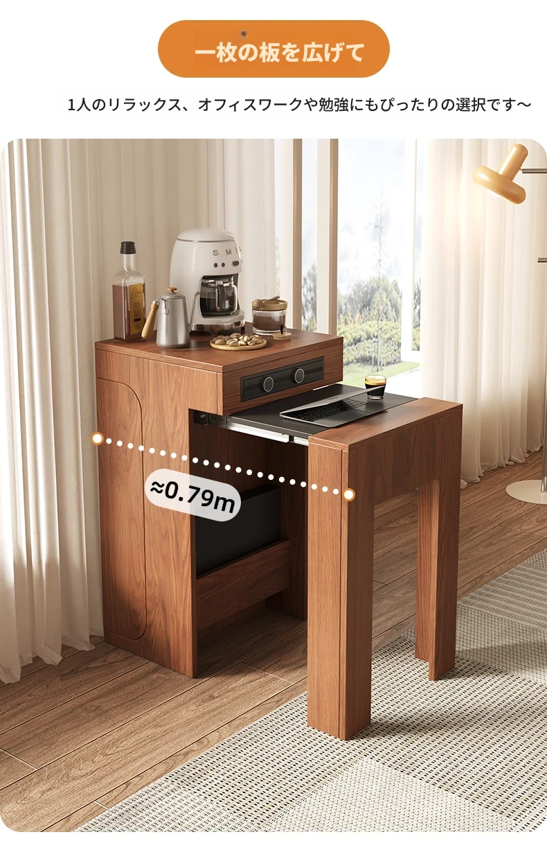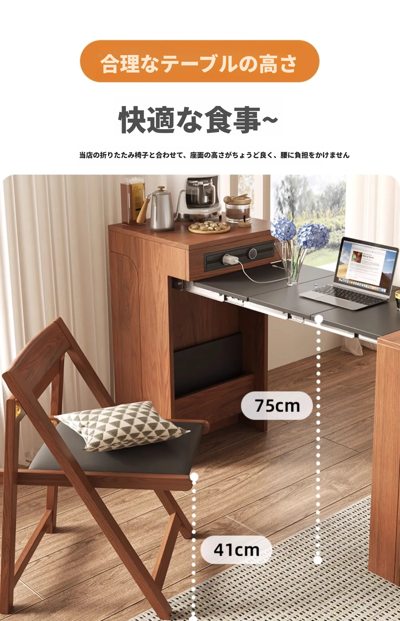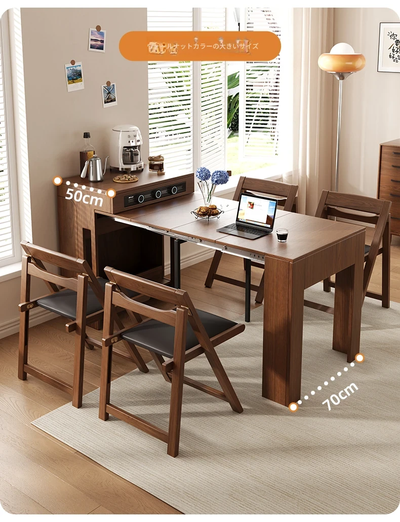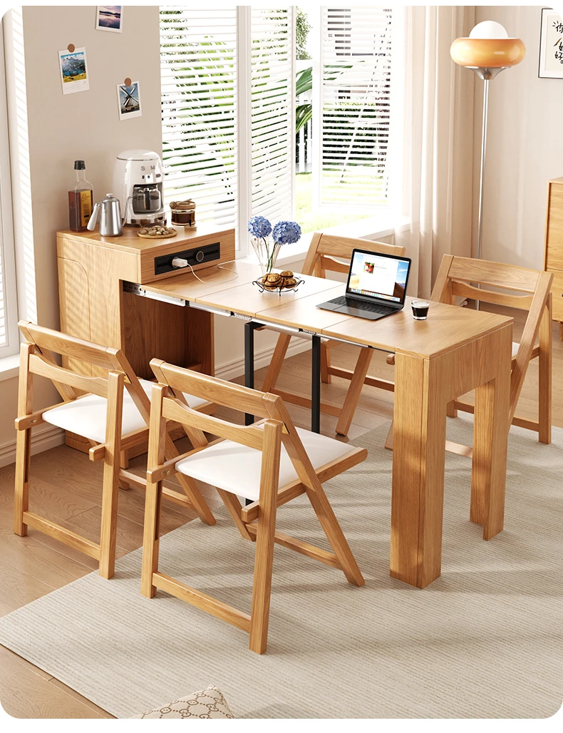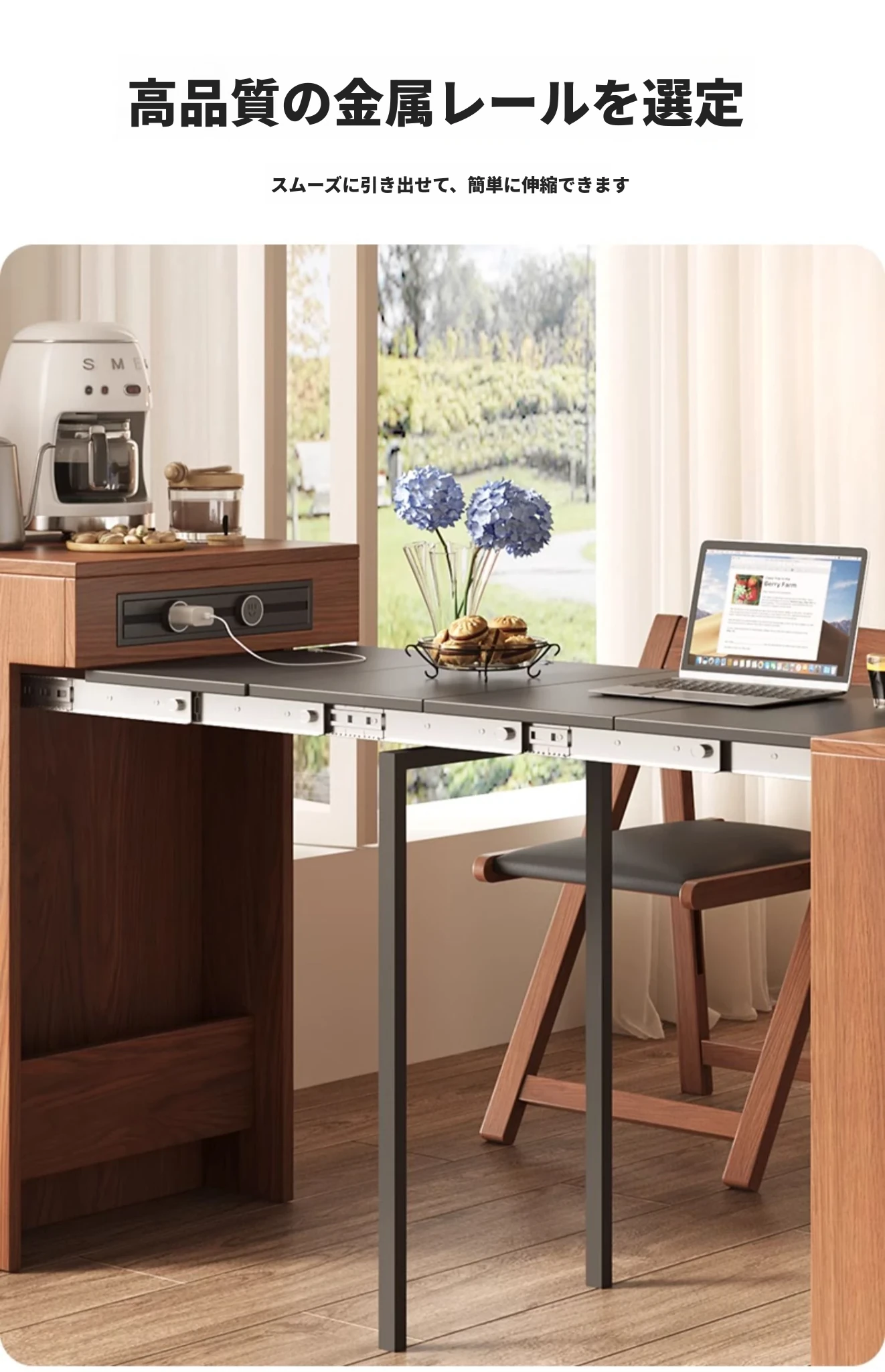 香港送料無料!小型ミニ伸縮式ダイニングテーブルセット&サイドキャビネット、現代的でシンプルなデザイン・省スペース・長方形の家にぴったり!