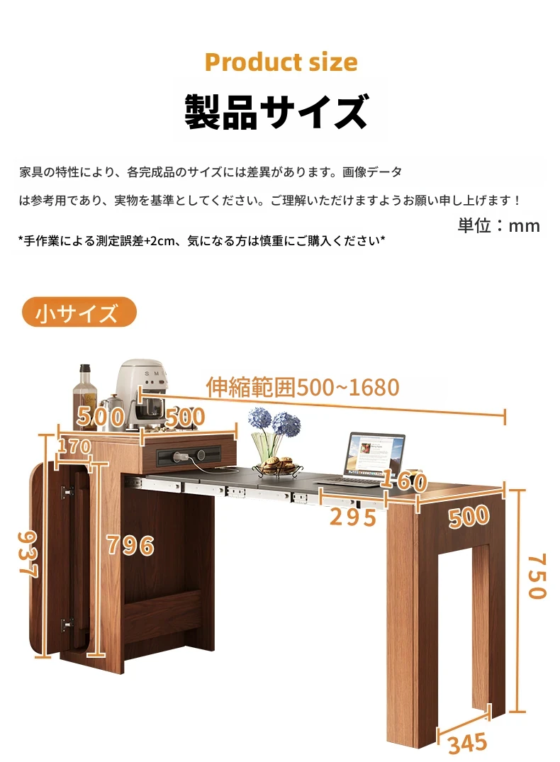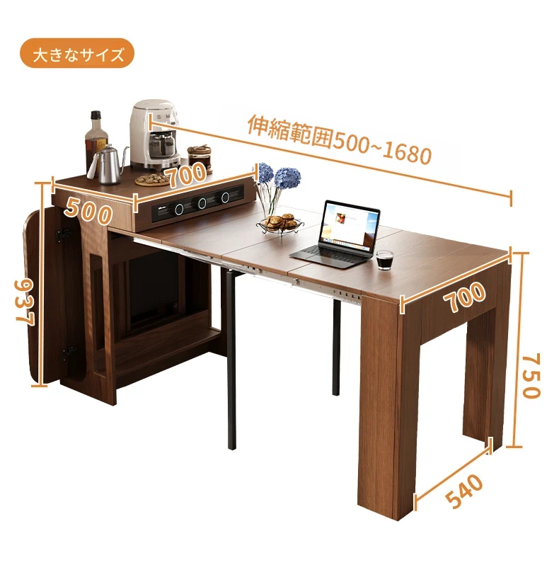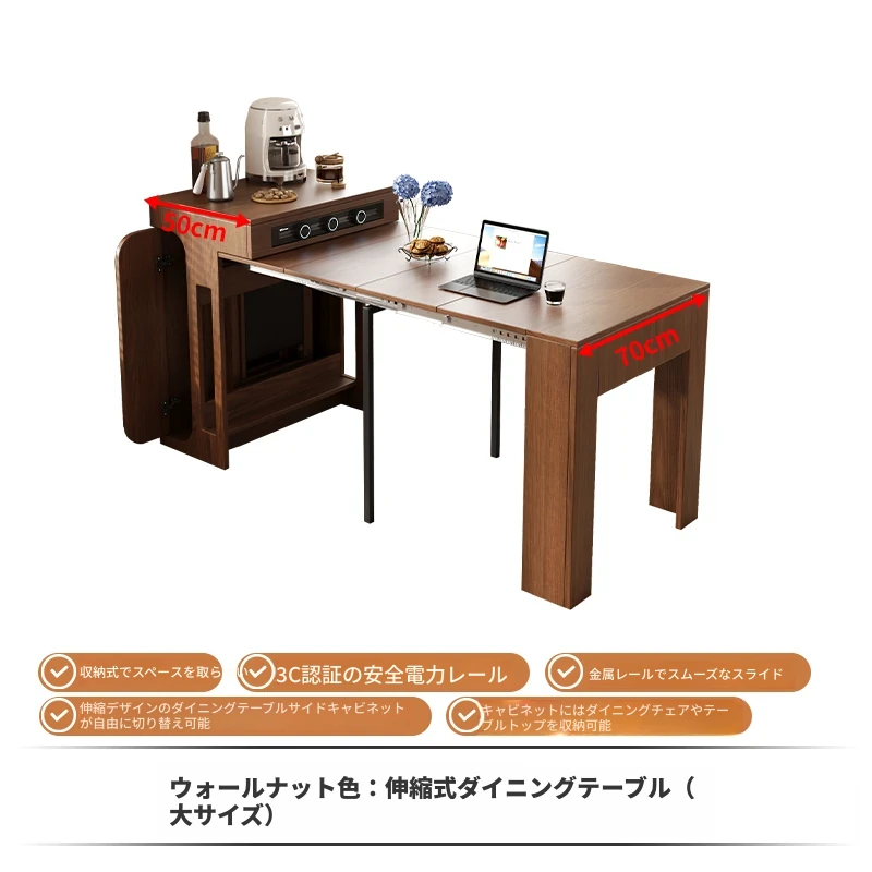 クルミ色:伸縮式ダイニングテーブル(大サイズ50*70)