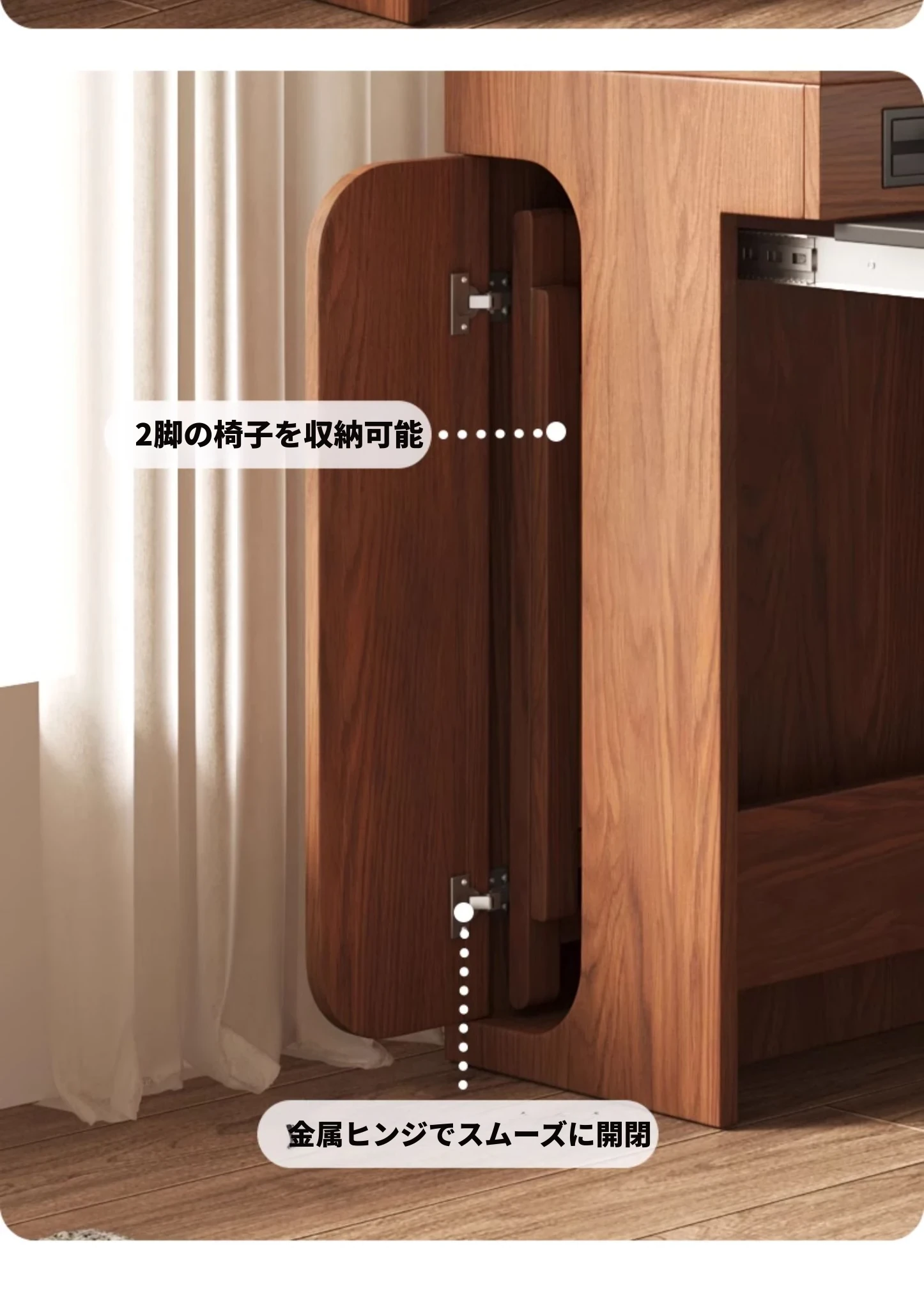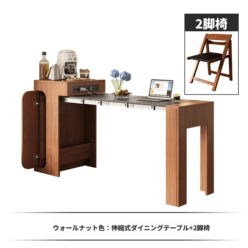 クルミ色:伸縮式ダイニングテーブル(大サイズ50*70)+2椅子