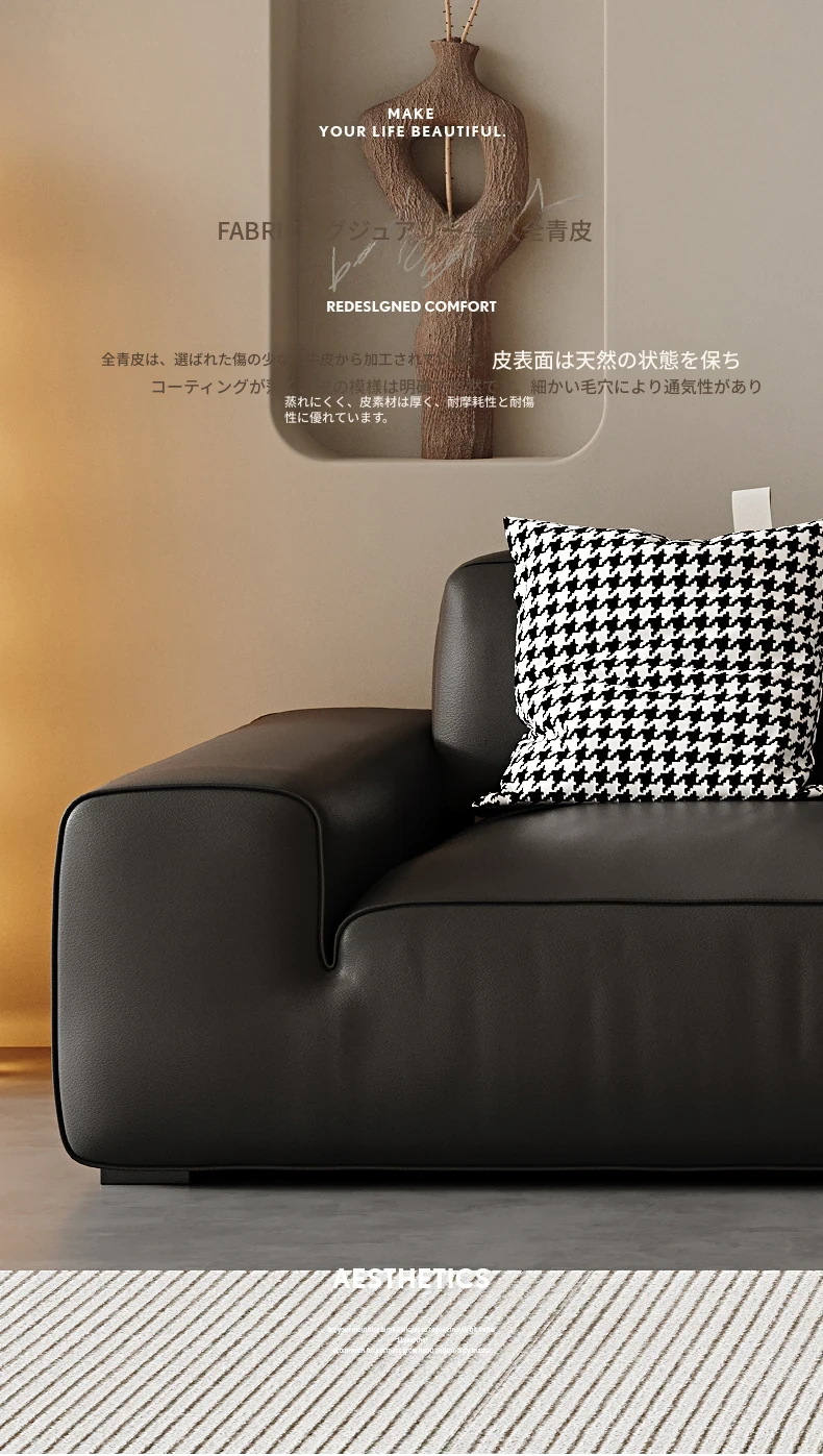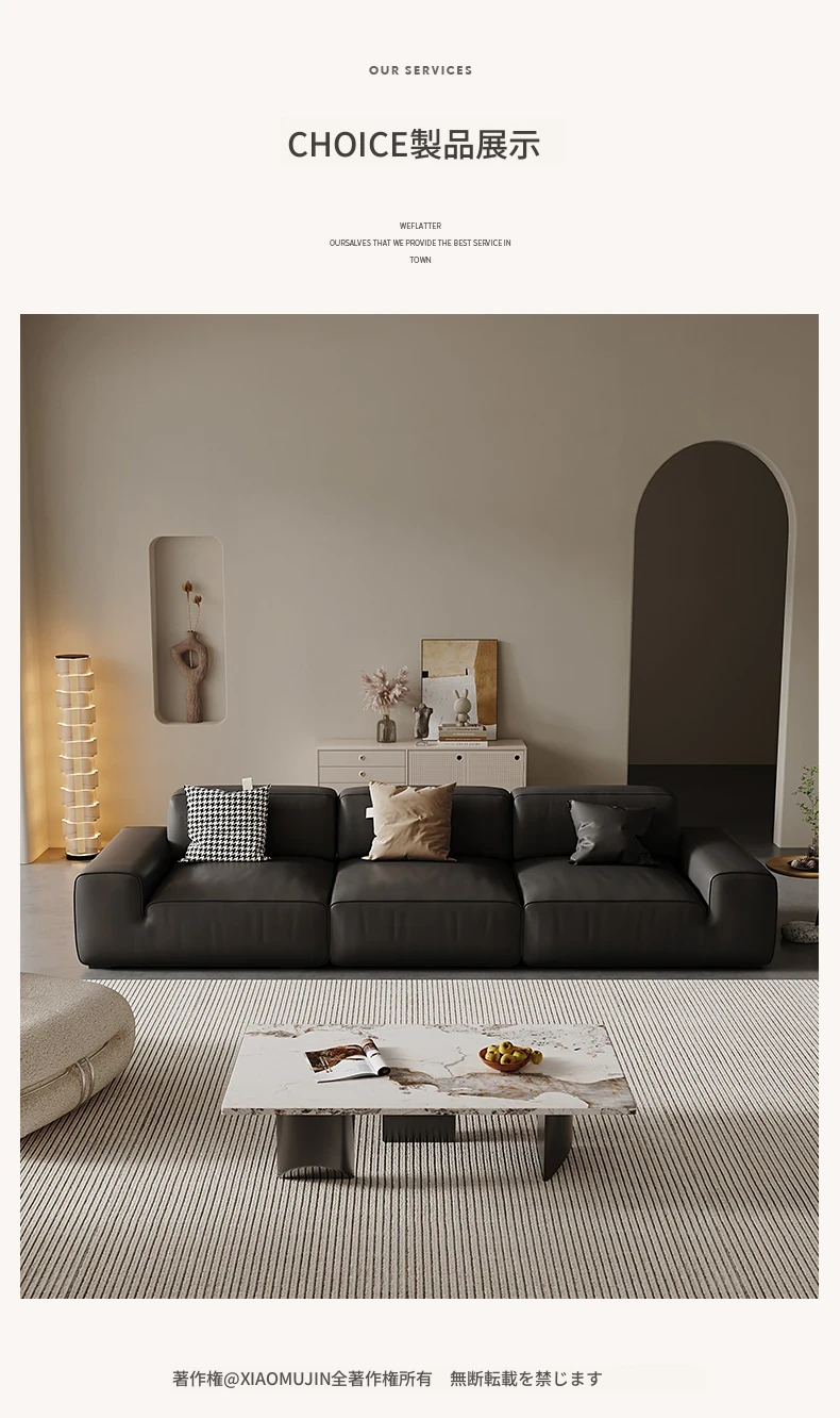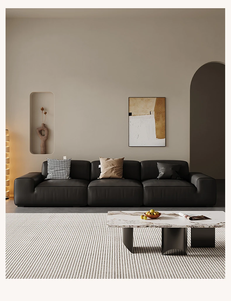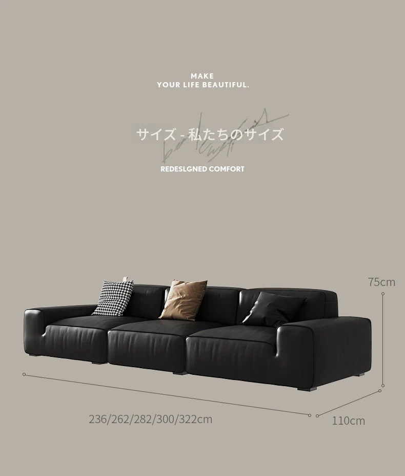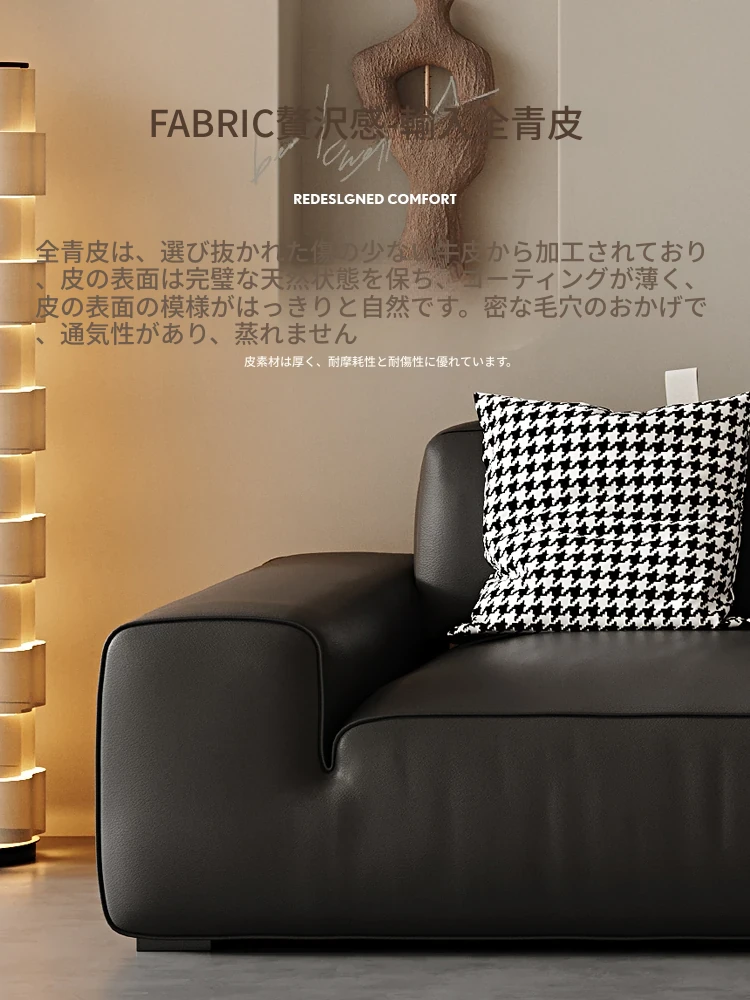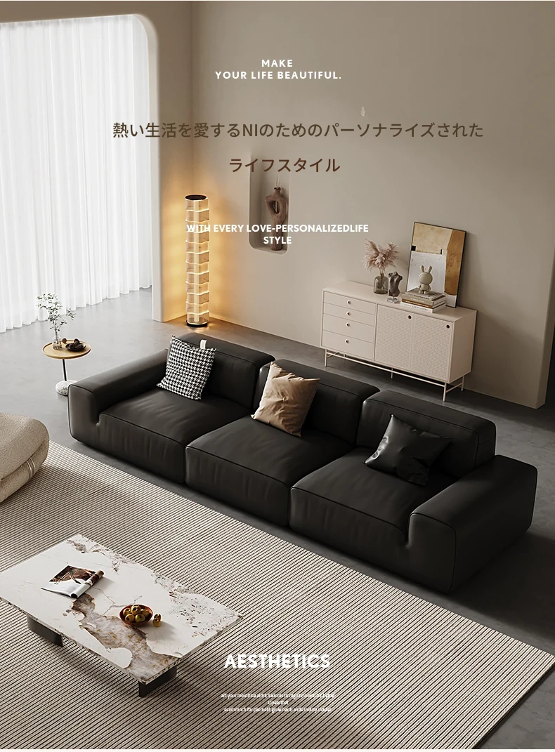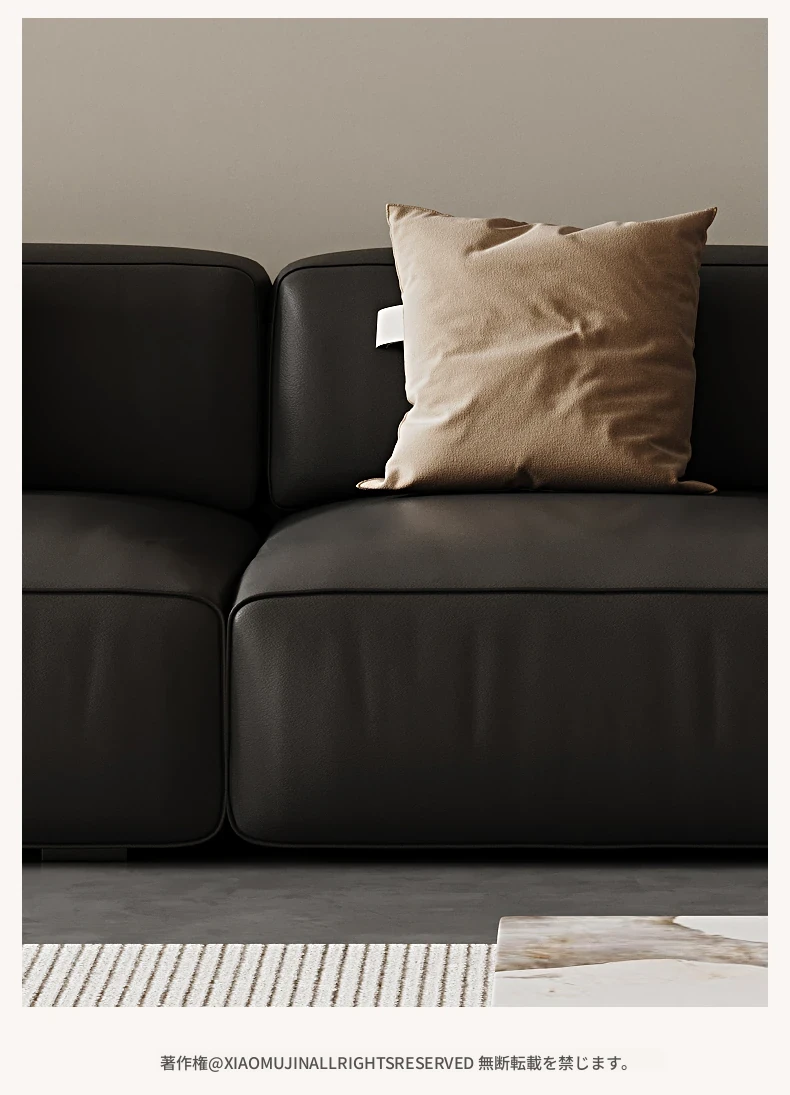 イタリアンミニマリズム 大人のブラックレザーソファ 高級本革使用 リビングに最適な豆腐ブロックデザイン コンパクトなサイズでどんなお部屋にもフィット!