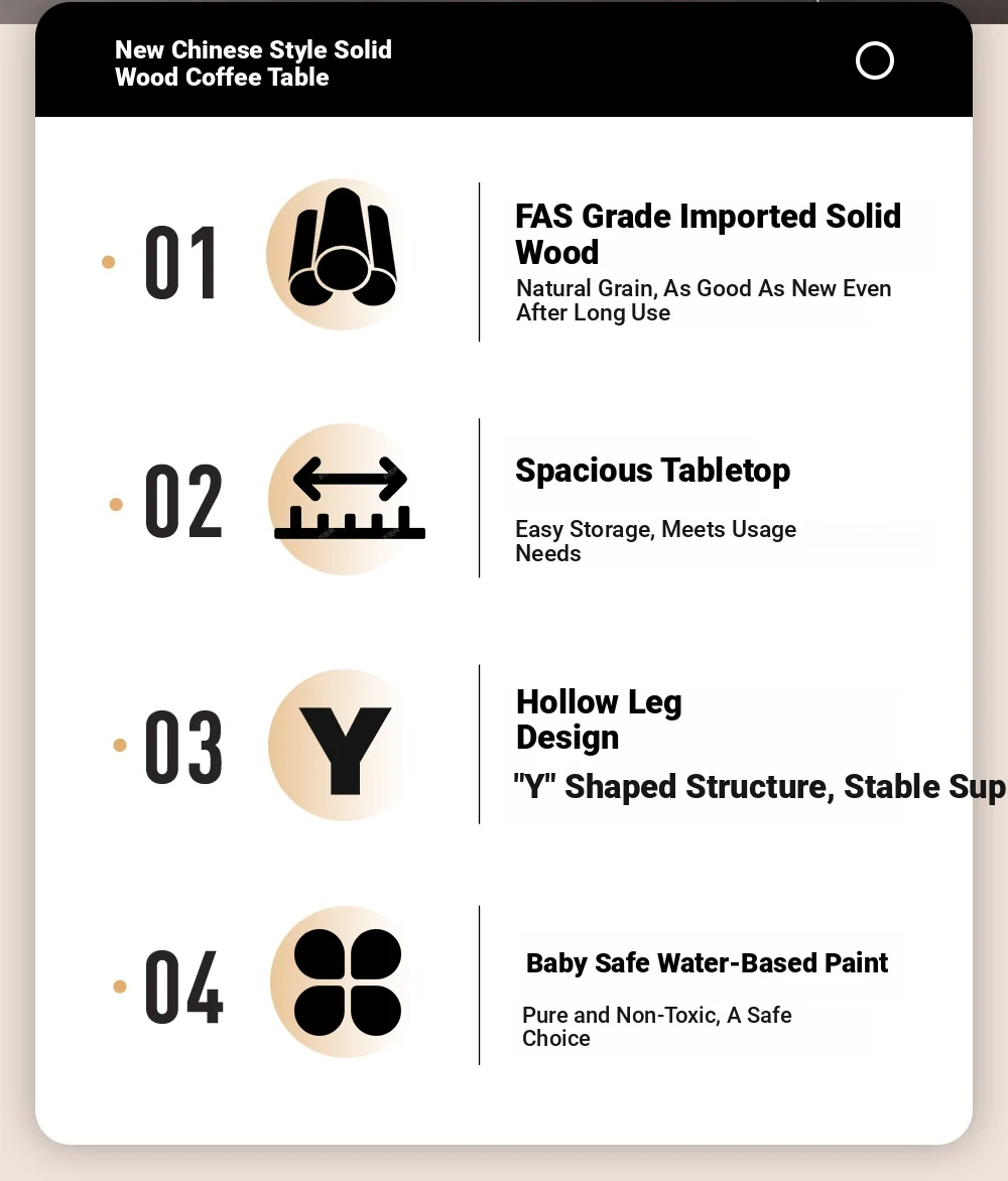 Jizeng Solid Wood Coffee Table for Living Room - 2025 New Luxury Design, Modern Minimalist Sofa Table for Small Spaces, Perfect for Home Decor