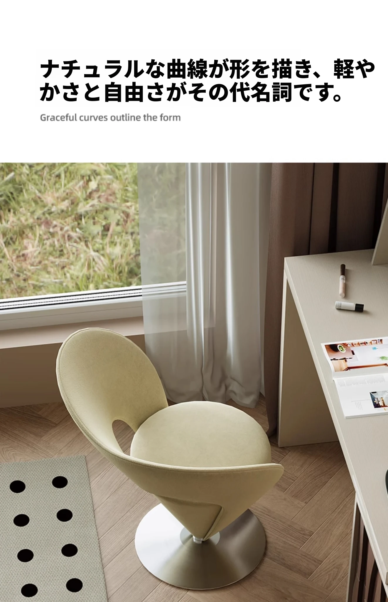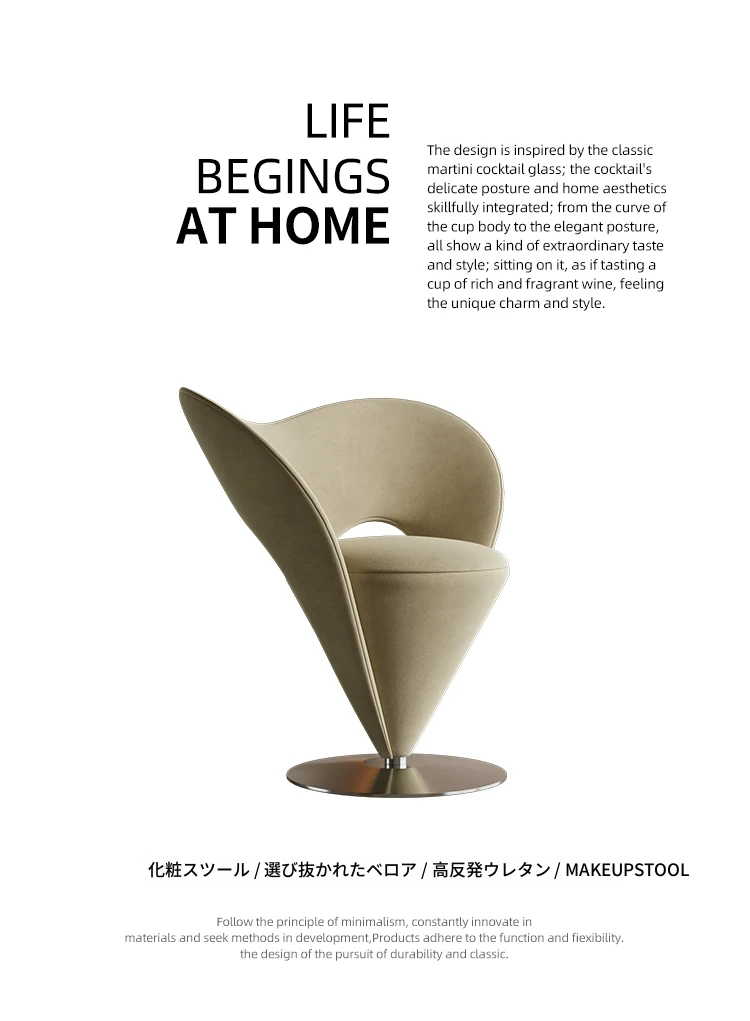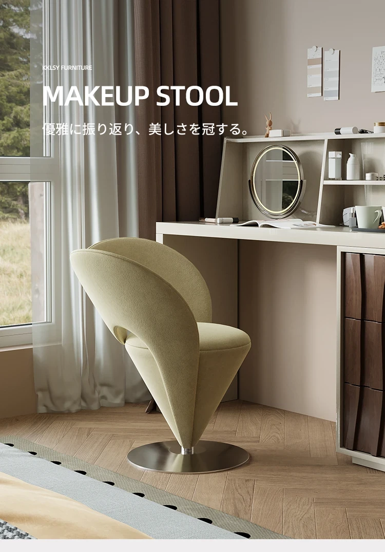 モダンミニマリズム化粧スツール|ラグジュアリー感溢れるデザイン|女性の寝室に最適な回転式メイクアップチェア|おしゃれで機能的なデザイナーズアイテム
