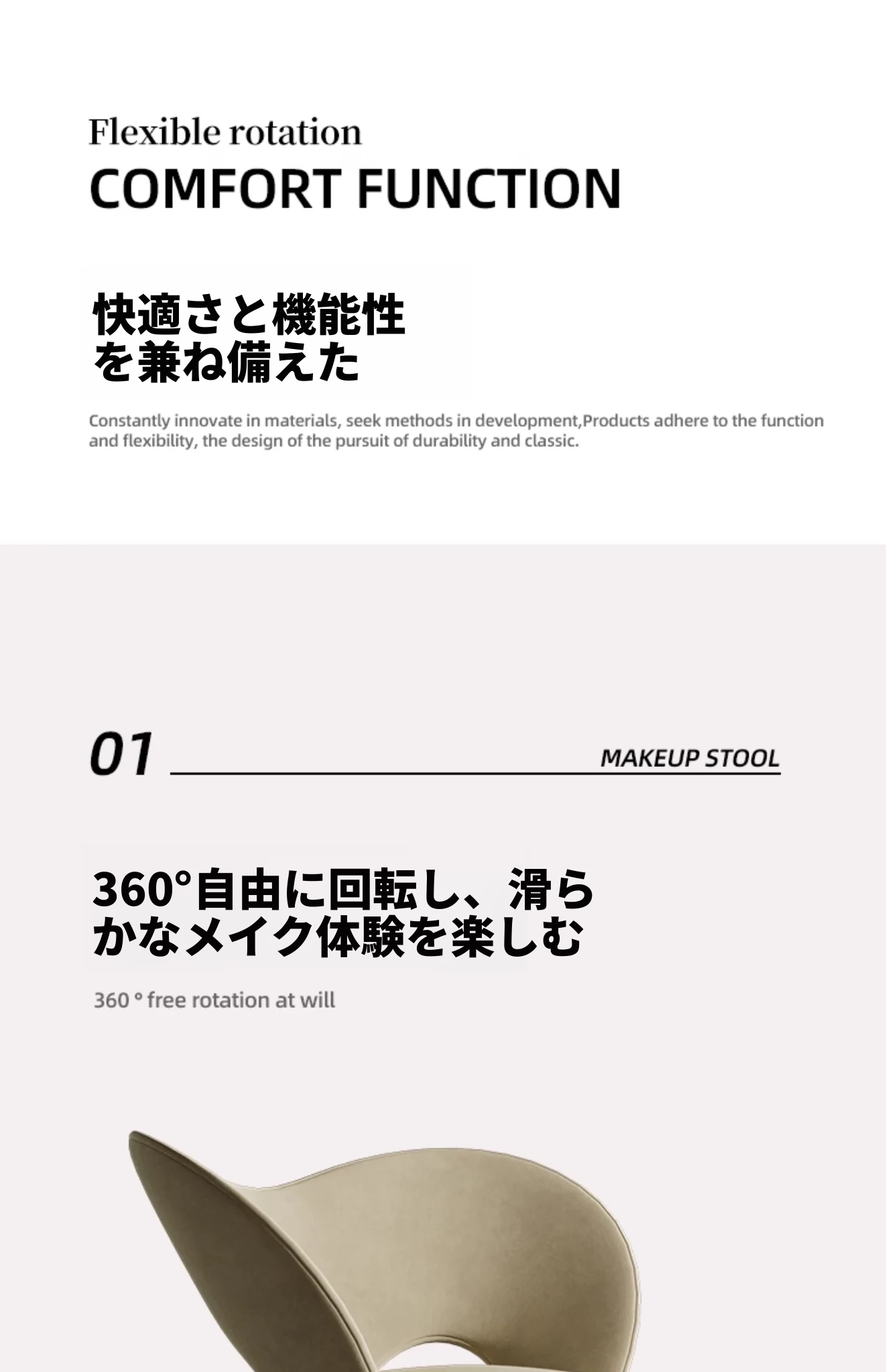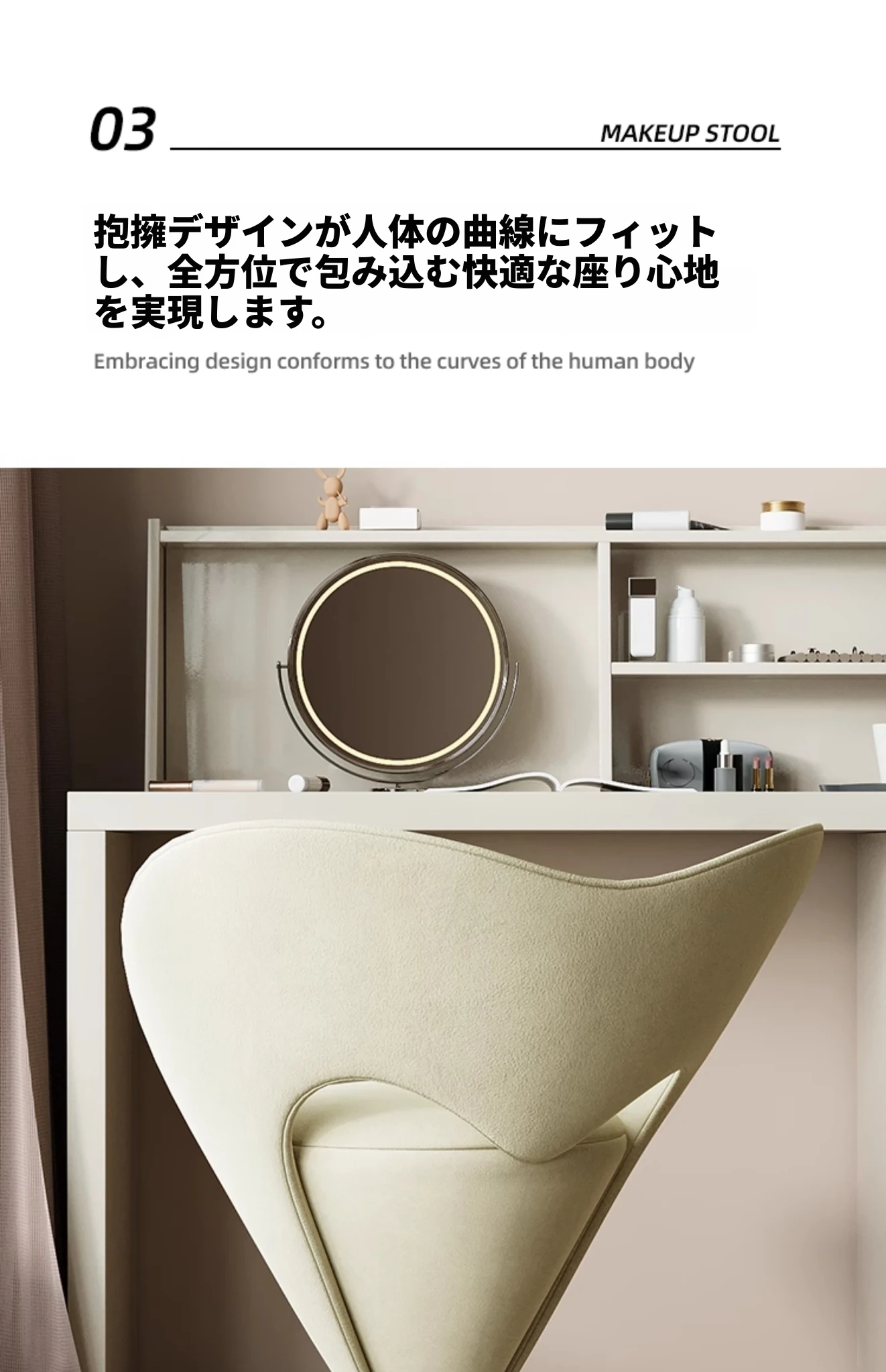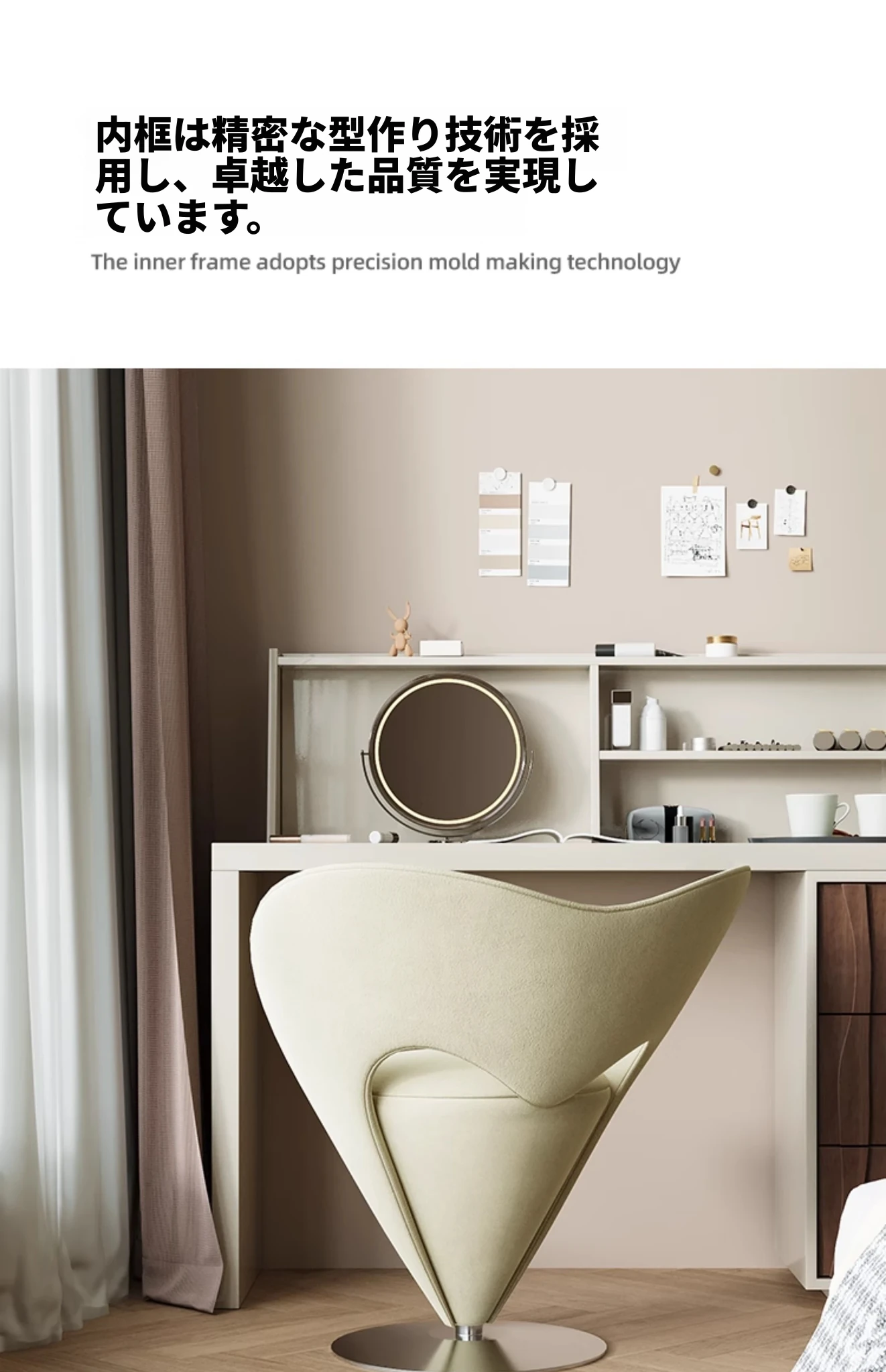 モダンミニマリズム化粧スツール|ラグジュアリー感溢れるデザイン|女性の寝室に最適な回転式メイクアップチェア|おしゃれで機能的なデザイナーズアイテム