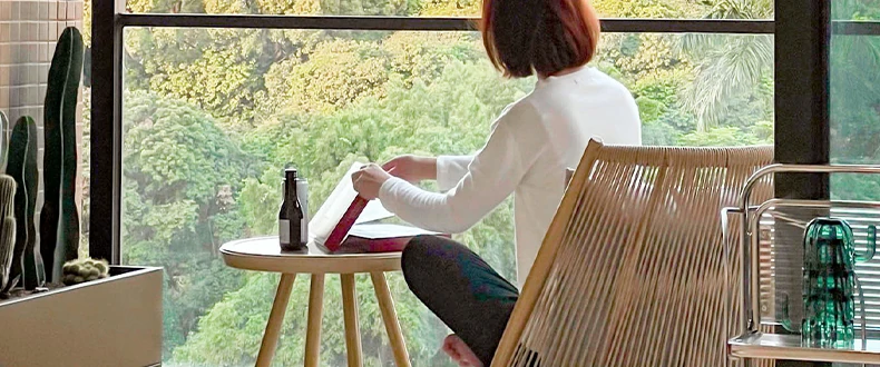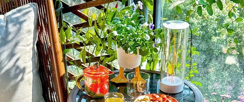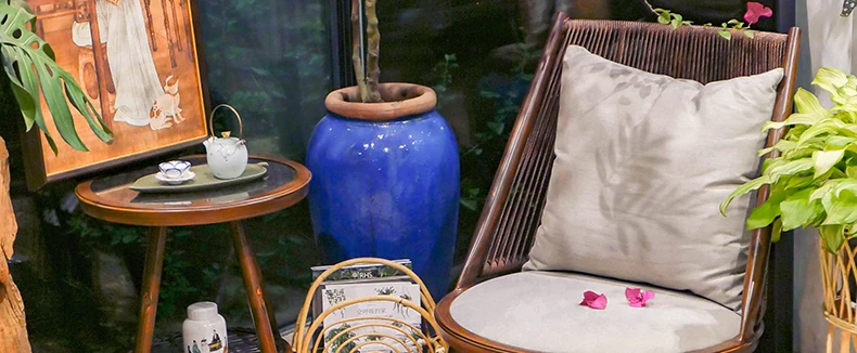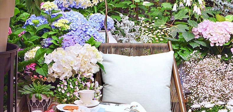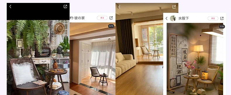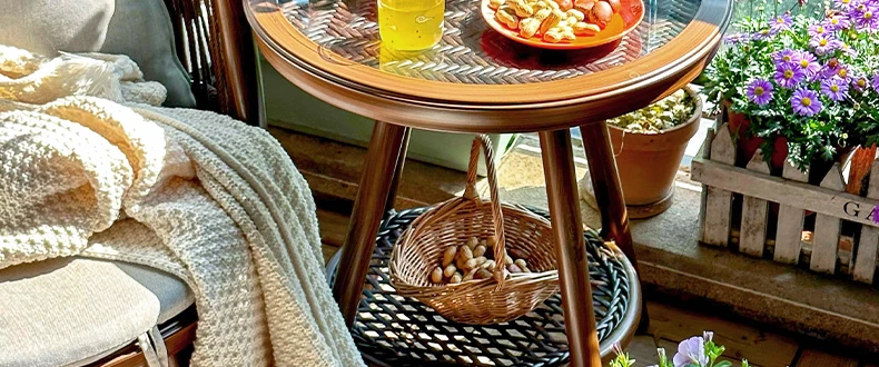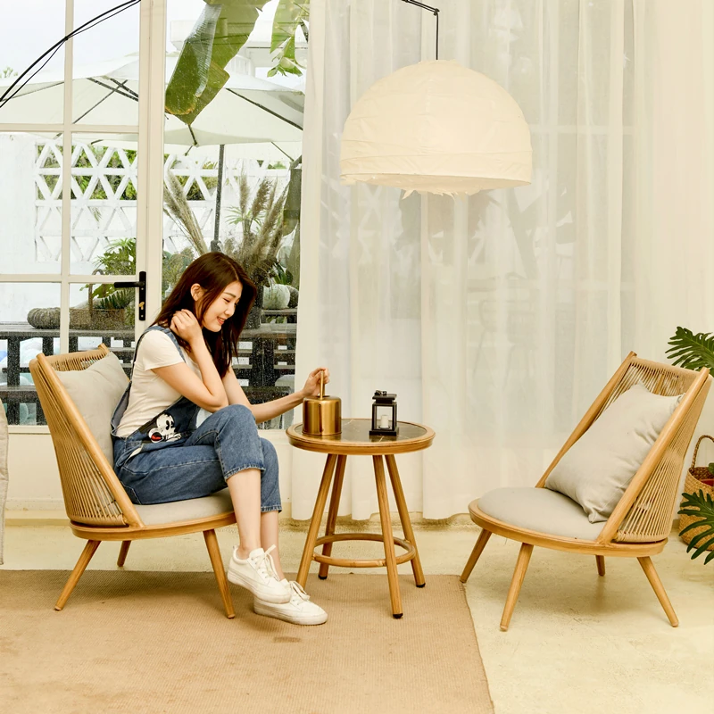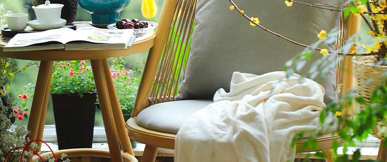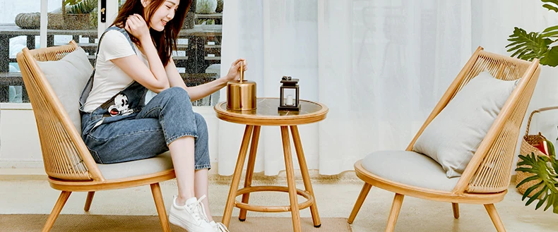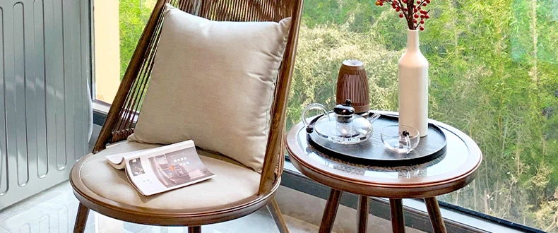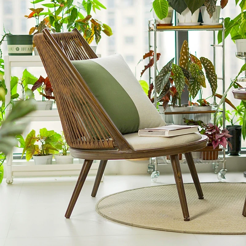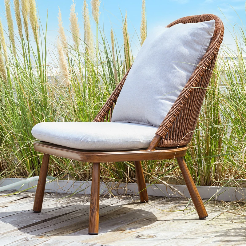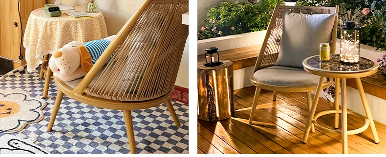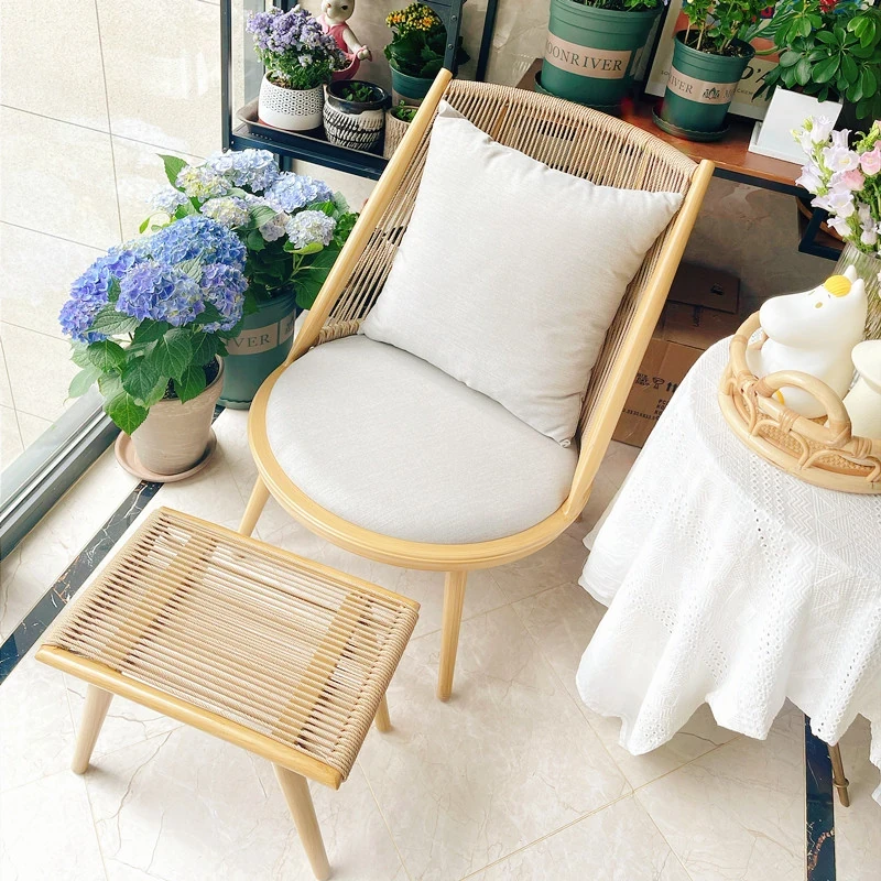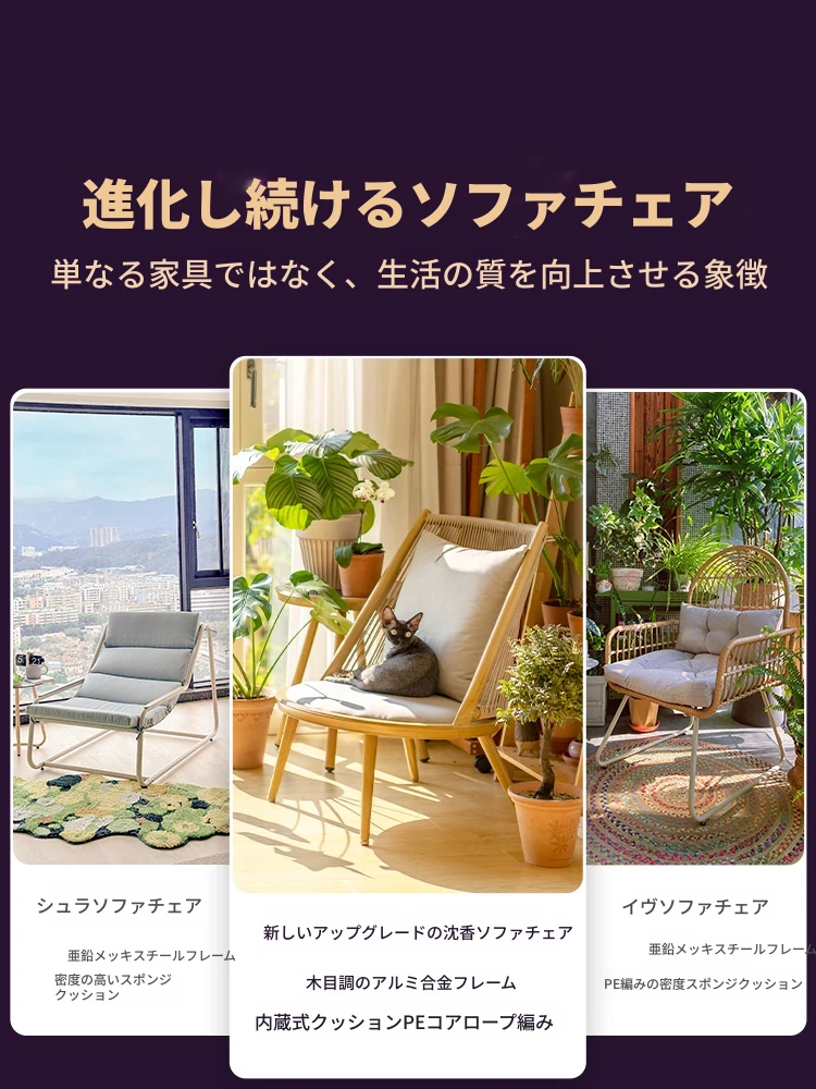 紫色のリーフデザインが魅力的なバルコニー用リクライニングチェア!シンプルでモダンなスタイルの一人掛けソファ、北欧風のラタン製のリラックスチェア。小さなお部屋にもぴったりな、くつろぎの時間を提供します!