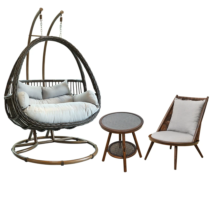 1【木目のダブルハンモック】+1【ソファチェア+ガラステーブル】