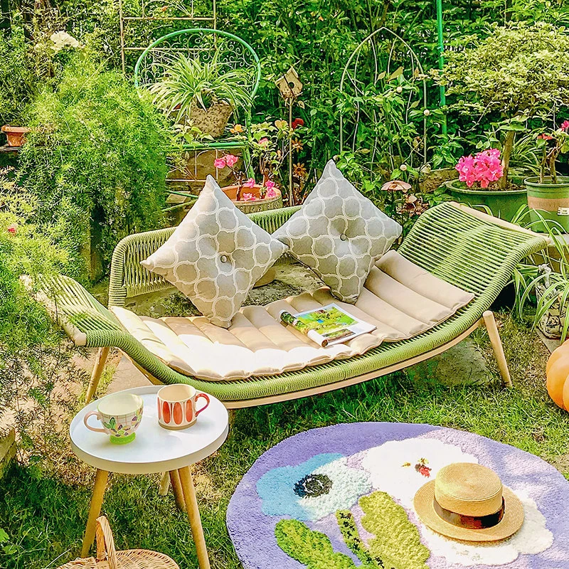 紫葉の一人用ソファチェア、リラックスできる高級デザインのロッキングチェア。赤い藤編みで陽台の休憩エリアにぴったりのフェイスタイプチェア。おしゃれで快適なひとときをお楽しみください!