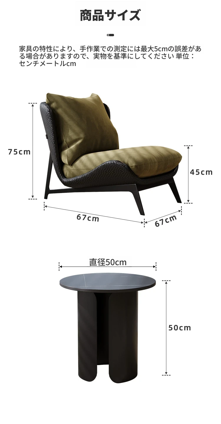 グリーンソファチェア2脚+サイドテーブル直径50CM