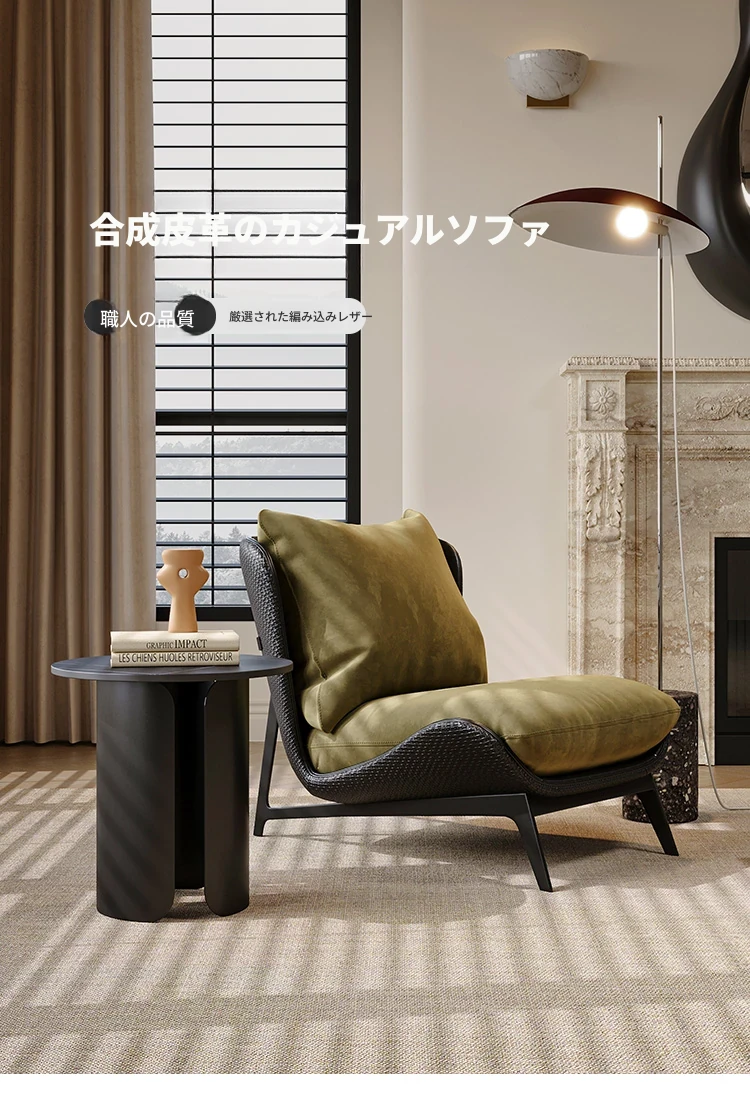 侘寂風デザインのヴィンテージソファチェア - 客間や民宿、ホテルに最適な一人掛けソファ。カフェやリラックスできる空間にぴったりな、洗練されたデザインのくつろぎ椅子!