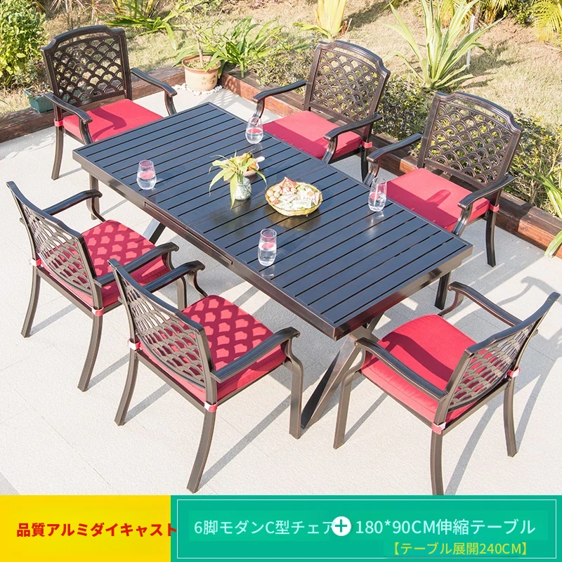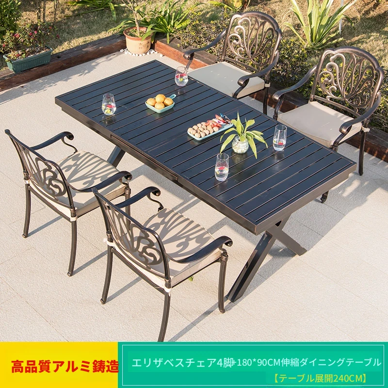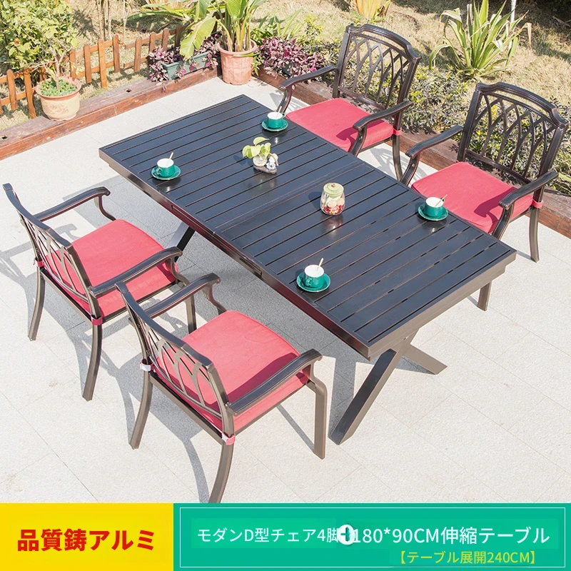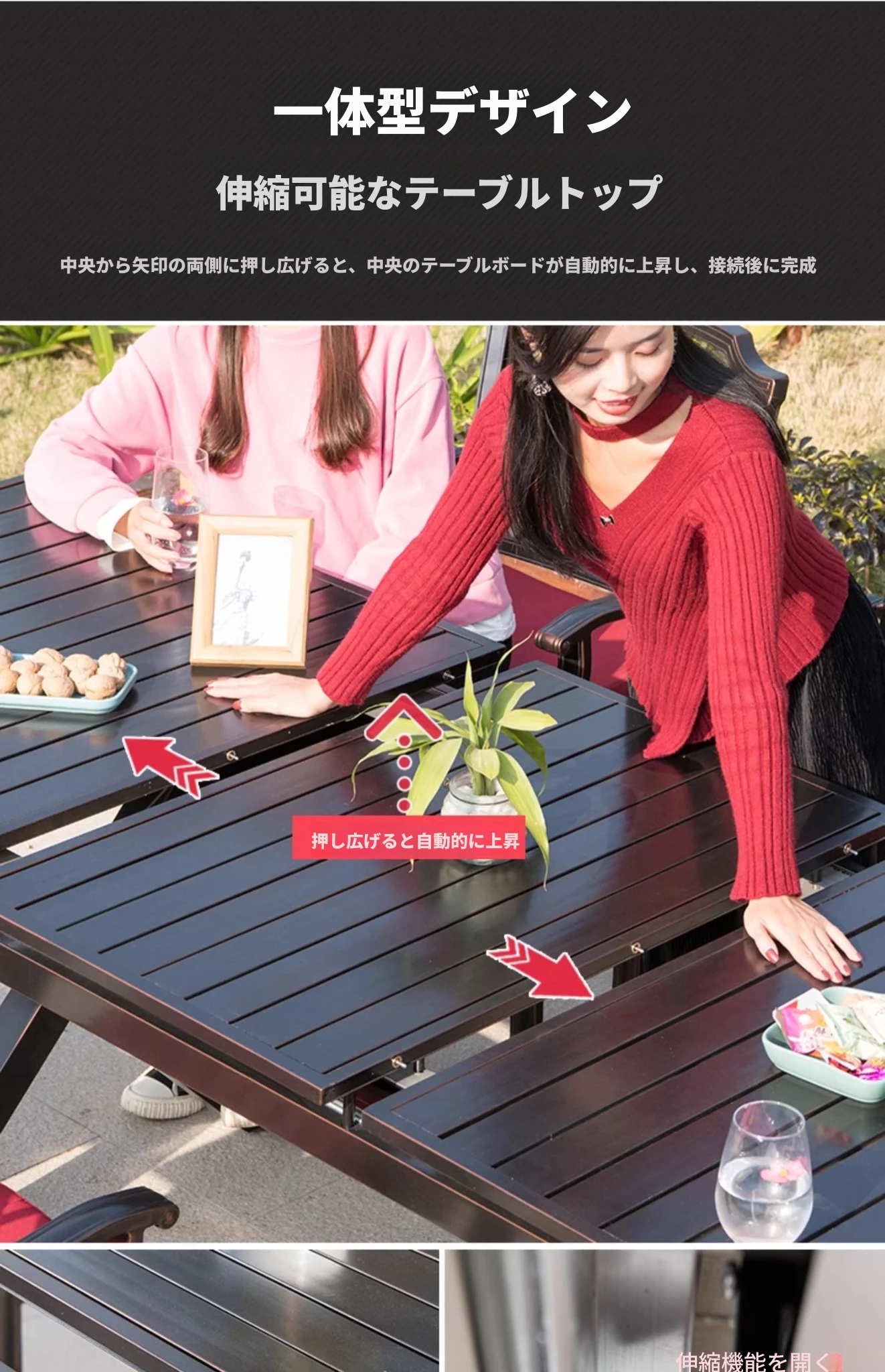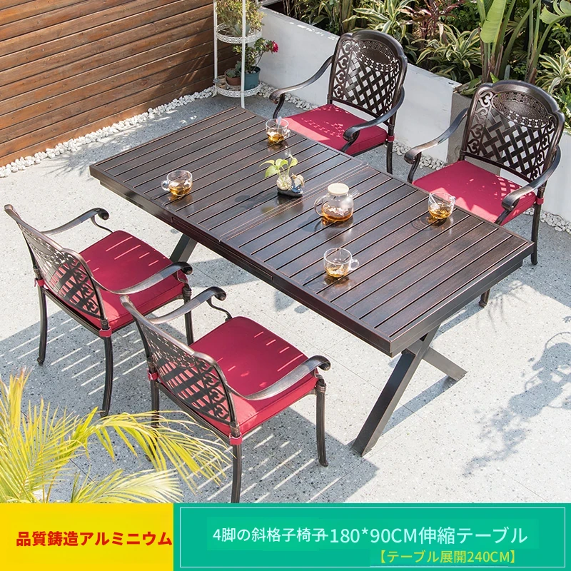 子力アウトドアアルミニウムテーブル&チェアセット - リラックスできるバルコニーや庭に最適!伸縮可能なデザインで、屋外での楽しいひと時を演出。高品質で耐久性のある素材使用、どんな天候にも対応!