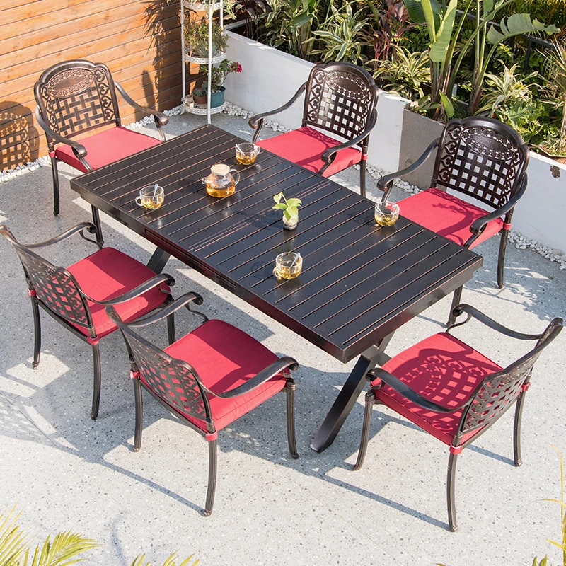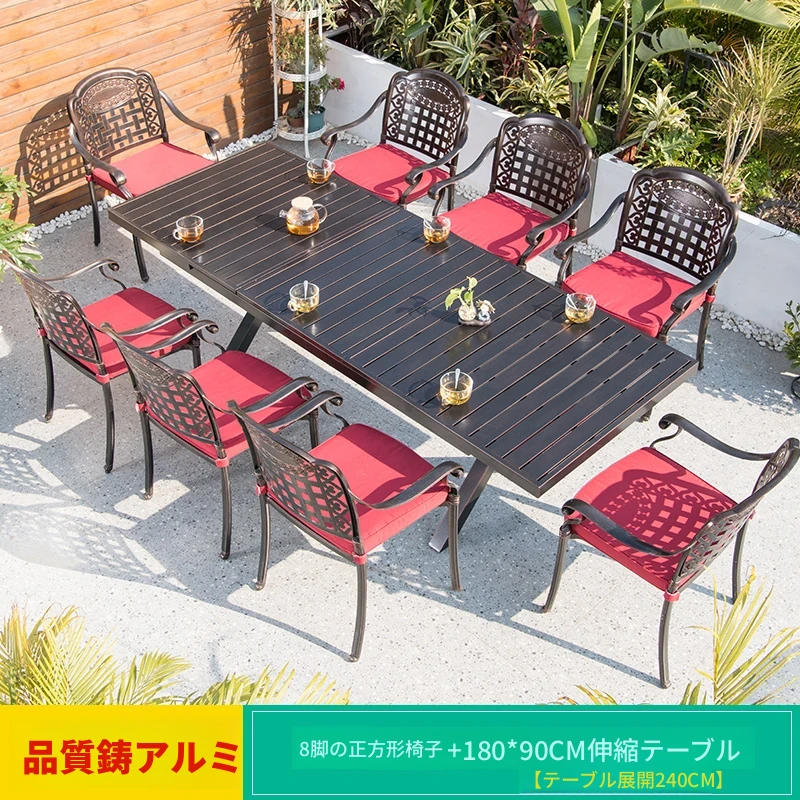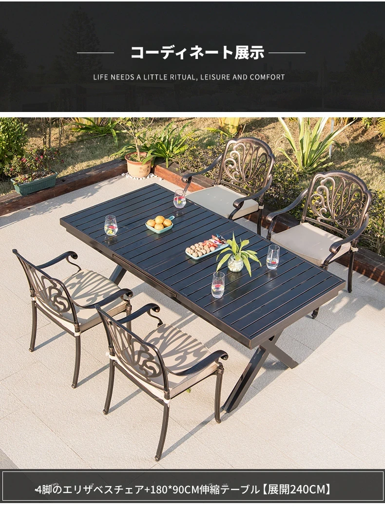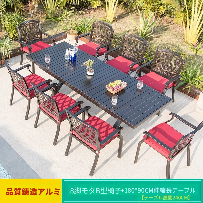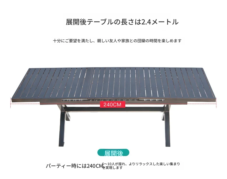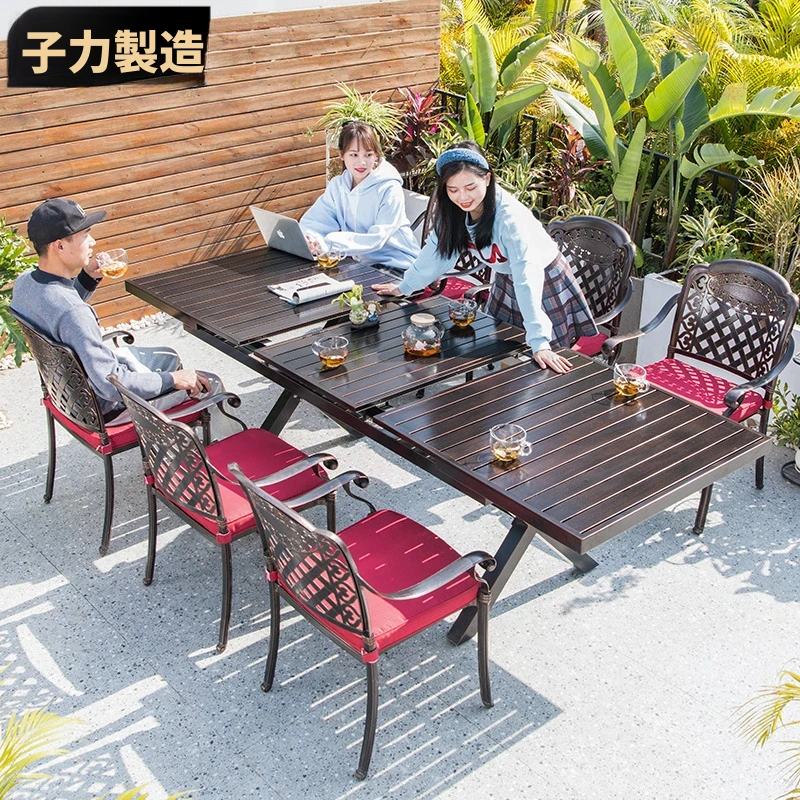 子力アウトドアアルミニウムテーブル&チェアセット - リラックスできるバルコニーや庭に最適!伸縮可能なデザインで、屋外での楽しいひと時を演出。高品質で耐久性のある素材使用、どんな天候にも対応!