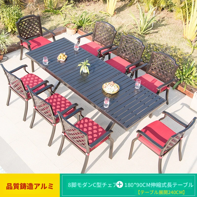 8脚正格チェア+180CM伸縮長テーブル】(展開240CM)