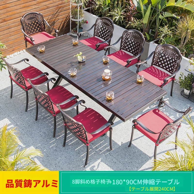8脚斜格チェア+180CM伸縮長テーブル】(展開240CM)