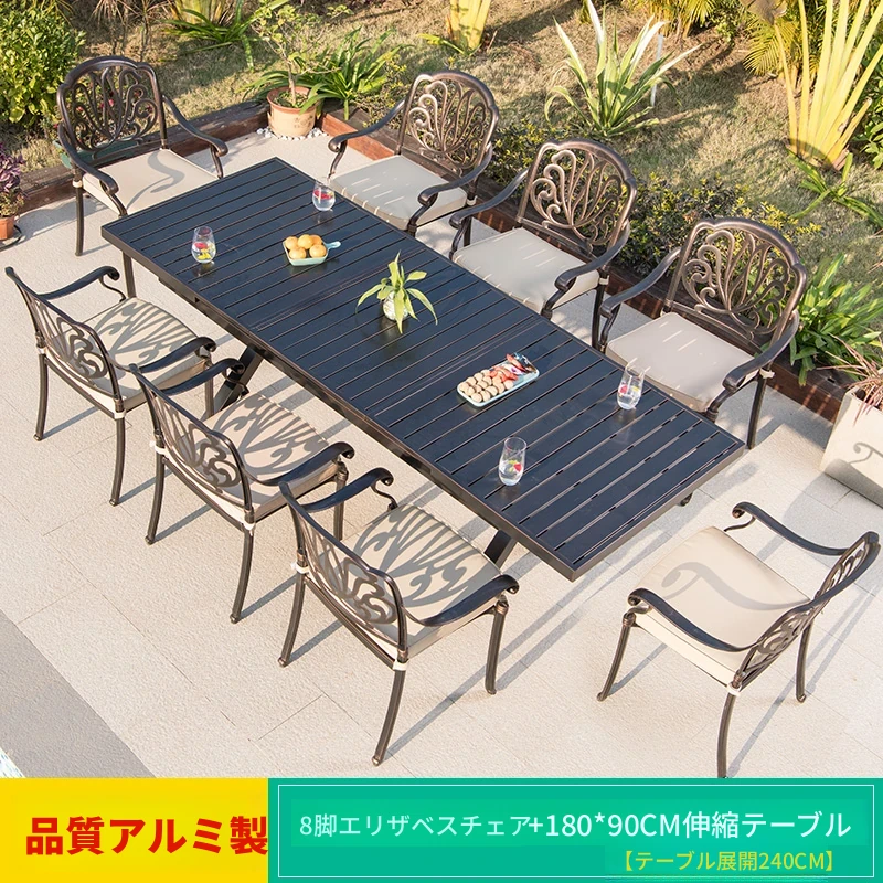 8脚エリザベスチェア+180CM伸縮長テーブル】(展開240CM)