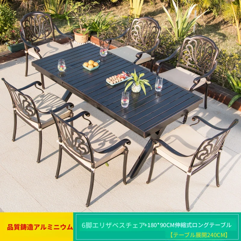 6脚エリザベスチェア+180CM伸縮長テーブル】(展開240CM)