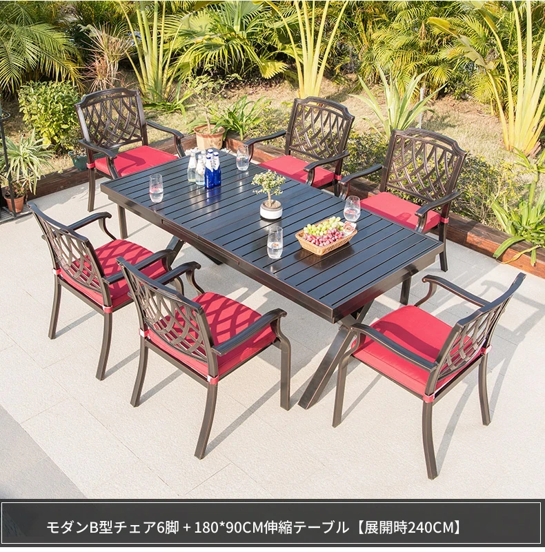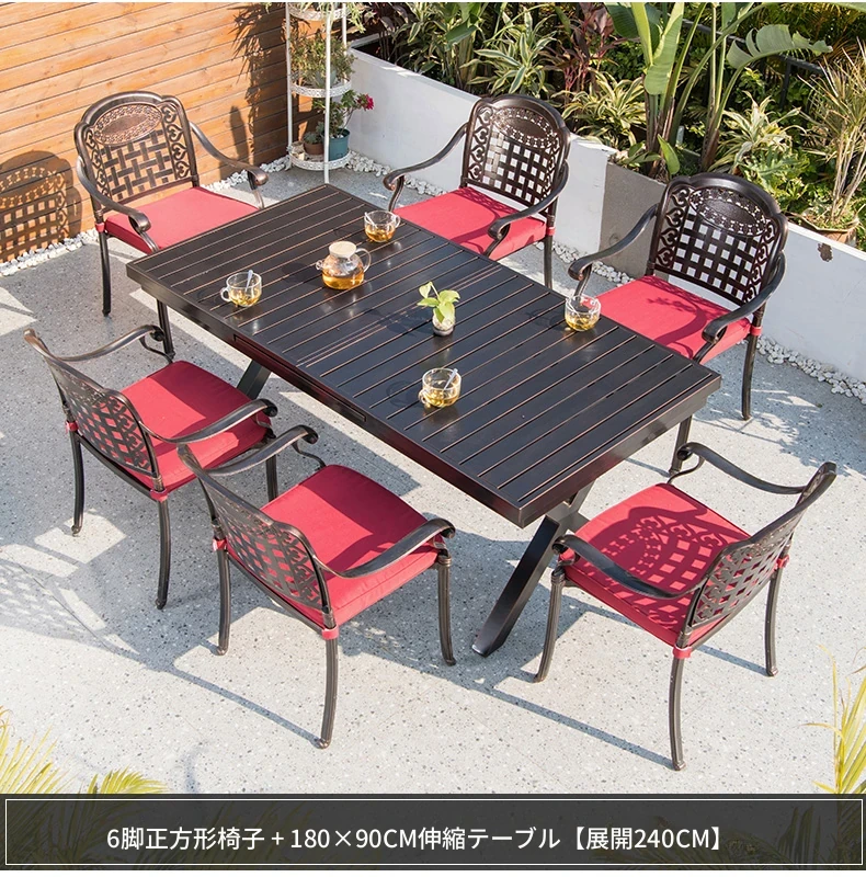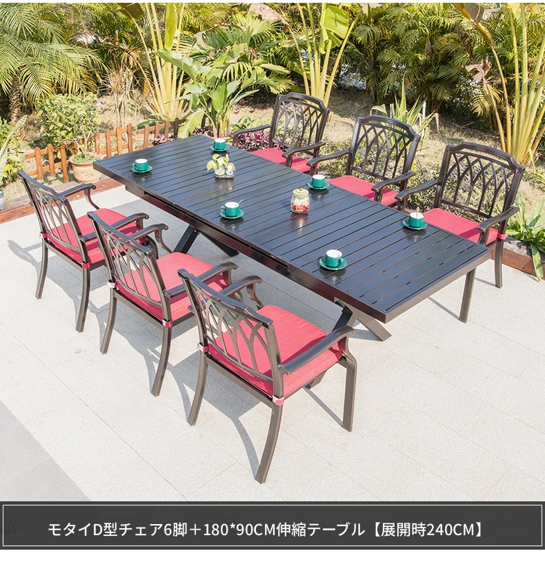 6脚斜格チェア+180CM伸縮長テーブル】(展開240CM)