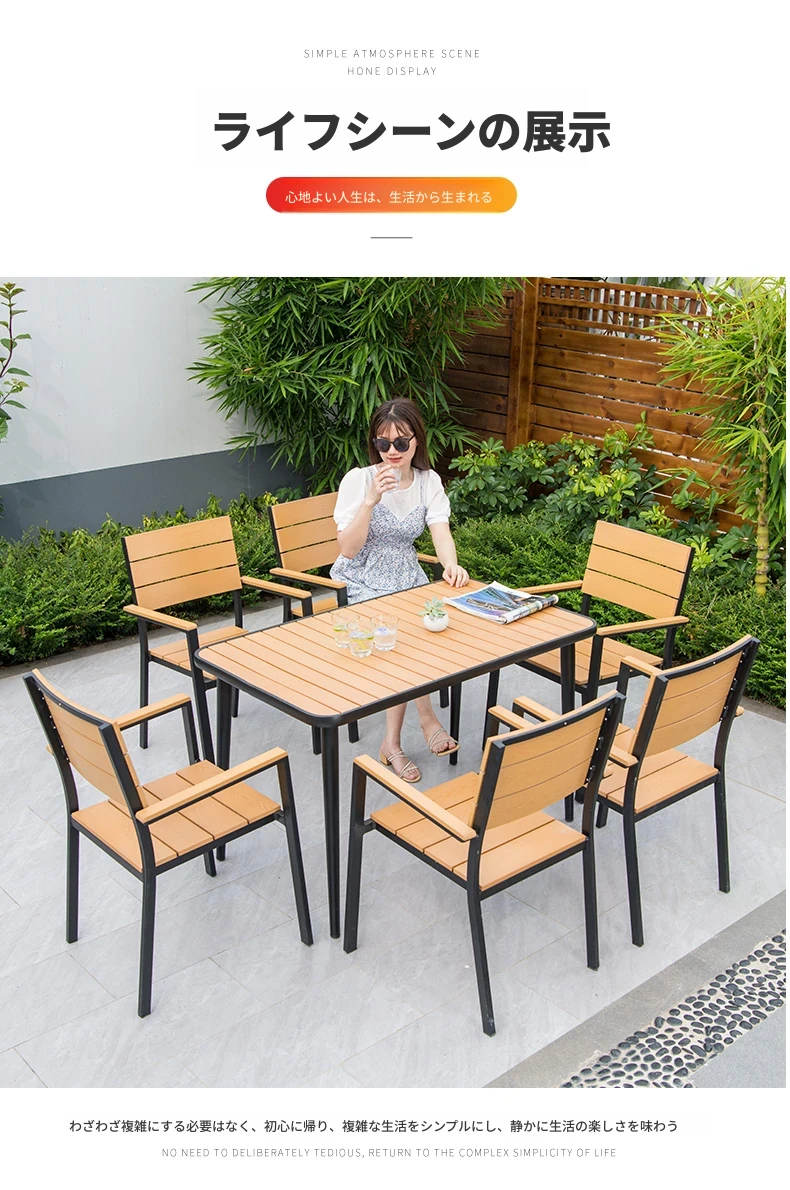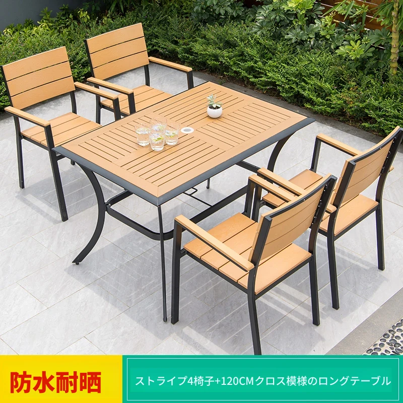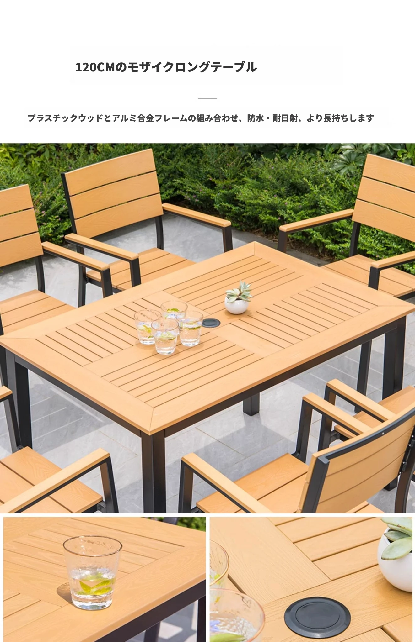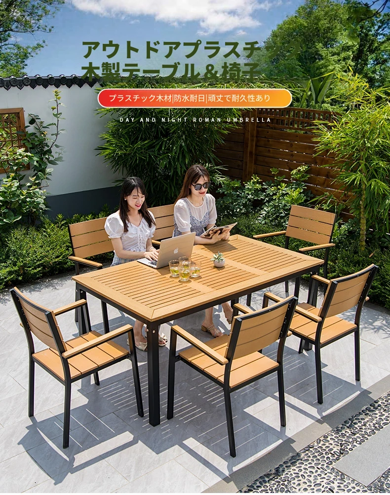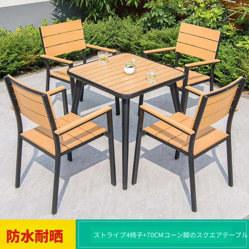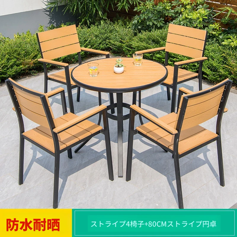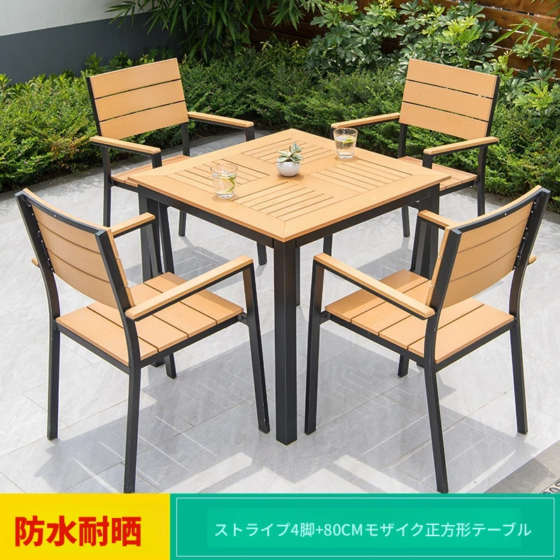 子力アウトドアテーブルチェアセット - 庭やバルコニーに最適!カフェやティーショップにもぴったりな耐候性プラスチック木製デザイン。リラックスしたひとときを演出する、スタイリッシュで機能的なアイテムです!