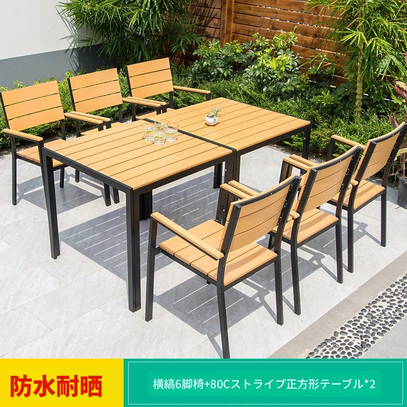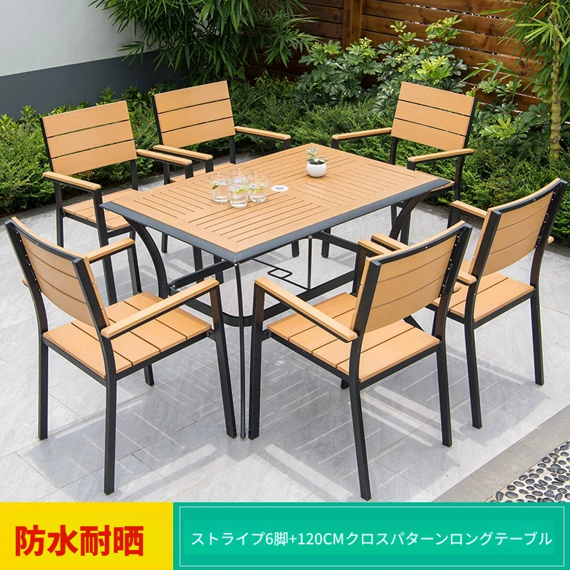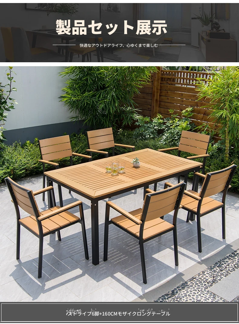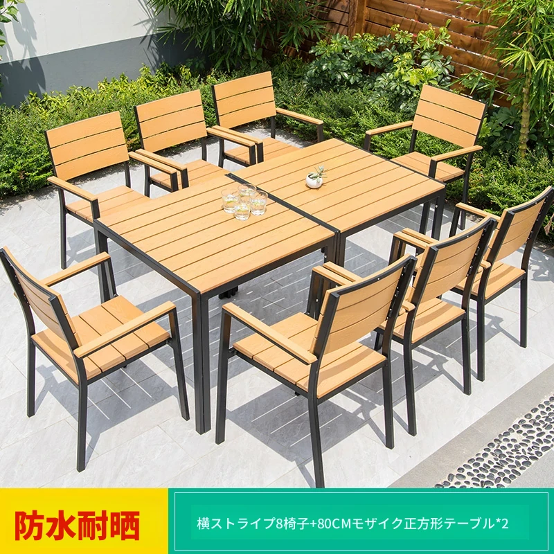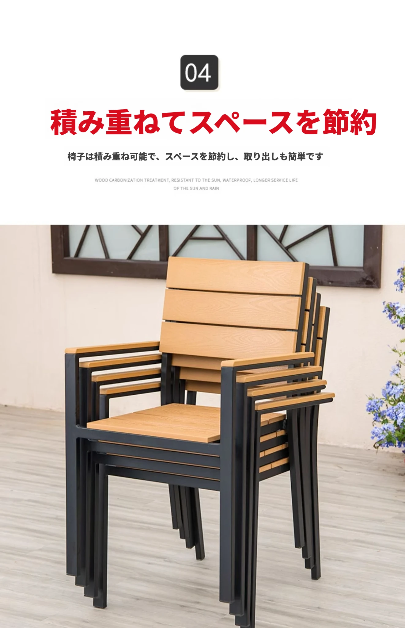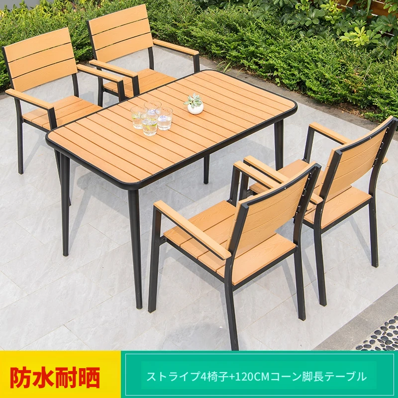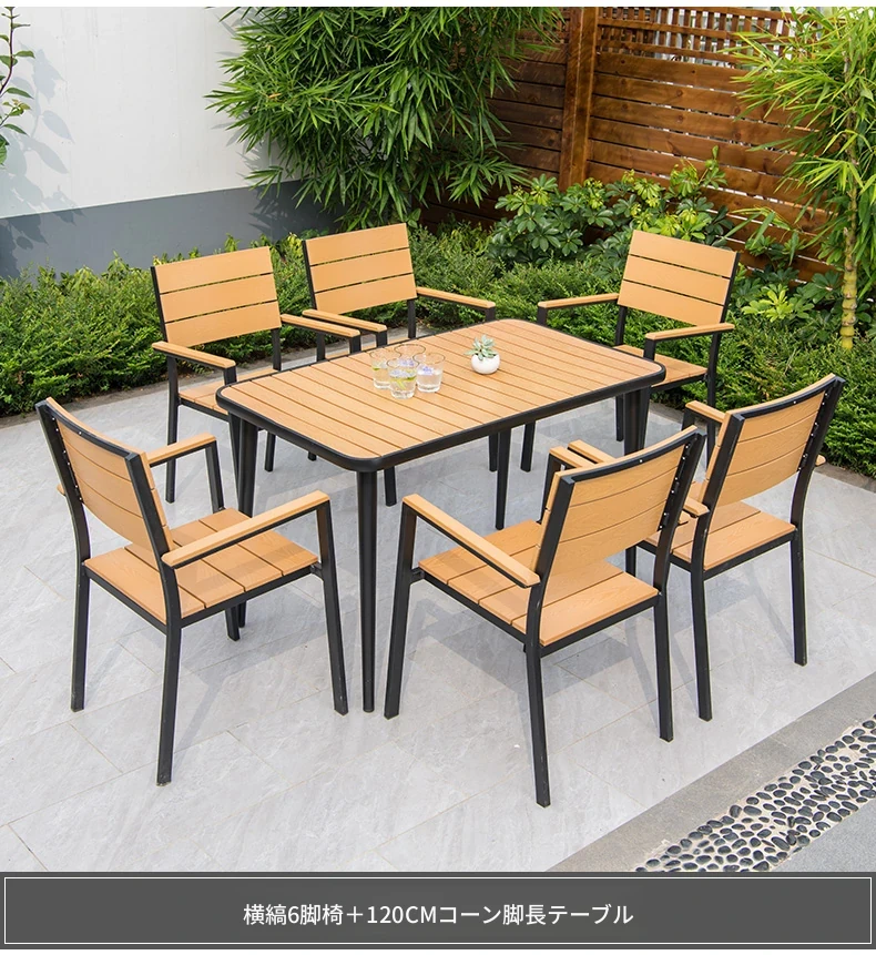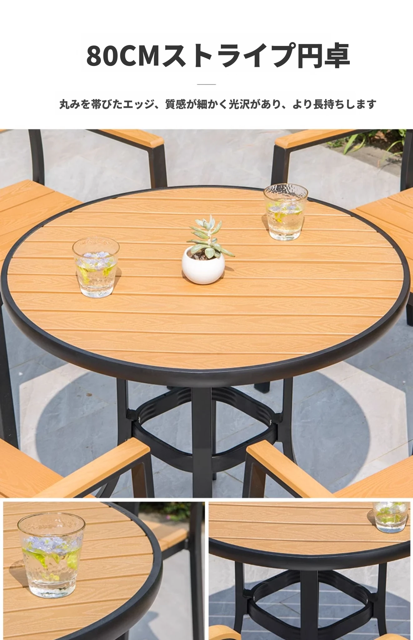 子力アウトドアテーブルチェアセット - 庭やバルコニーに最適!カフェやティーショップにもぴったりな耐候性プラスチック木製デザイン。リラックスしたひとときを演出する、スタイリッシュで機能的なアイテムです!